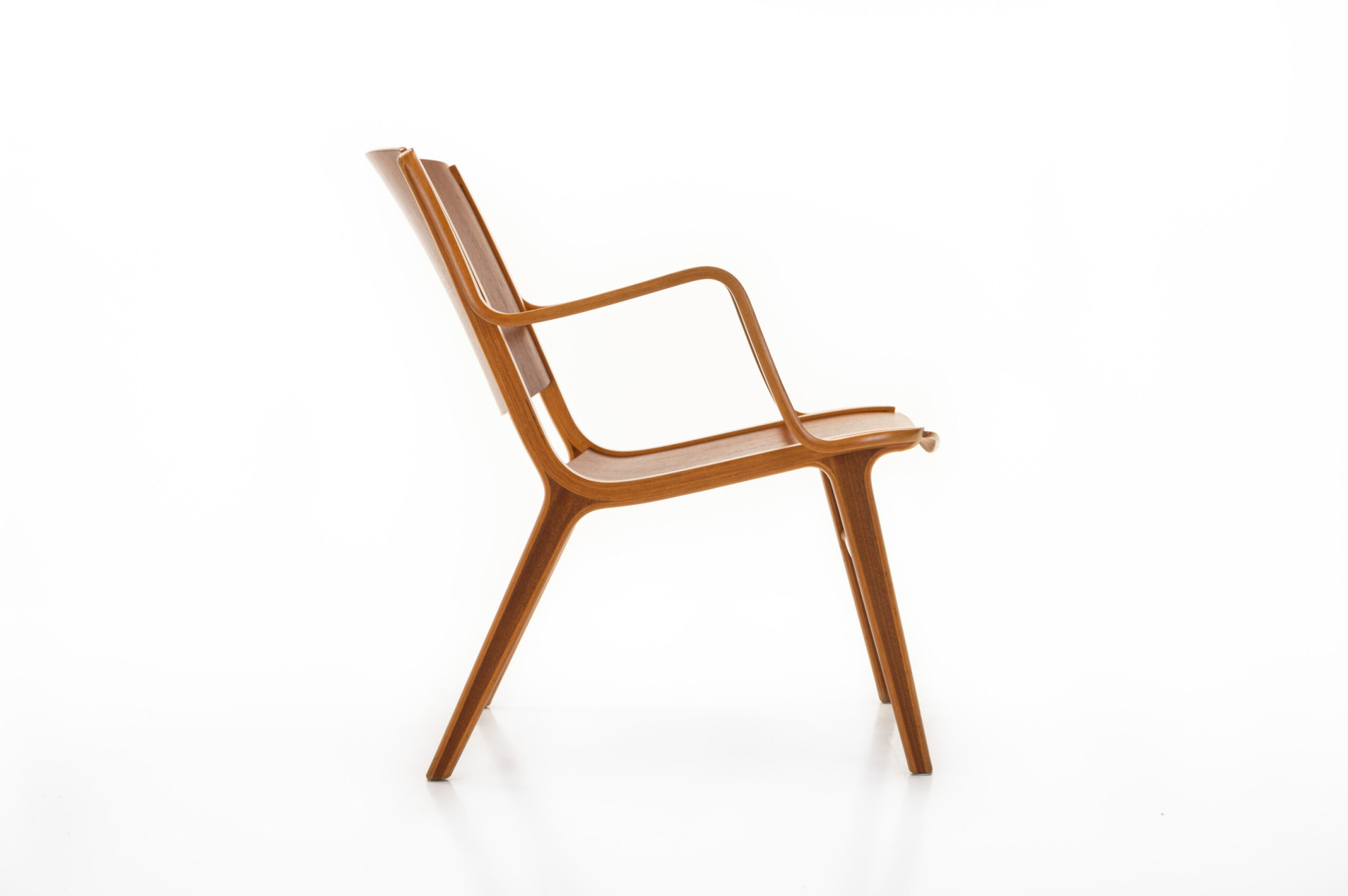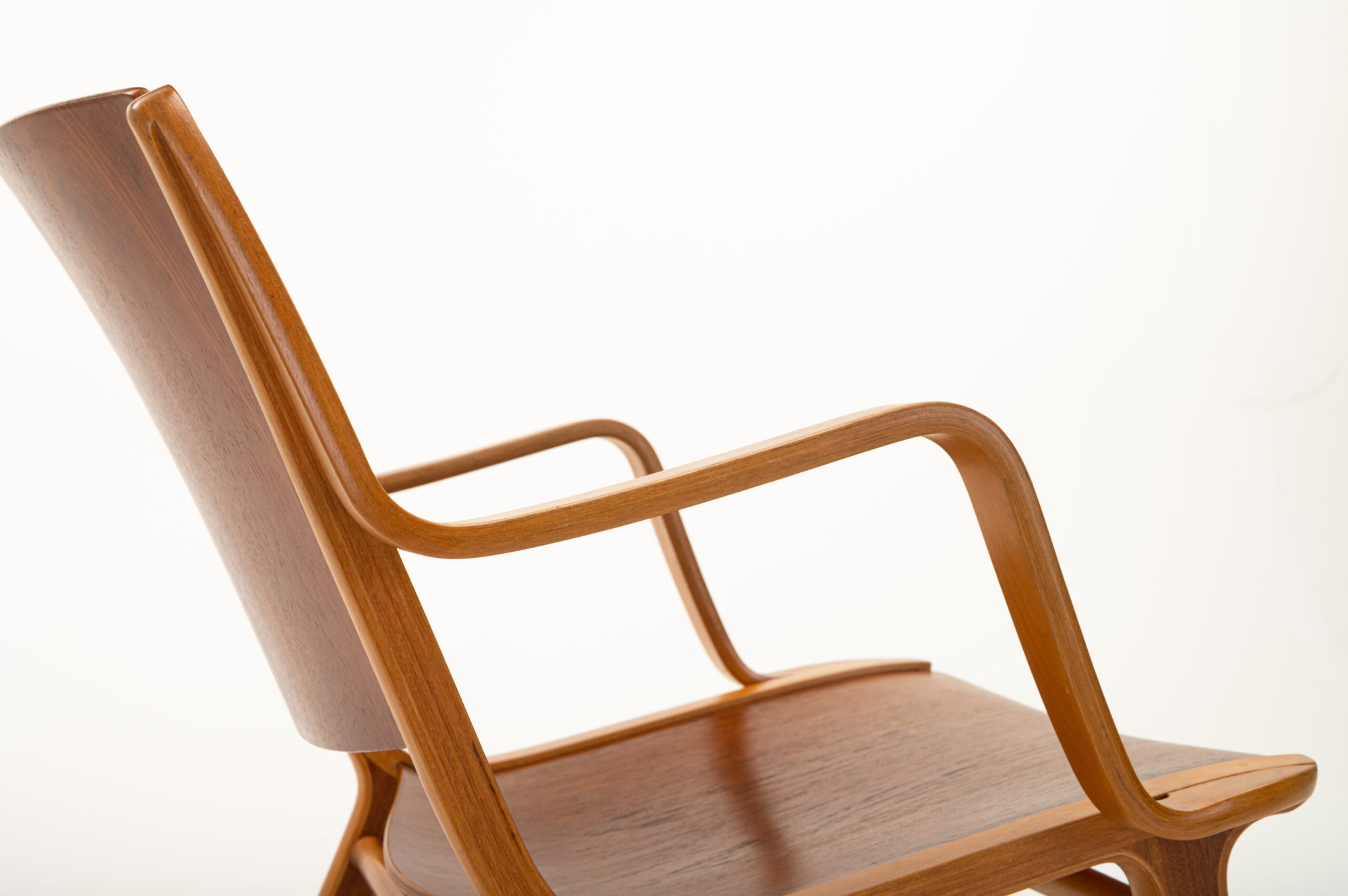 Ax chair designed by Peter Hvidt & Orla Molgaard Nielsen and produced by Fritz Hansen, Denmark 1950s. The chair is made of a combination of laminated beechwood and teak with a mahogany core. An example of this chair can be found at the Museum of Design in Copenhagen.