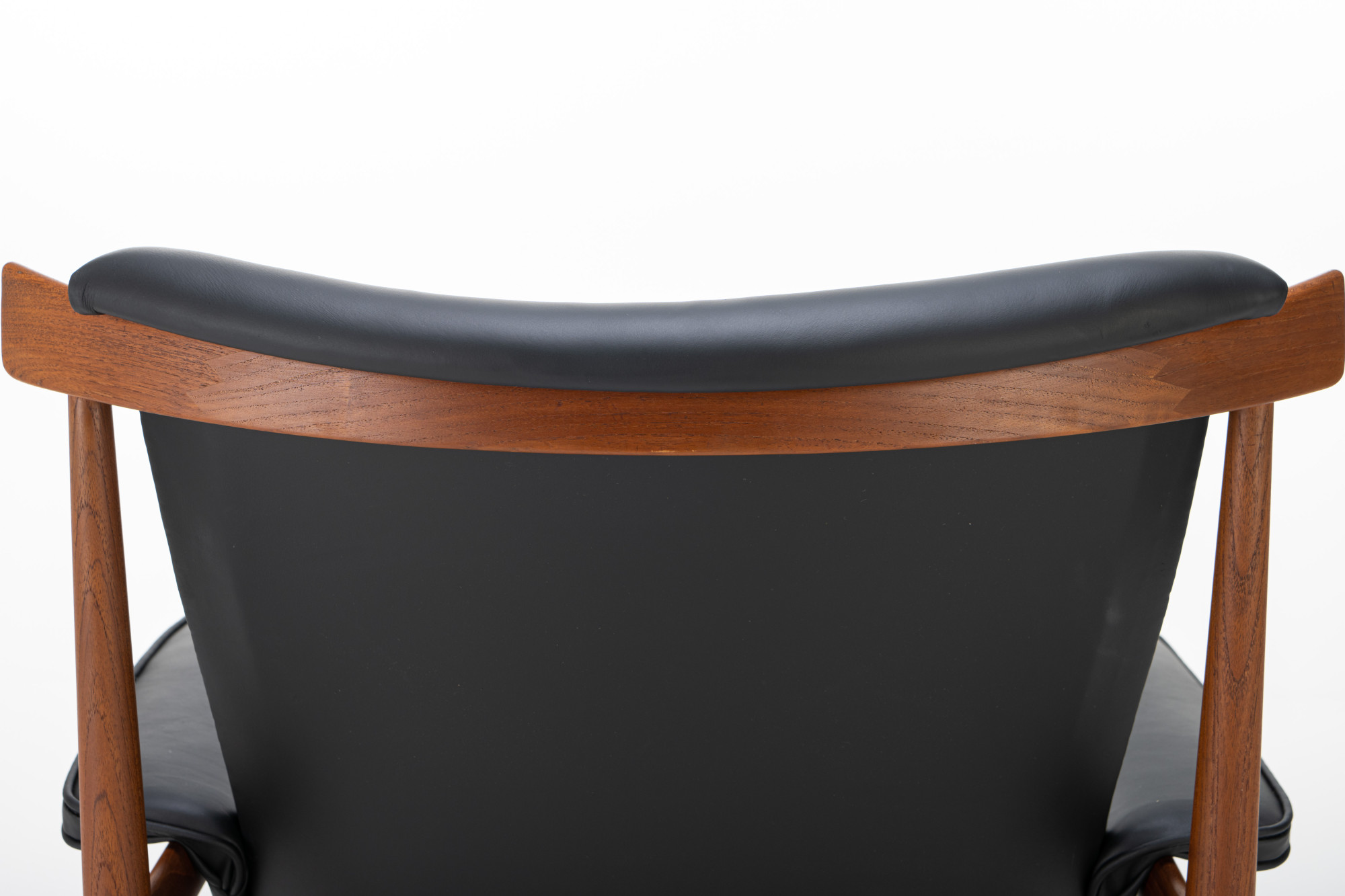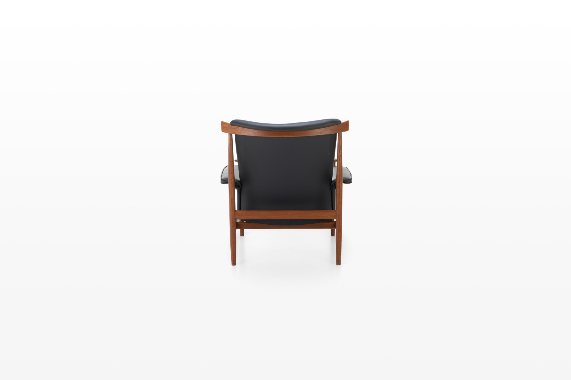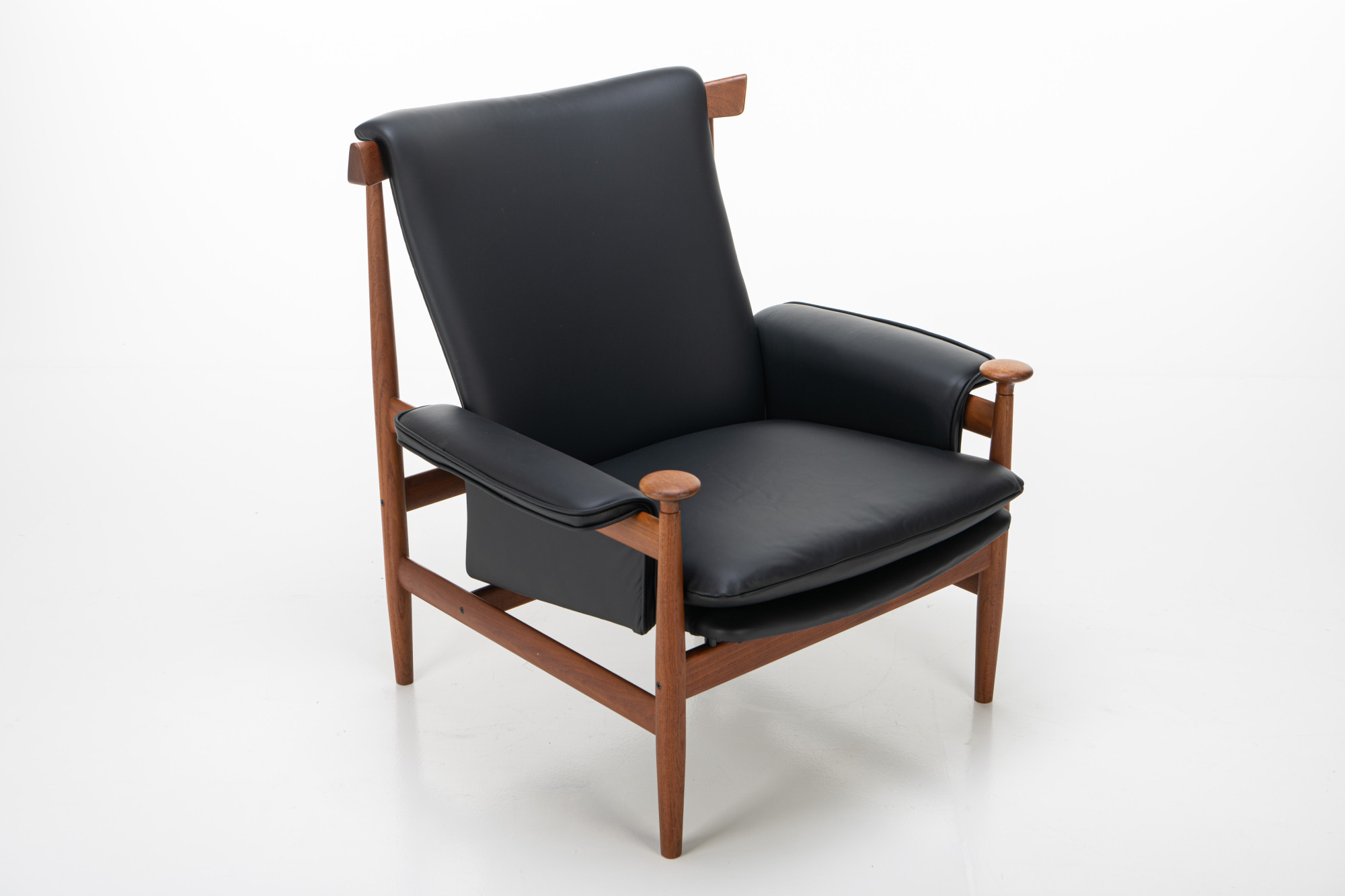Beautiful Danish lounge chair designed by Finn Juhl. The Bwana chair was designed in 1962 by Finn Juhl for France & Son. This easy chair has been completely restored and re-upholstered in black leather.