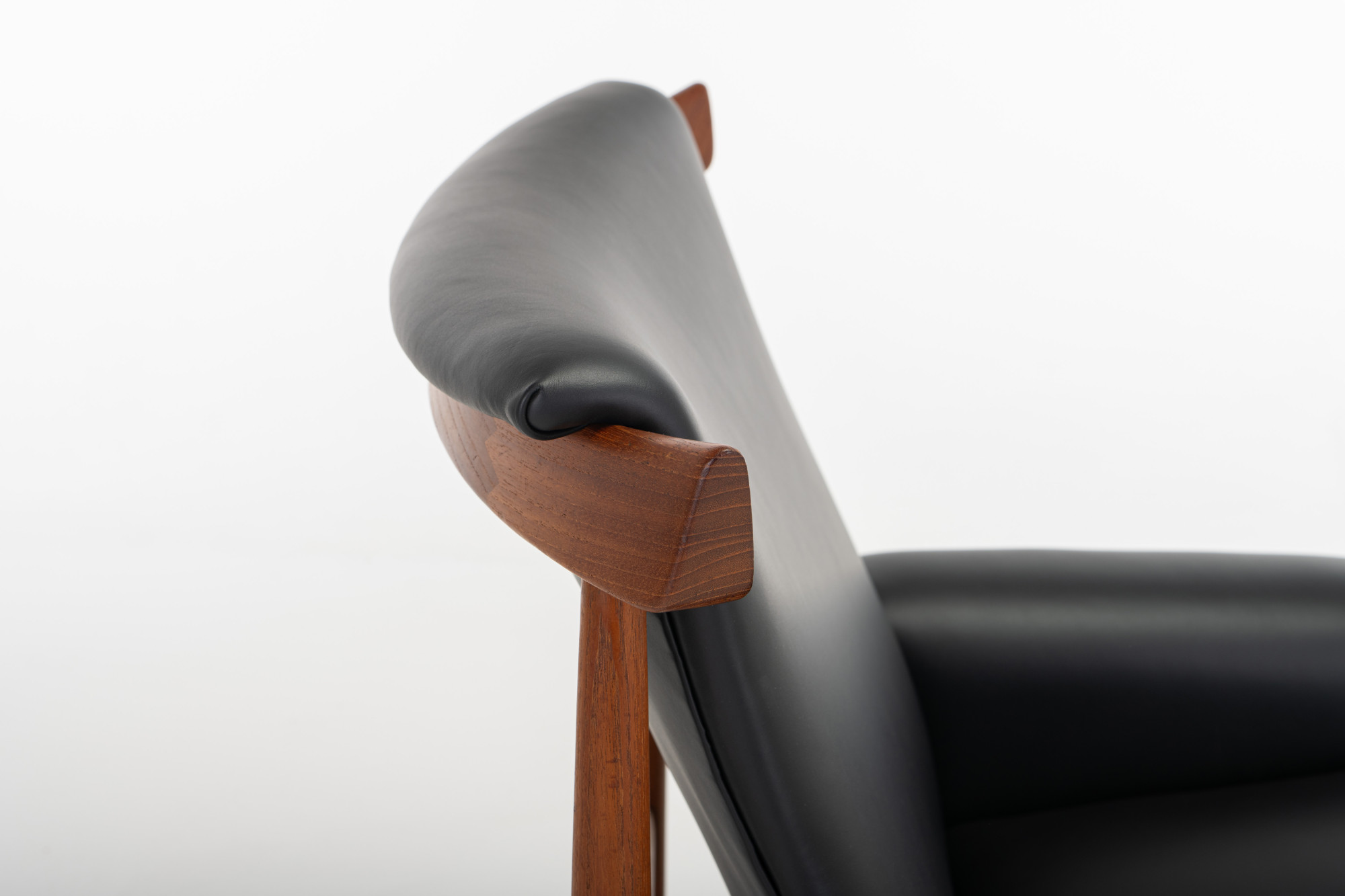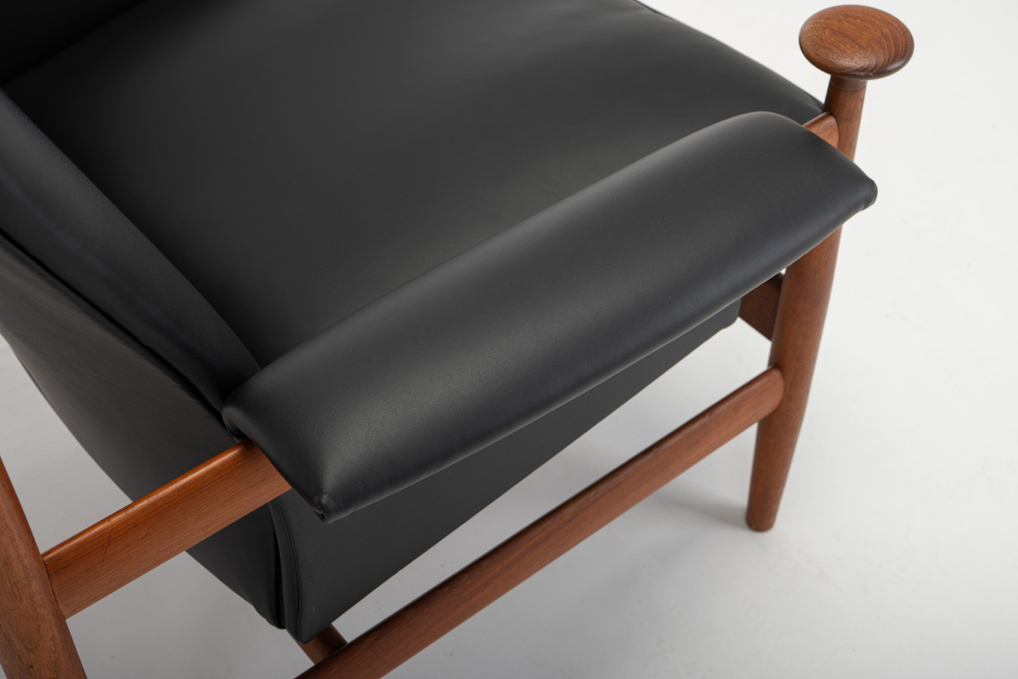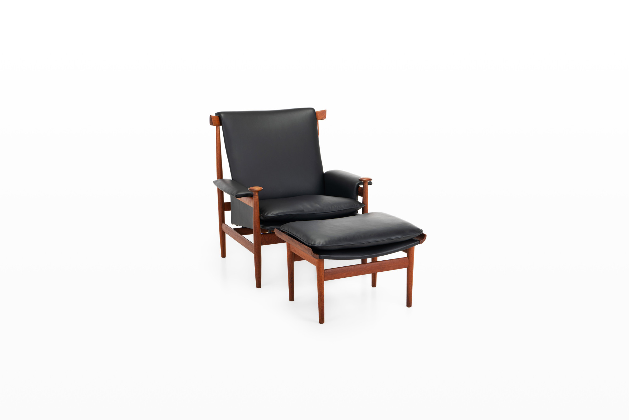 This stunning 'Bwana' lounge chair and ottoman is designed by Finn Juhl in 1962 for France & Son. Known for its sleek lines and elegant design, this chair is a perfect example of mid-century modern furniture.