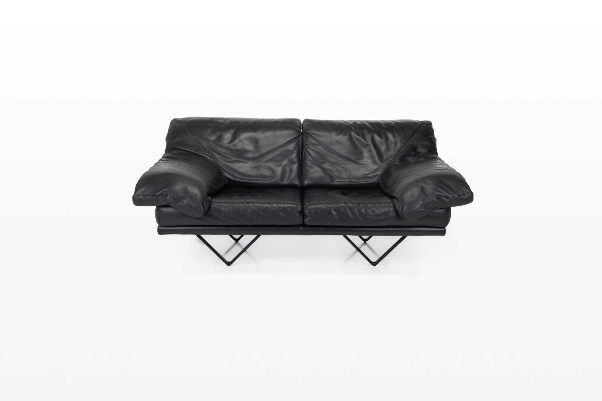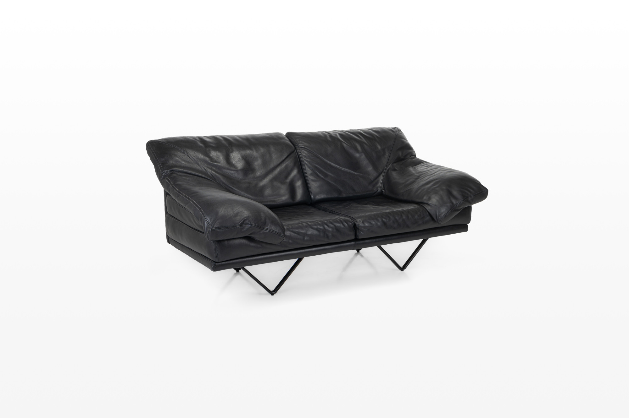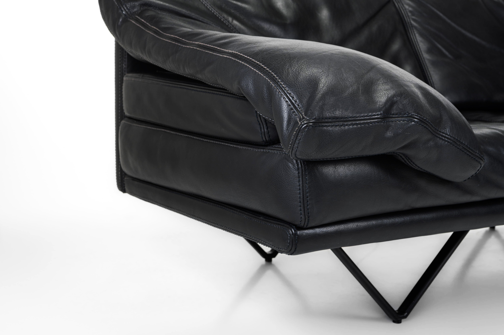 Vintage leather 'Cornelius' sofa produced by Durlet, Belgium 1980s. This black leather sofa is in very good condition.