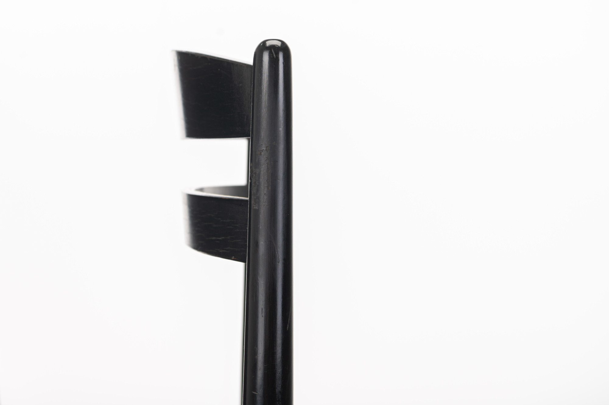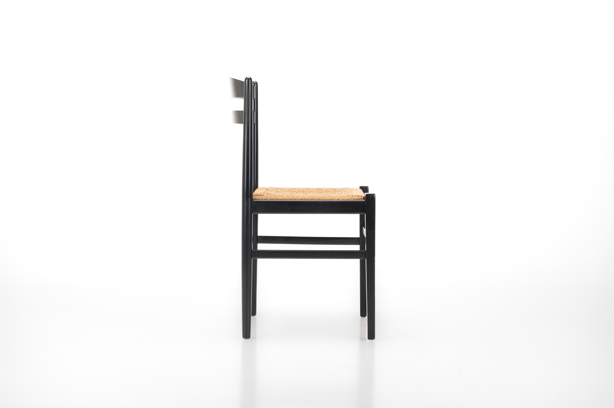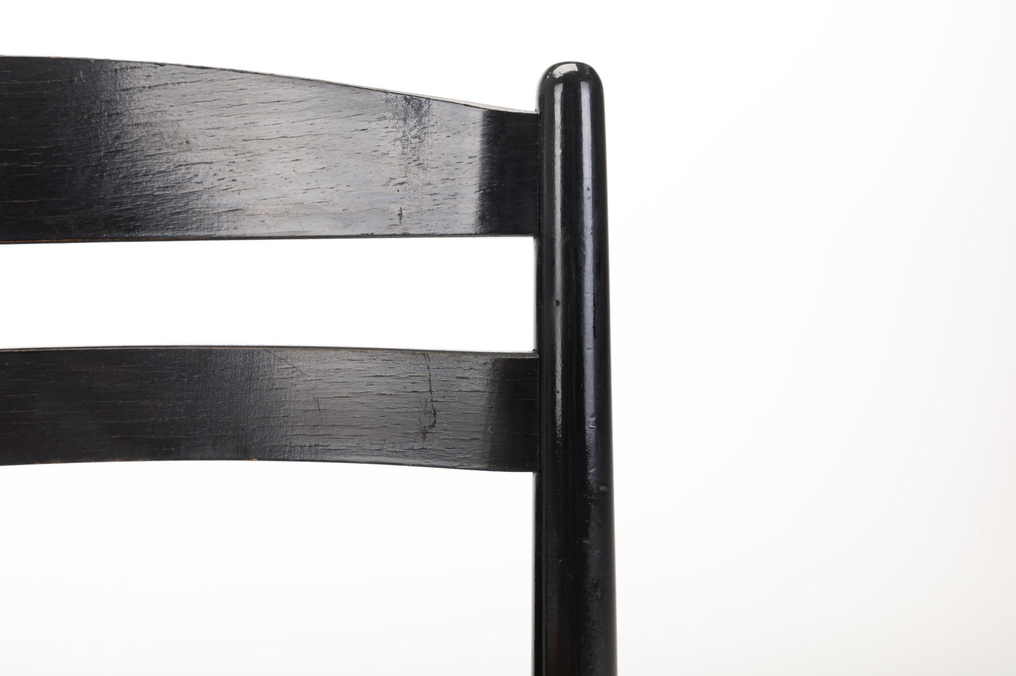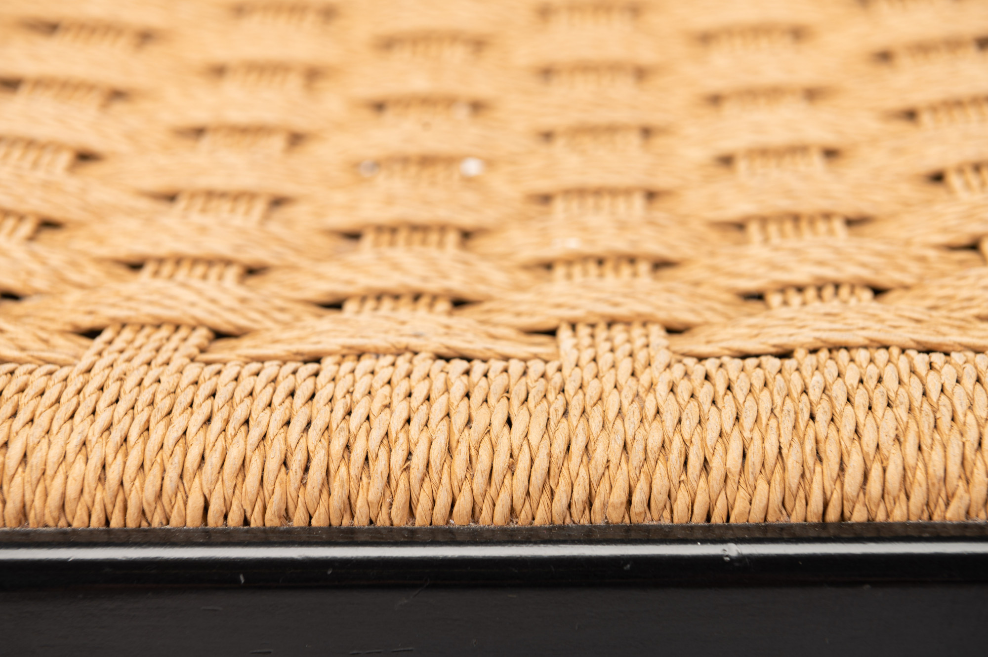 Set of four vintage dining room chairs. The wood is lacquered black and the seats are made with paper cord.