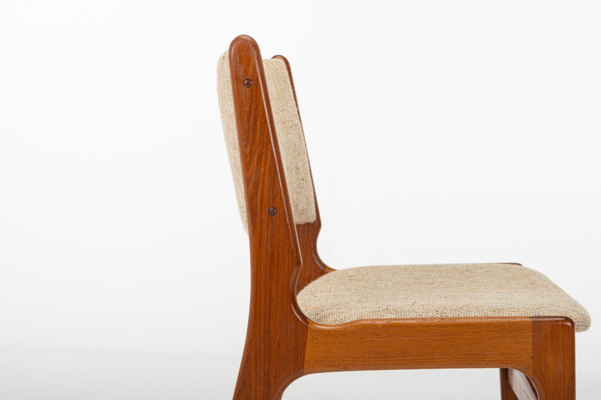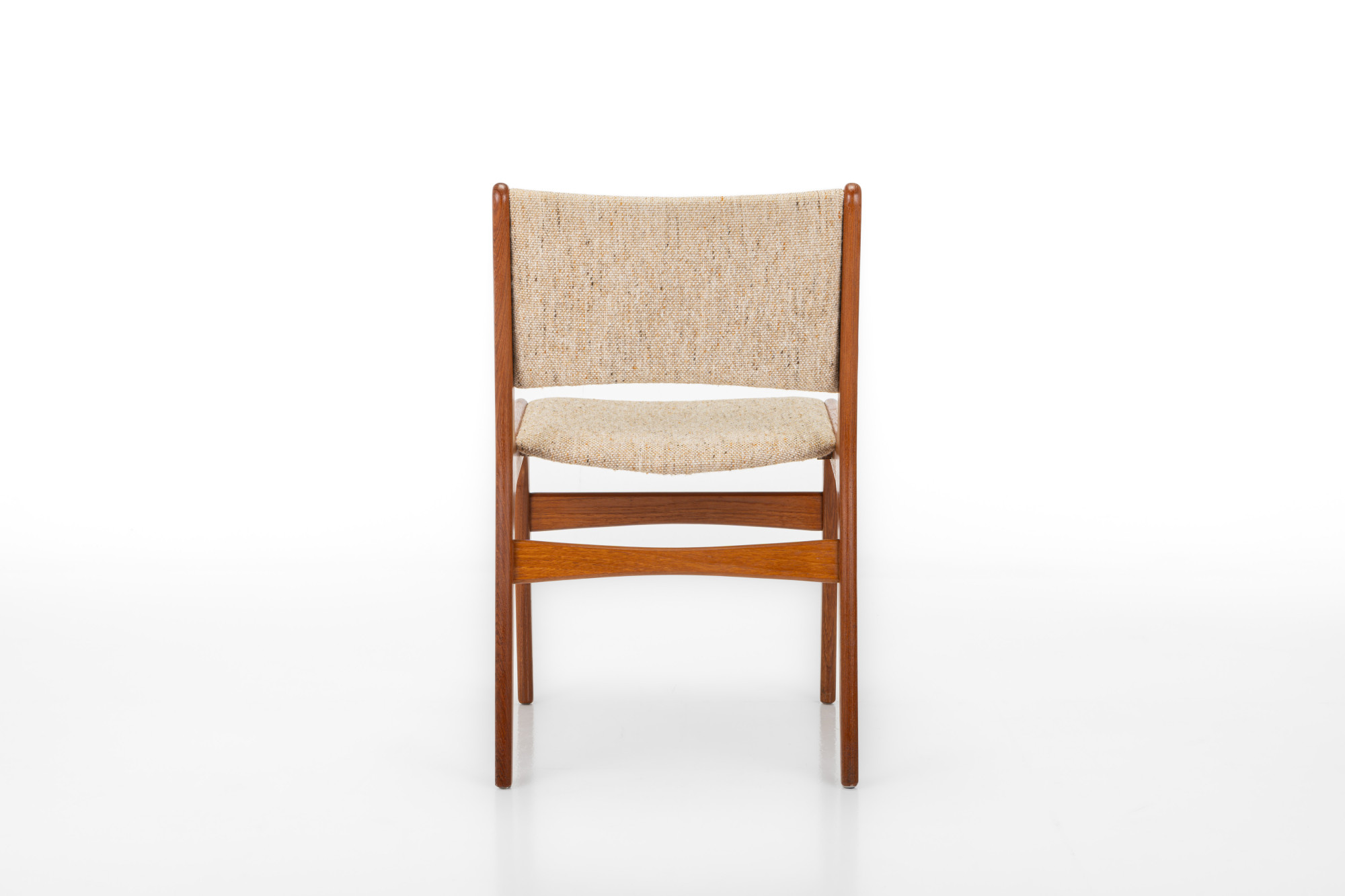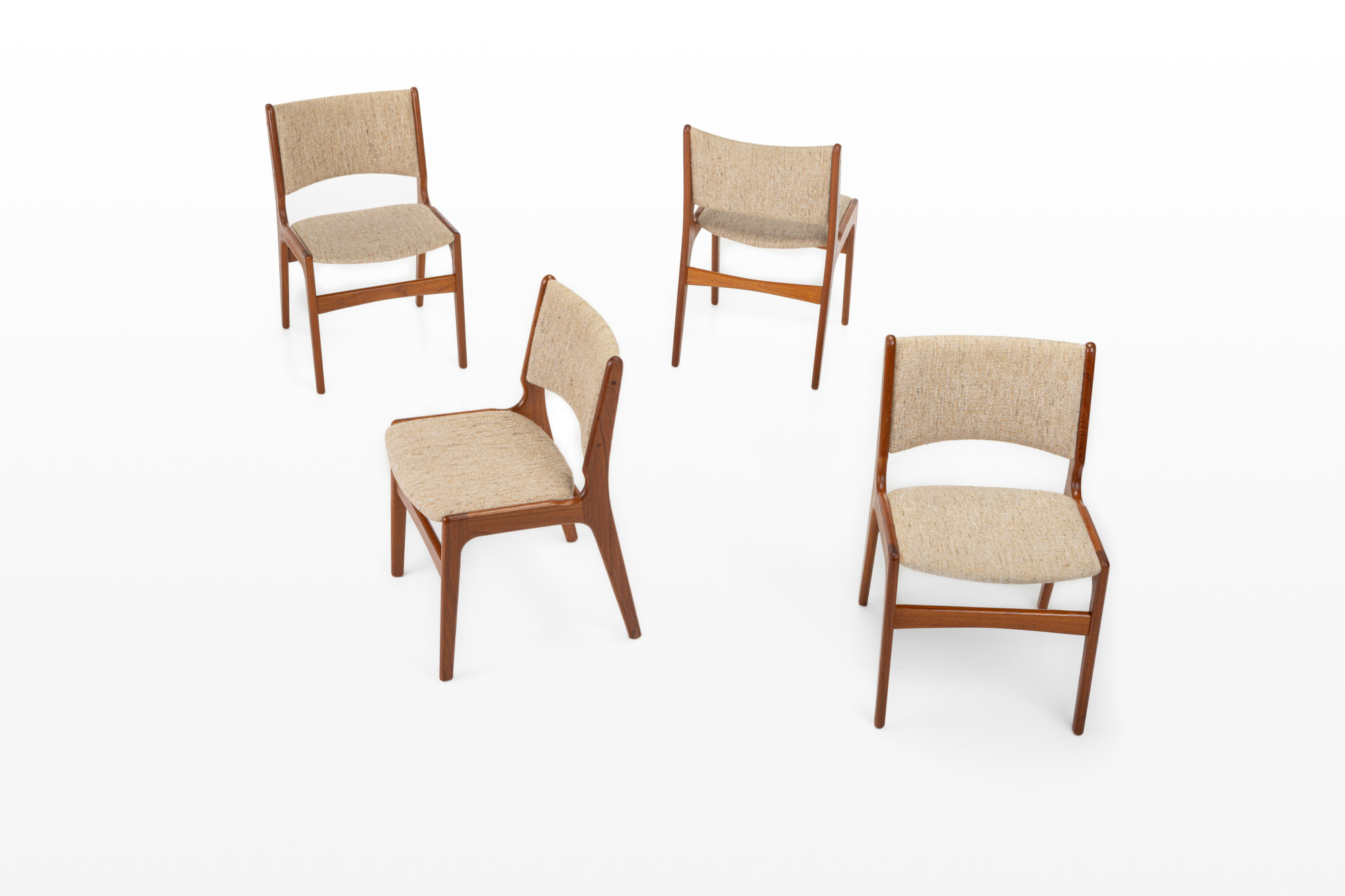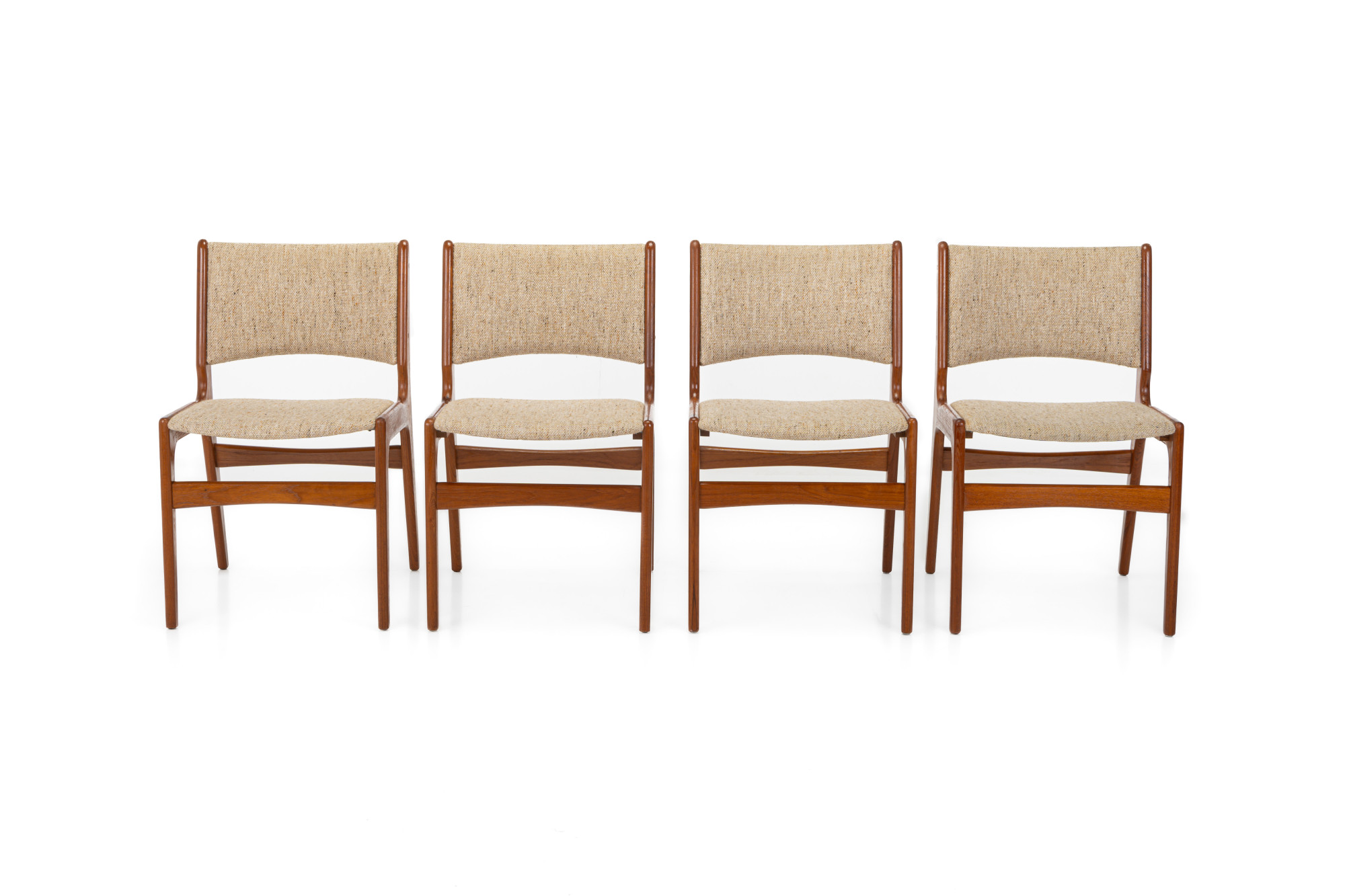 Set of four 'Model 89' dining chairs designed by Erik Buch for Anderstrup Møbelfabrik, Denmark 1960s. The chairs have a teak frame and a beige wool upholstery. This set remains in great condition.
