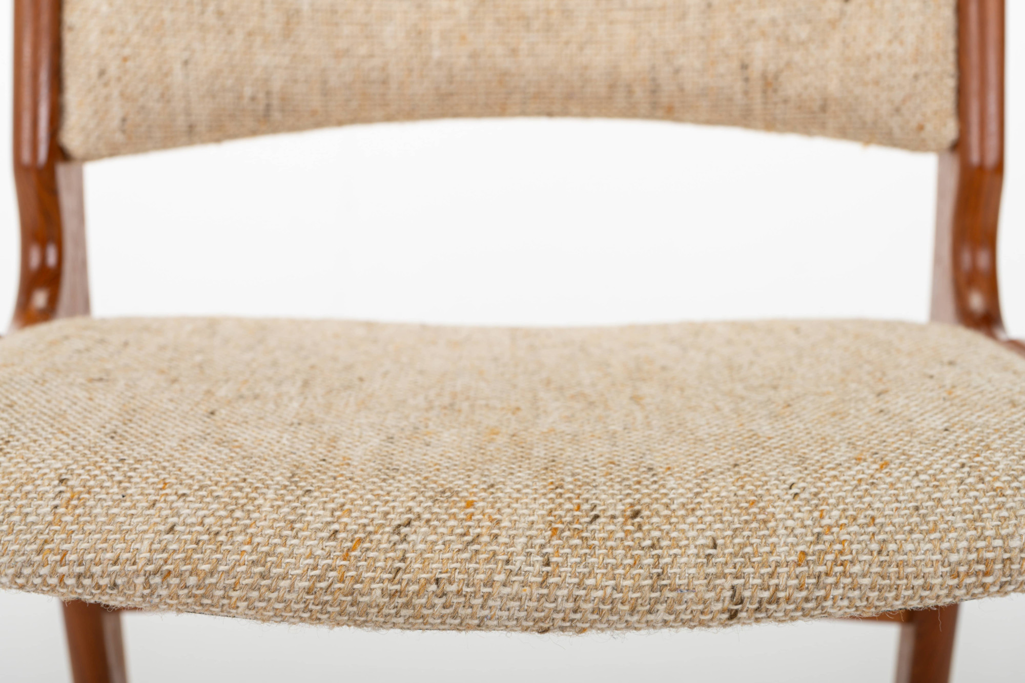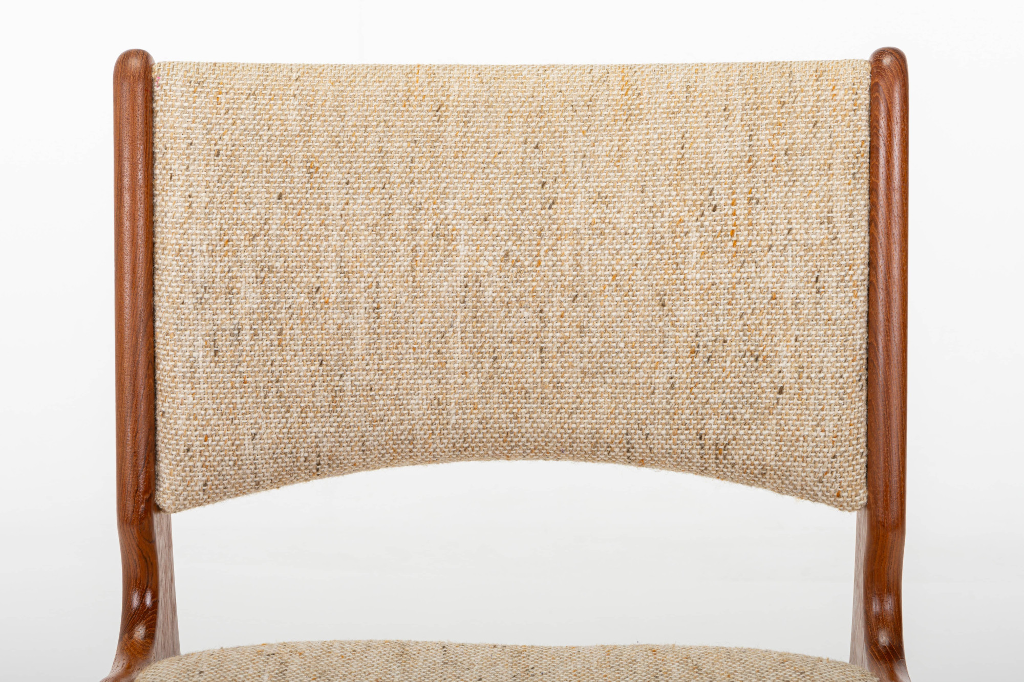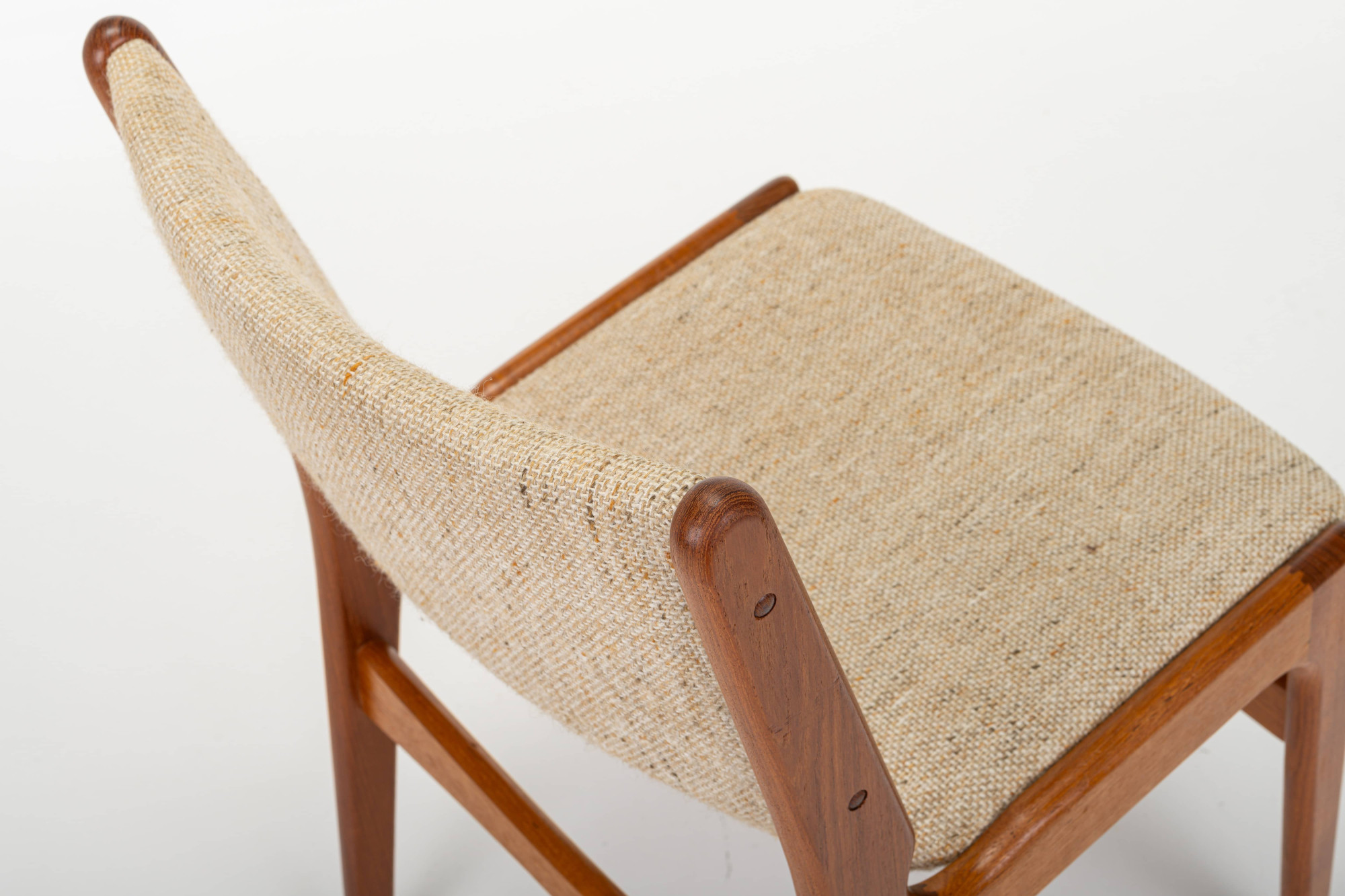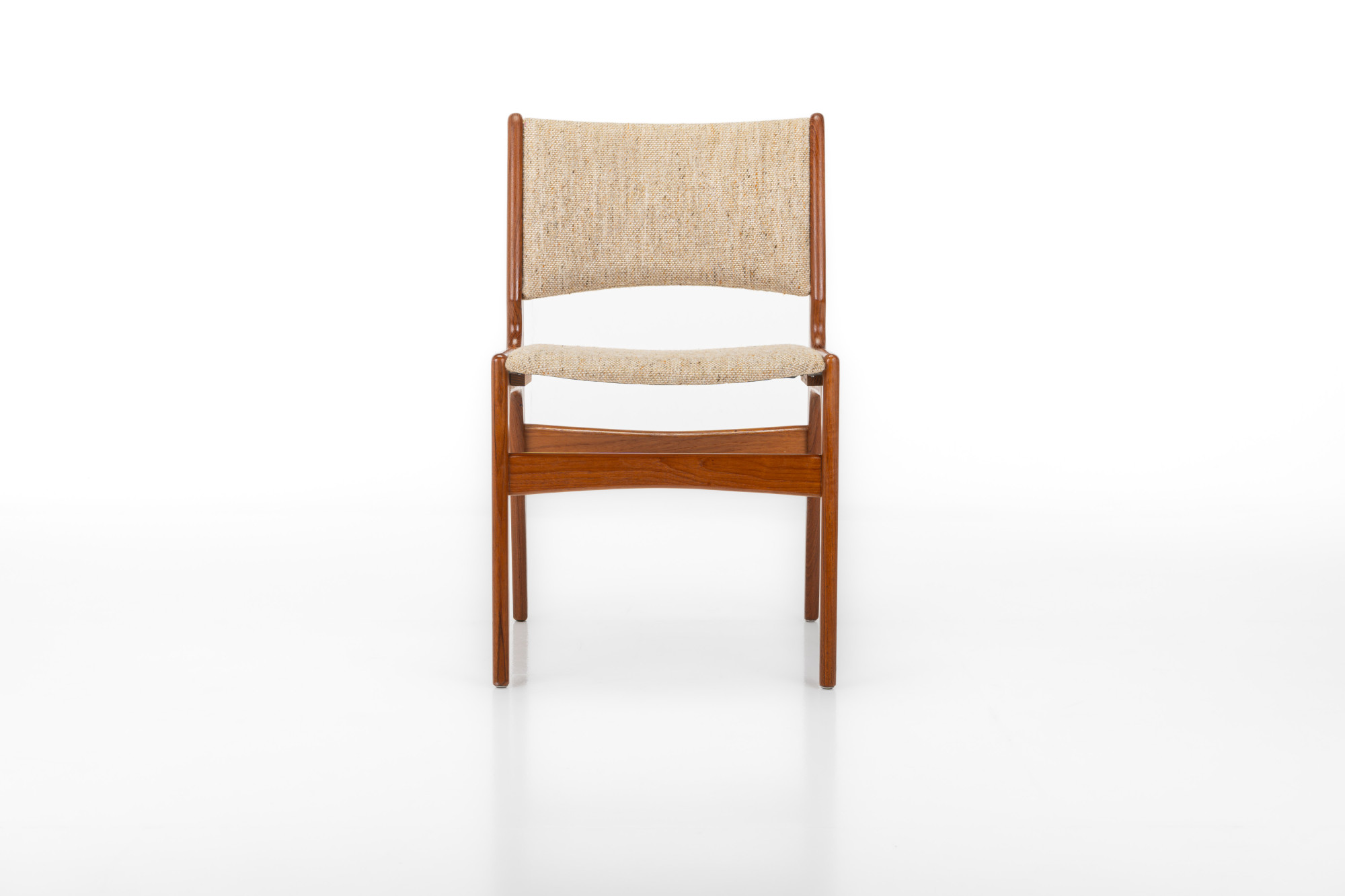 Set of four 'Model 89' dining chairs designed by Erik Buch for Anderstrup Møbelfabrik, Denmark 1960s. The chairs have a teak frame and a beige wool upholstery. This set remains in great condition.