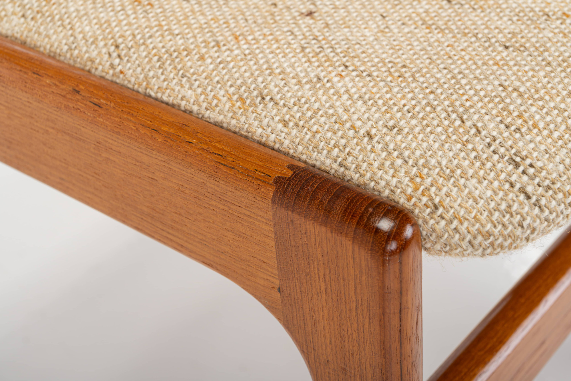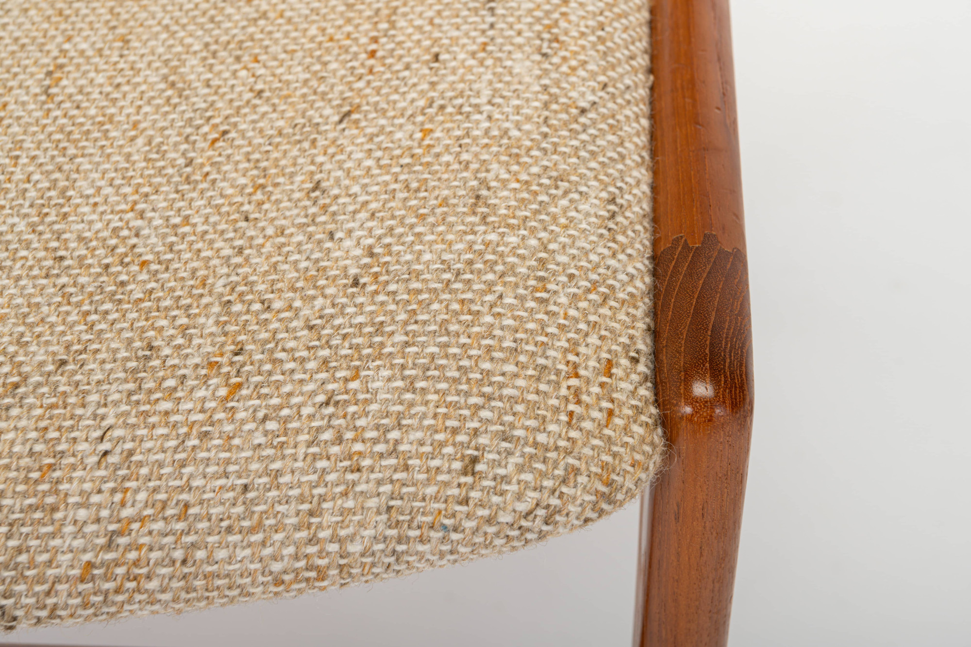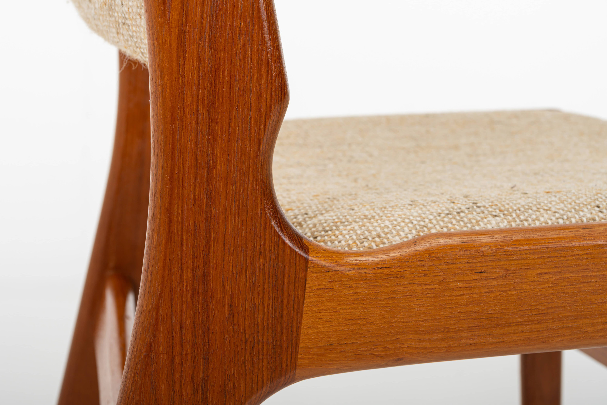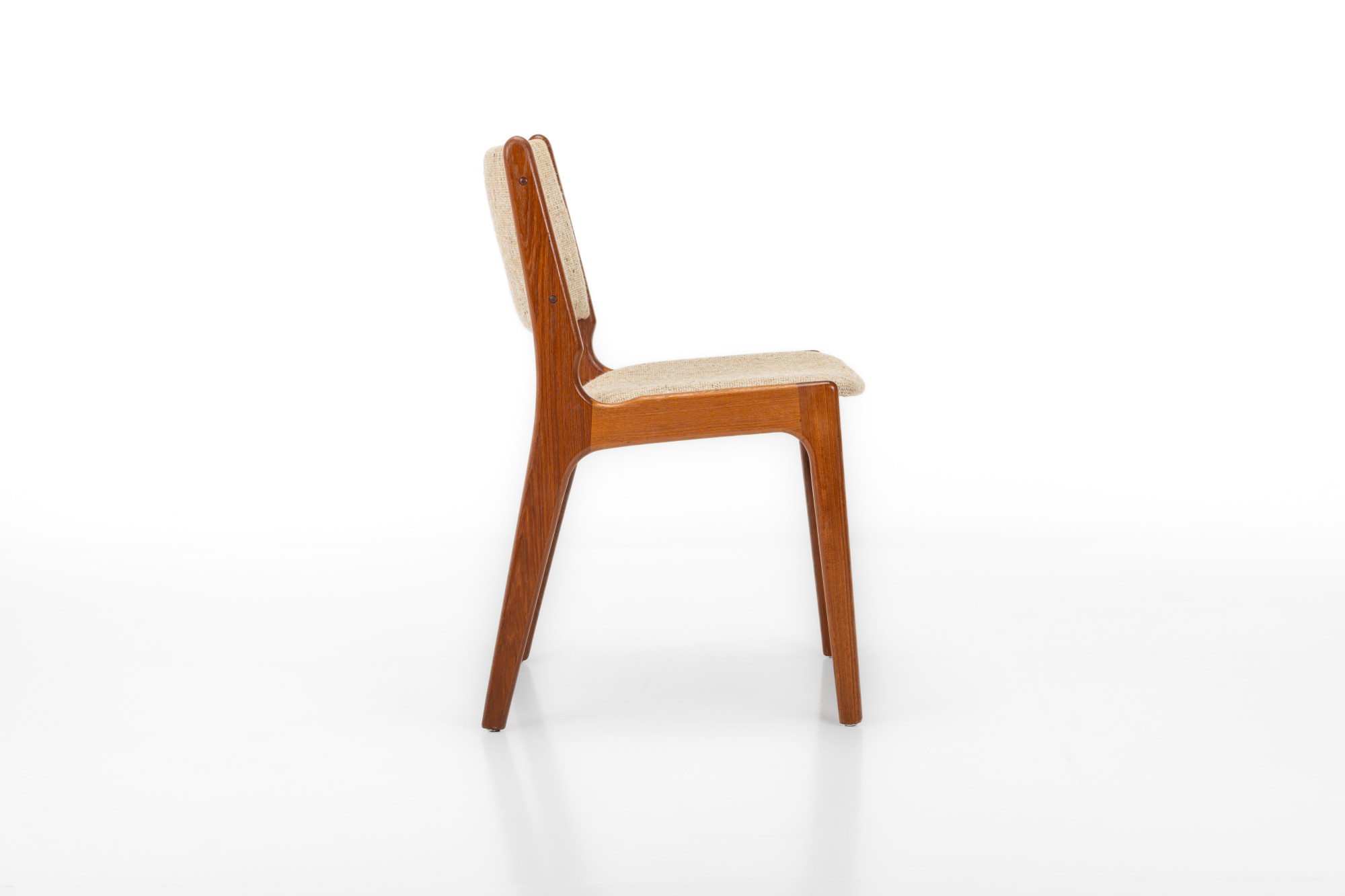 Set of four 'Model 89' dining chairs designed by Erik Buch for Anderstrup Møbelfabrik, Denmark 1960s. The chairs have a teak frame and a beige wool upholstery. This set remains in great condition.
