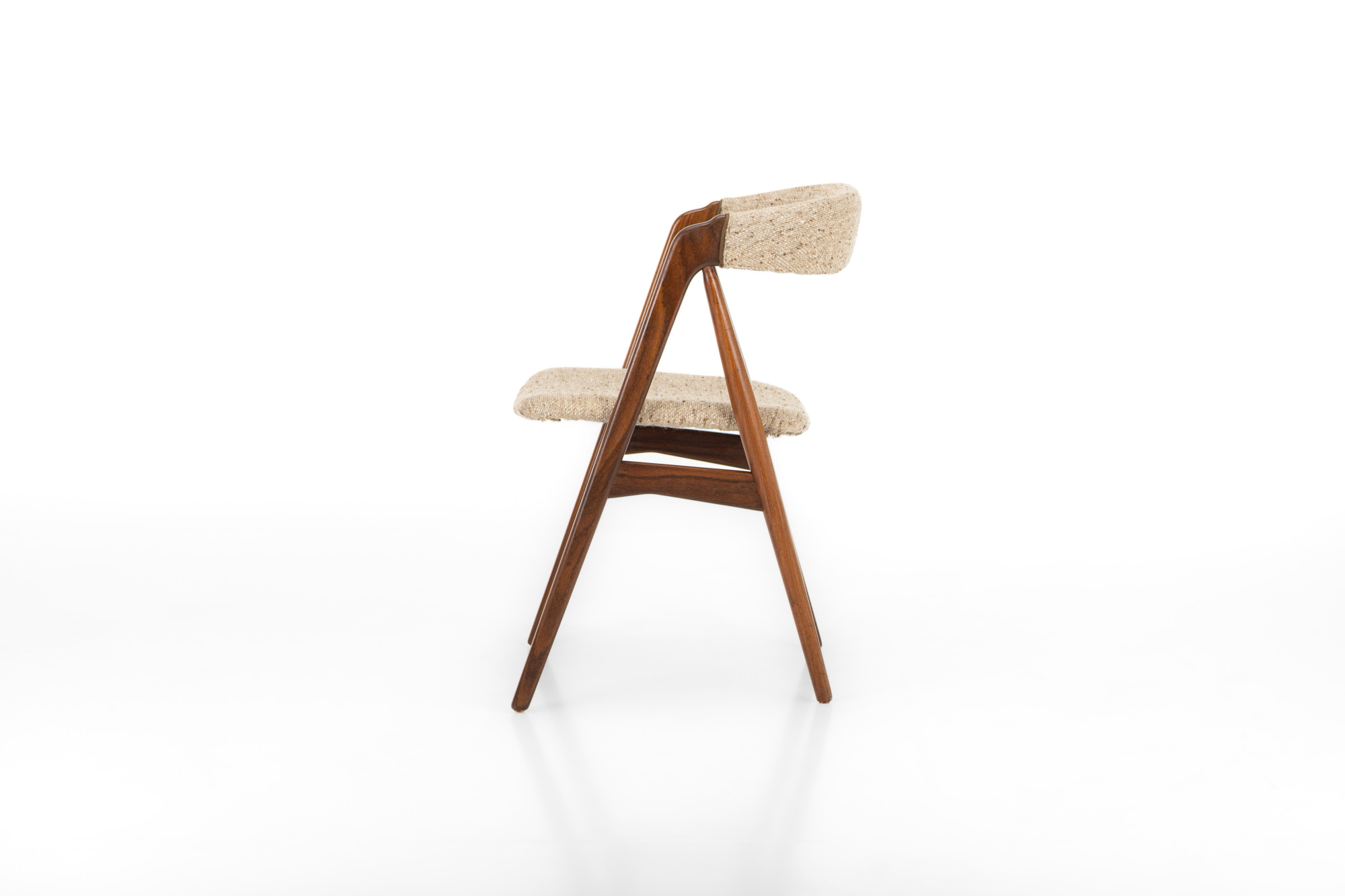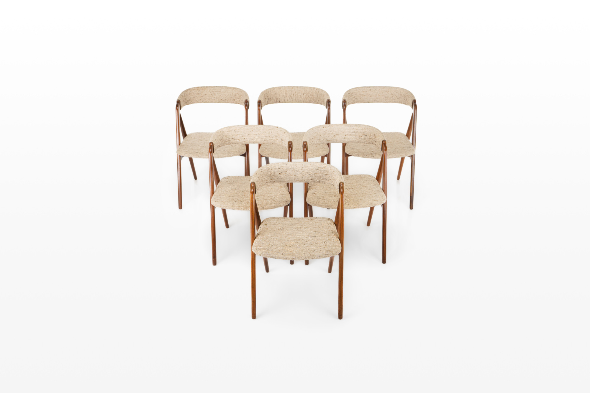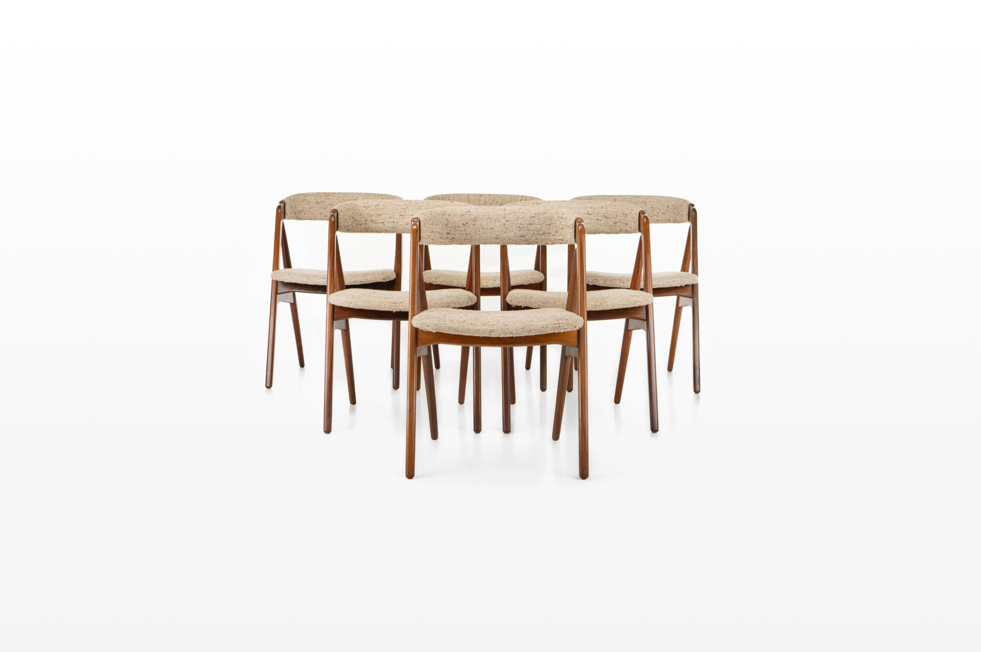 Set of 6 vintage dining chairs designed by Th. Harlev for Farstrup Møbler, Denmark. This set is in teak and still has the original upholstery.