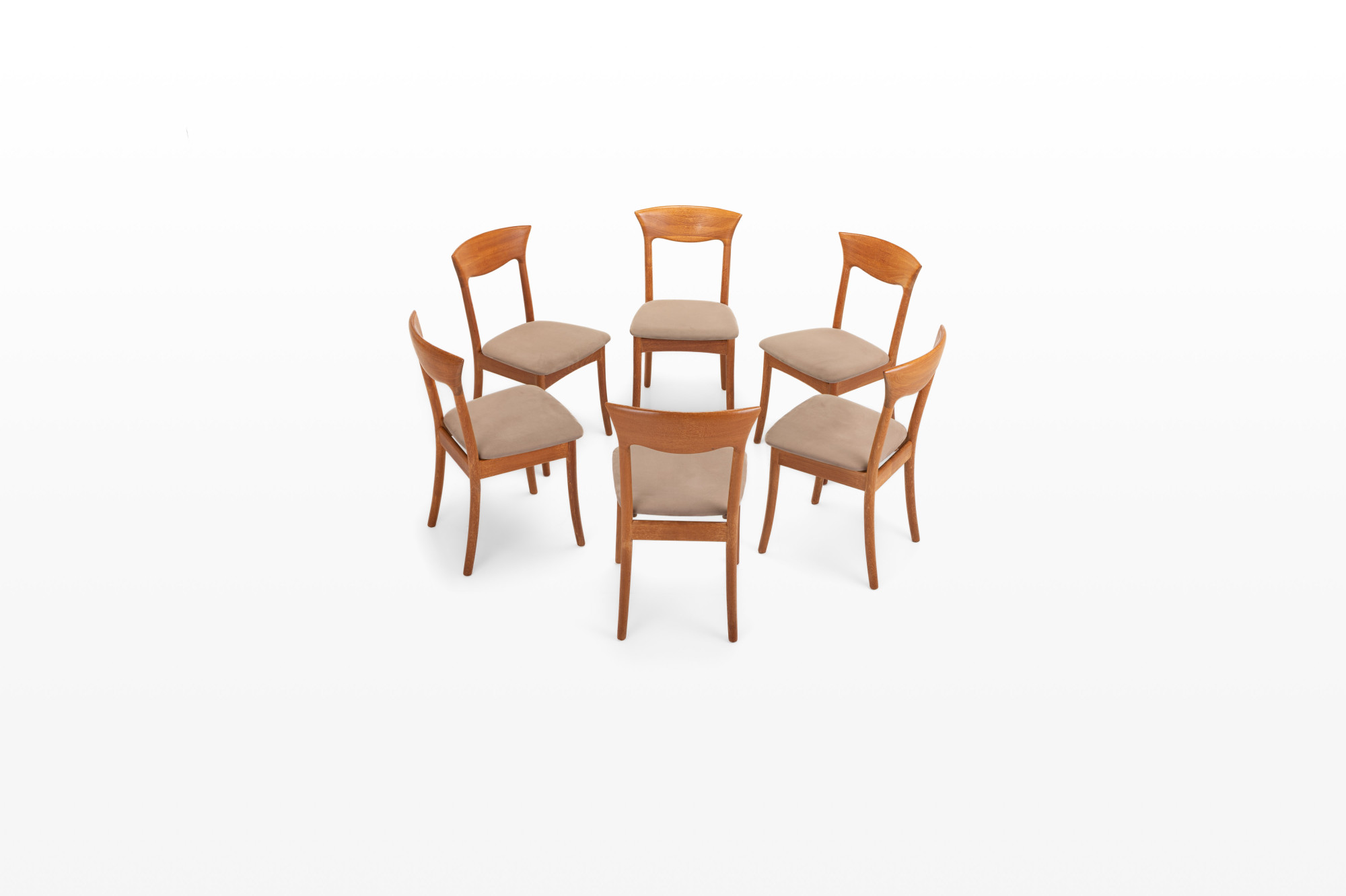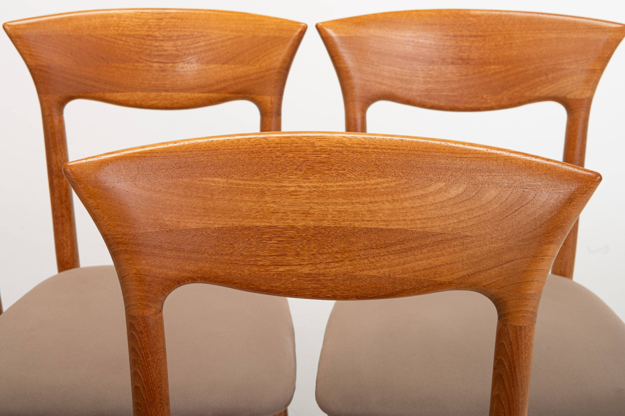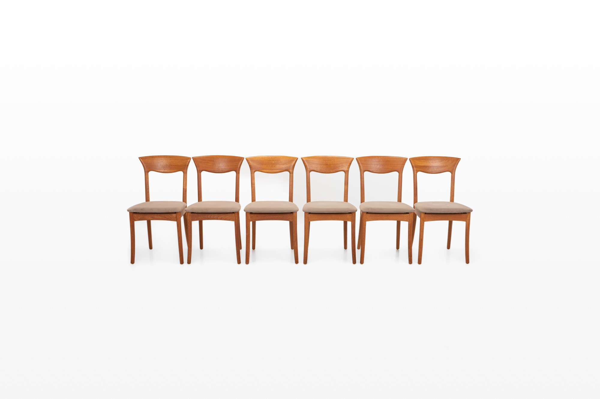 Set of six dining chairs designed by Juul Kristensen for JK Denmark in the 1960s. The chairs have a light teak frame and are in very good condition. Marked by the producer.