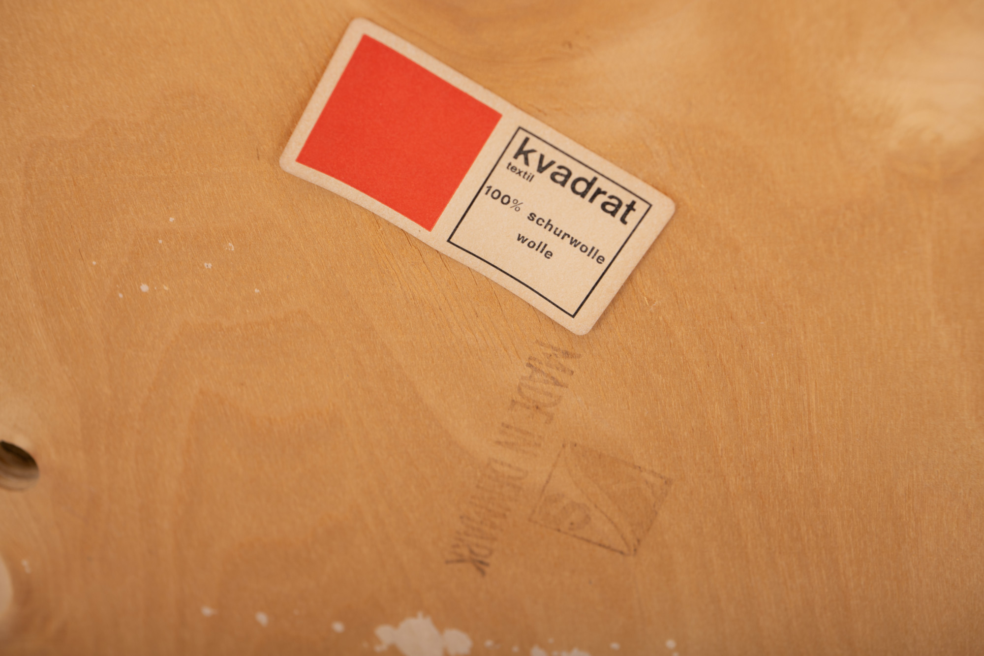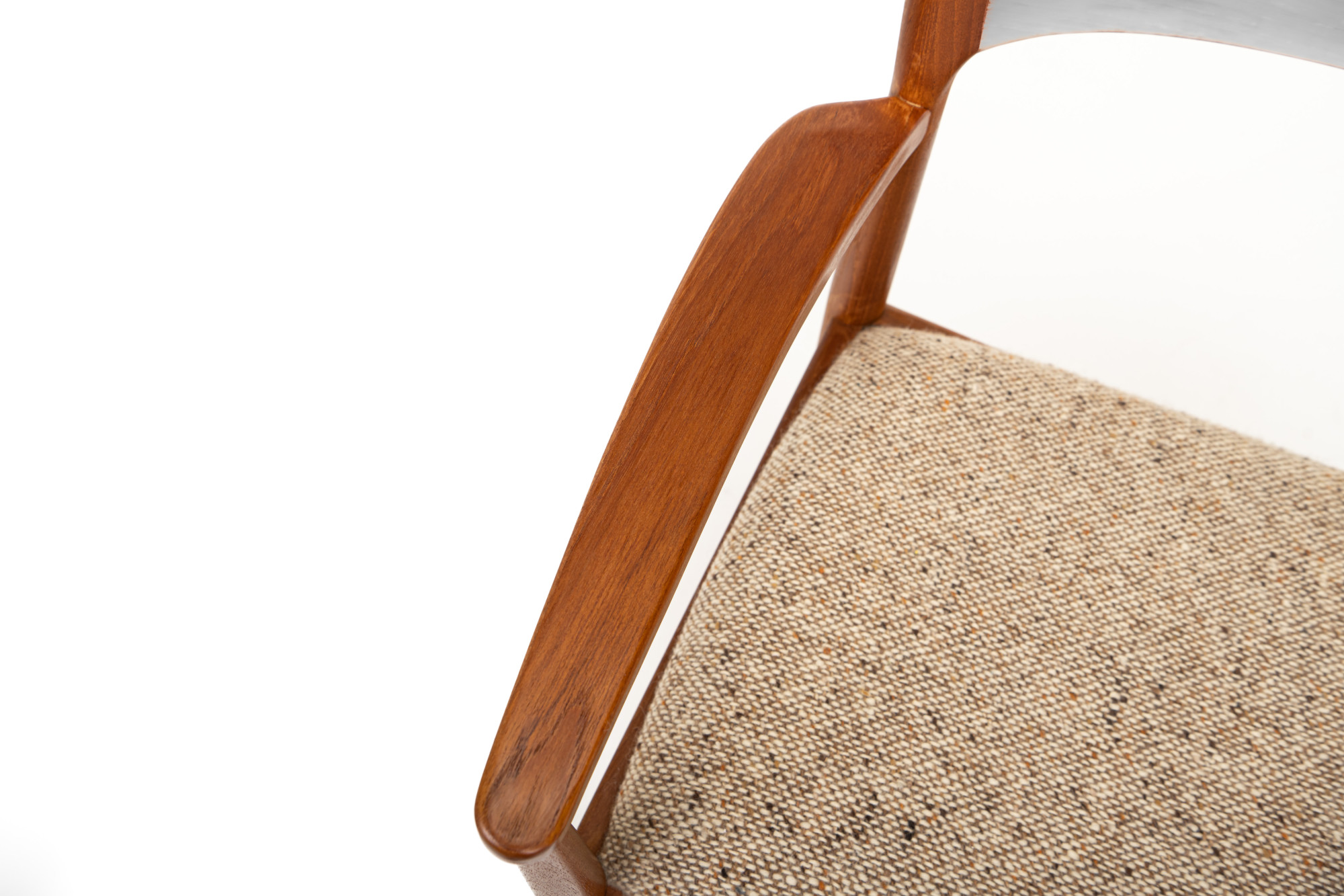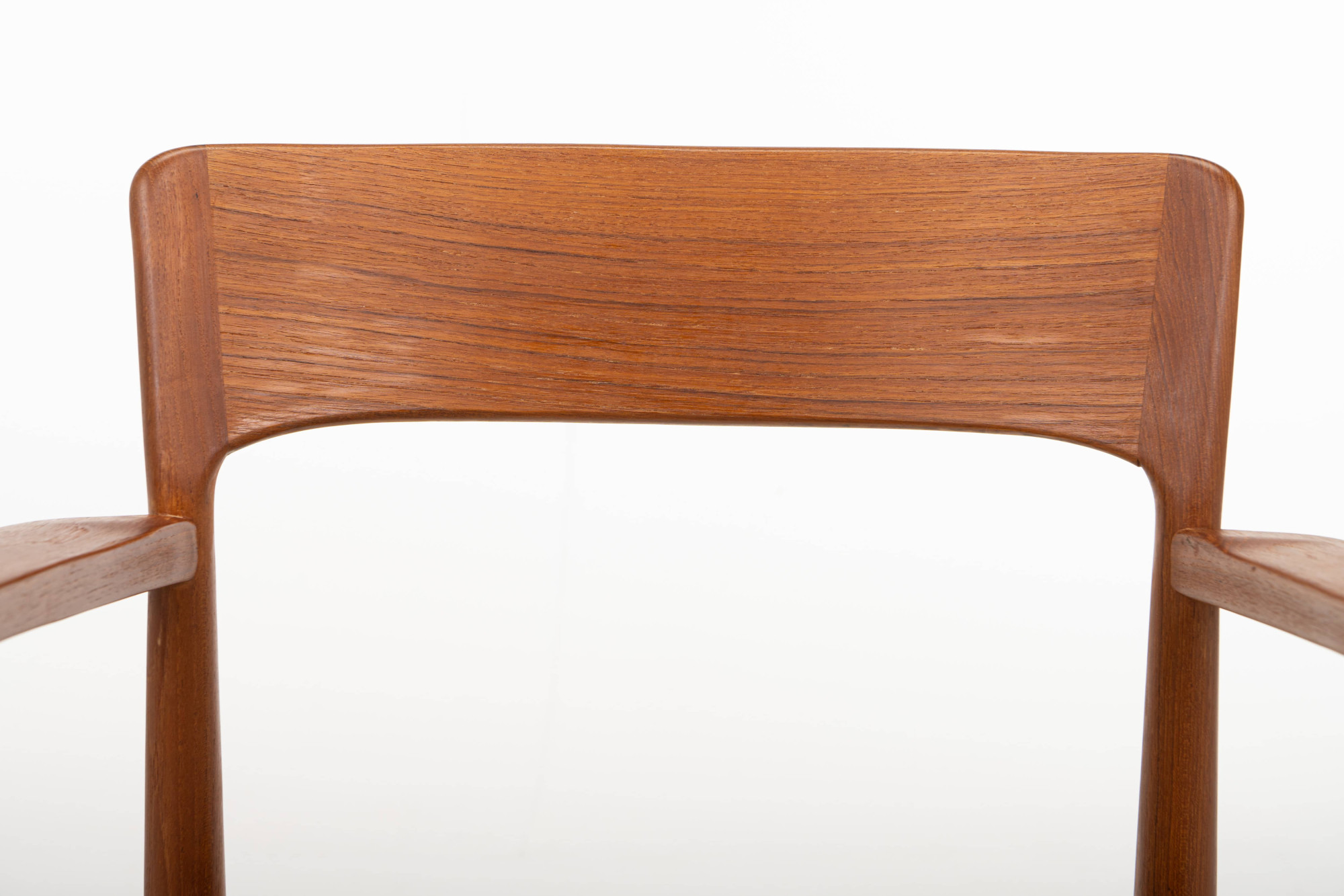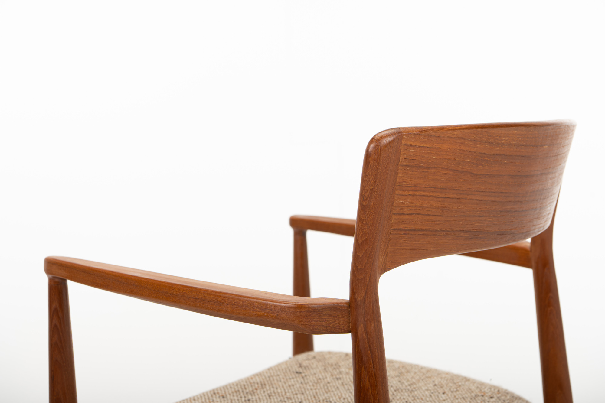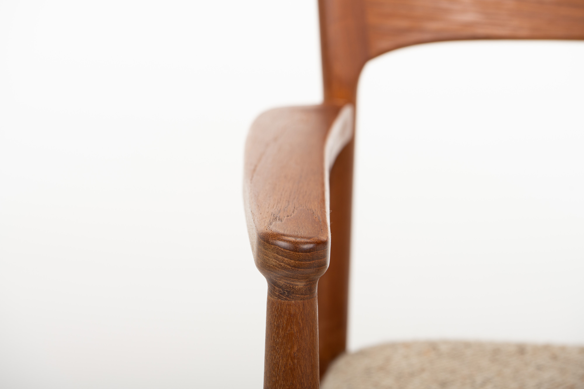 Set of 6 dining chairs in teak, designed by Henning Kjærnulf for Korup Stølefabrik in Denmark in the 1960s. The chairs still have the original 'Kvadrat' upholstery.