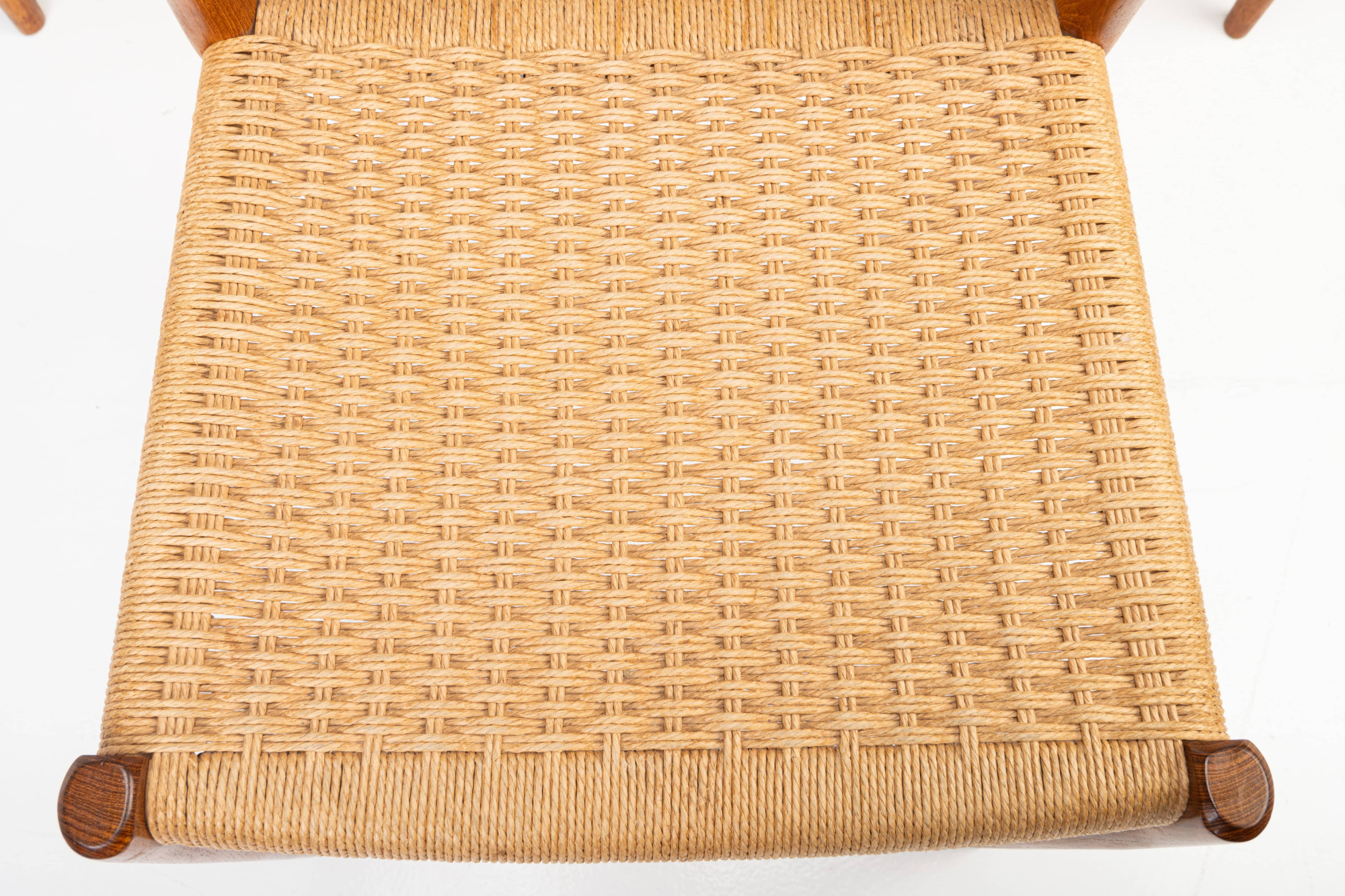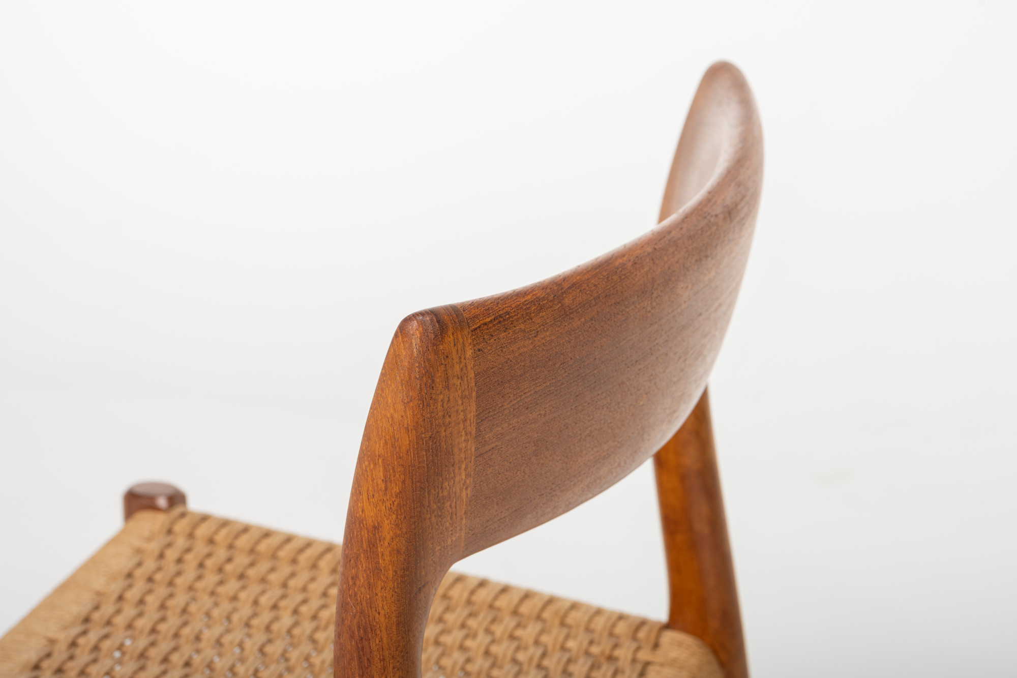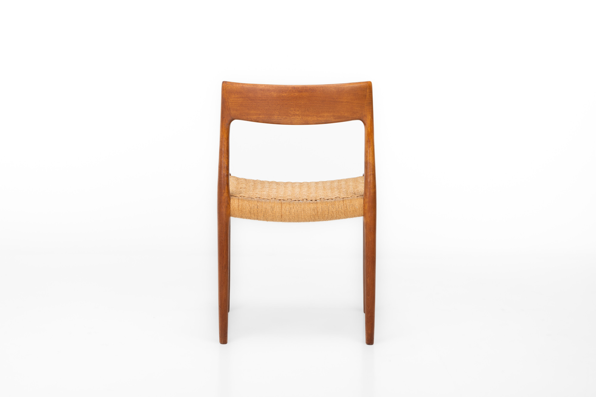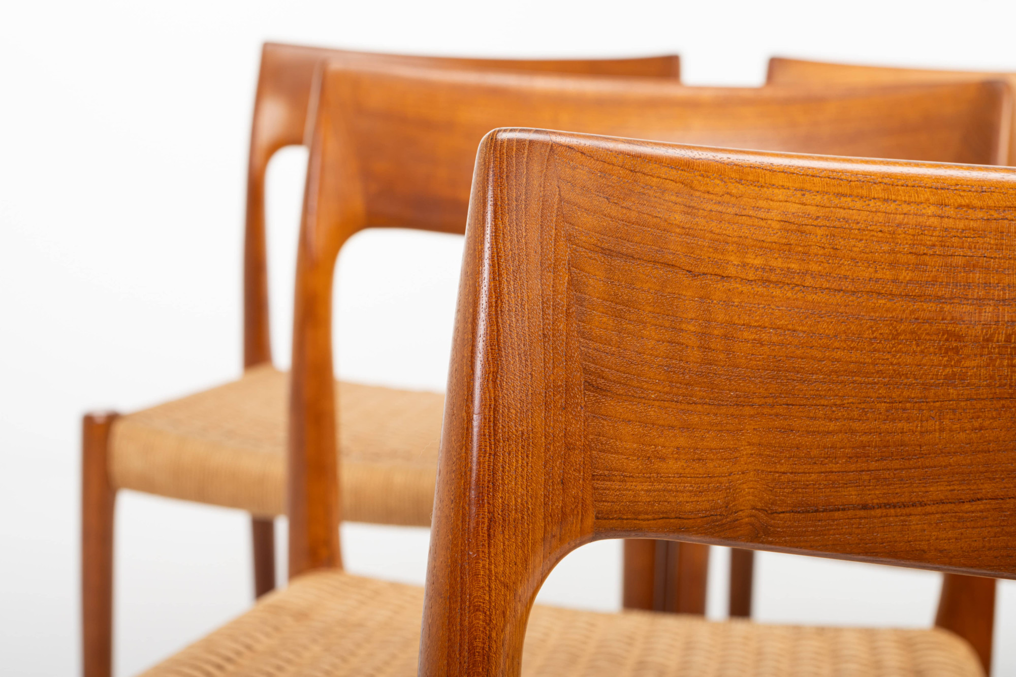 Set of six 'Model 77' dining chairs designed by Niels Otto Moller for J.L. Møllers Møbelfabrik, Denmark 1960s. The chairs have a teak frame and papercord seating.