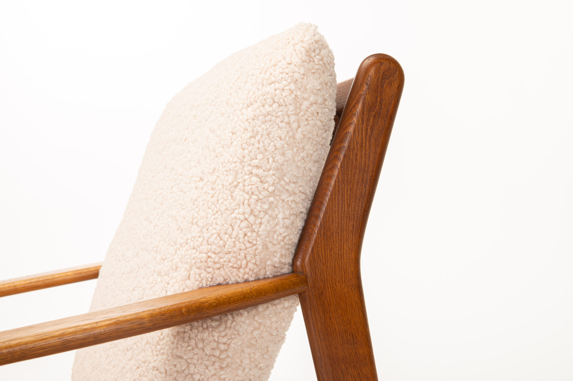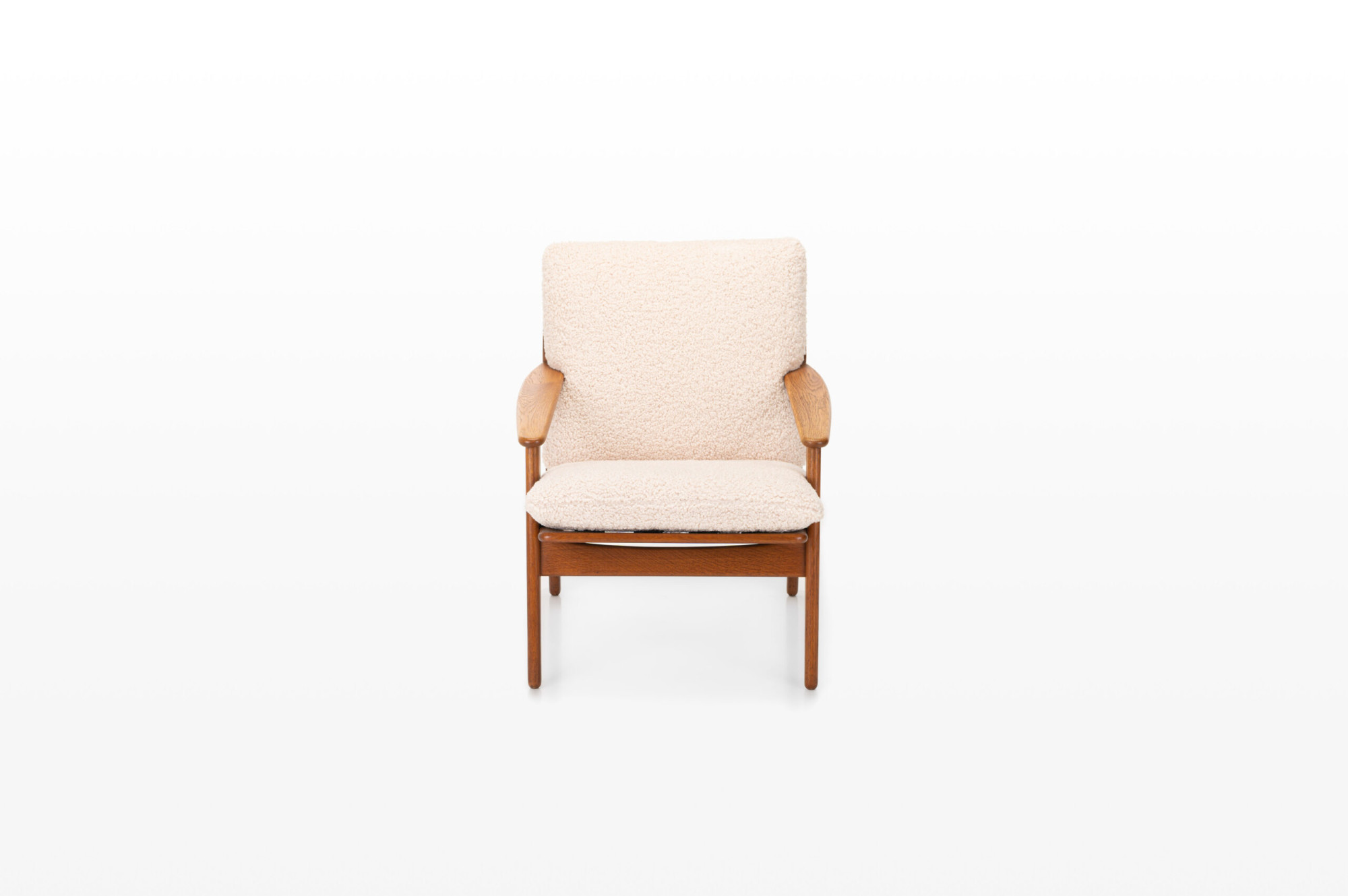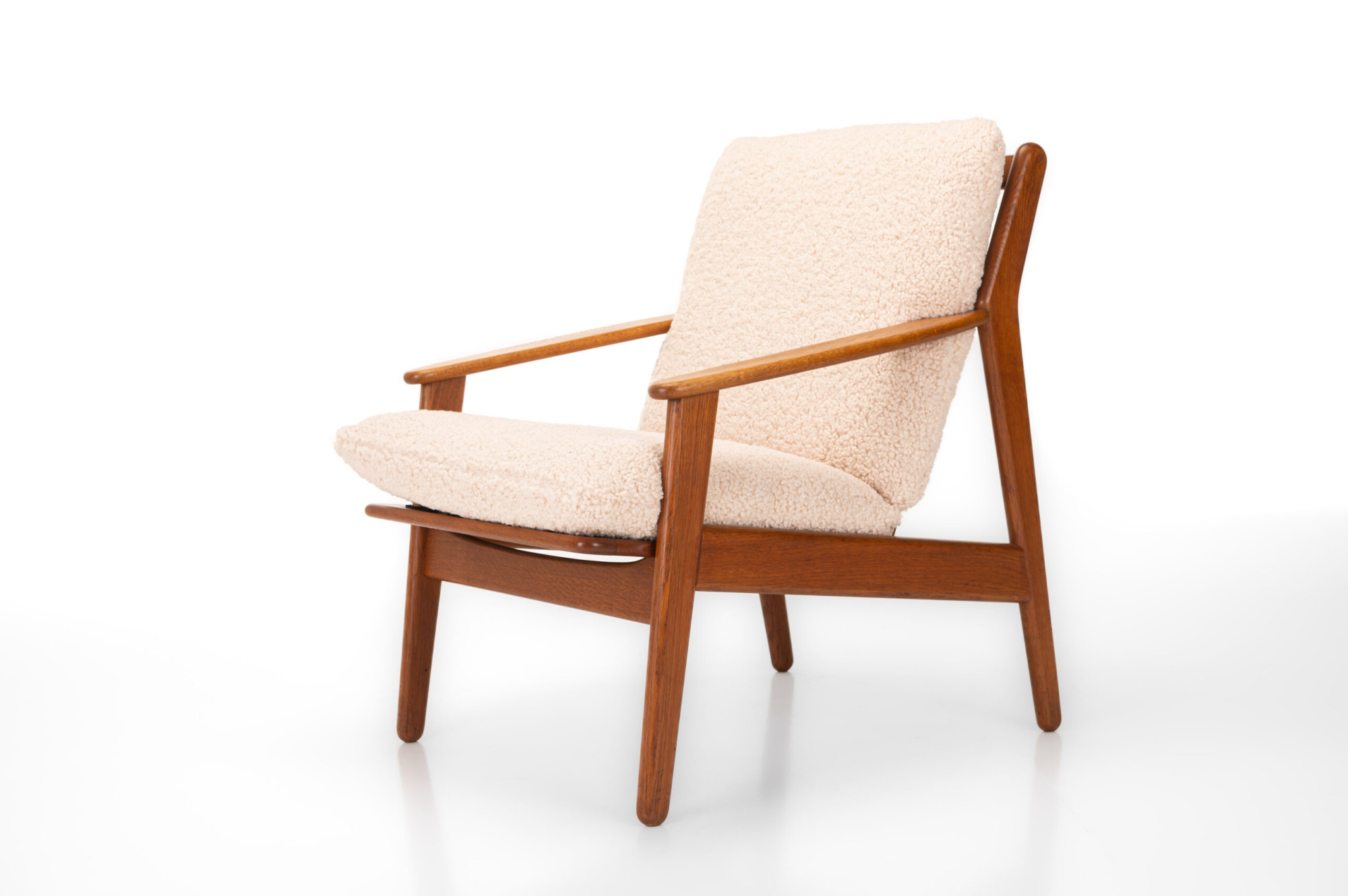 Very nice vintage easy chair designed by Poul Volther for FDB Mobler, Denmark 1960s. The cushions have been reupholstered with comfortable teddy fabric.