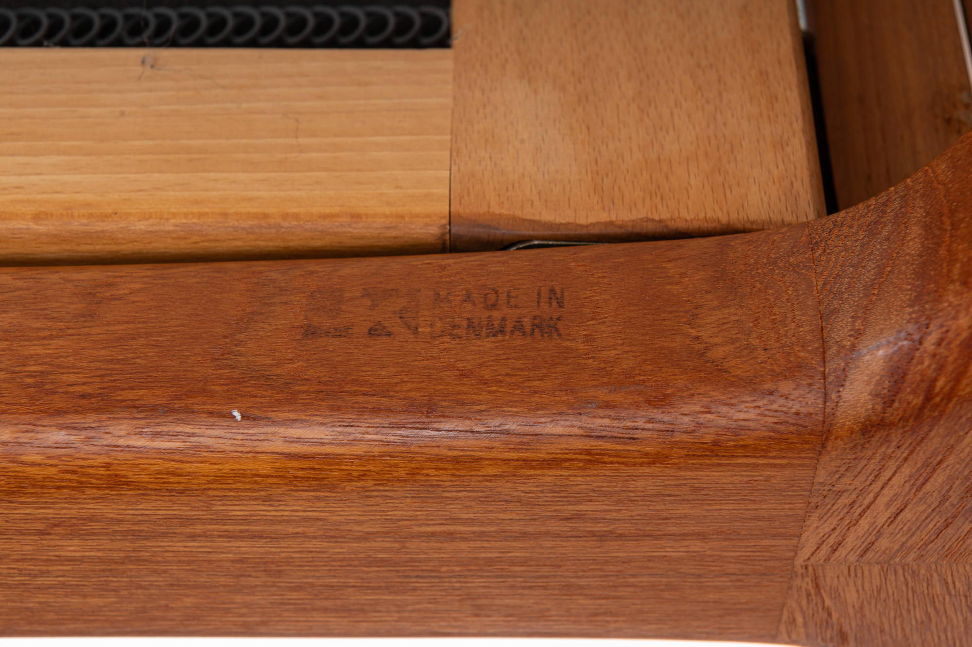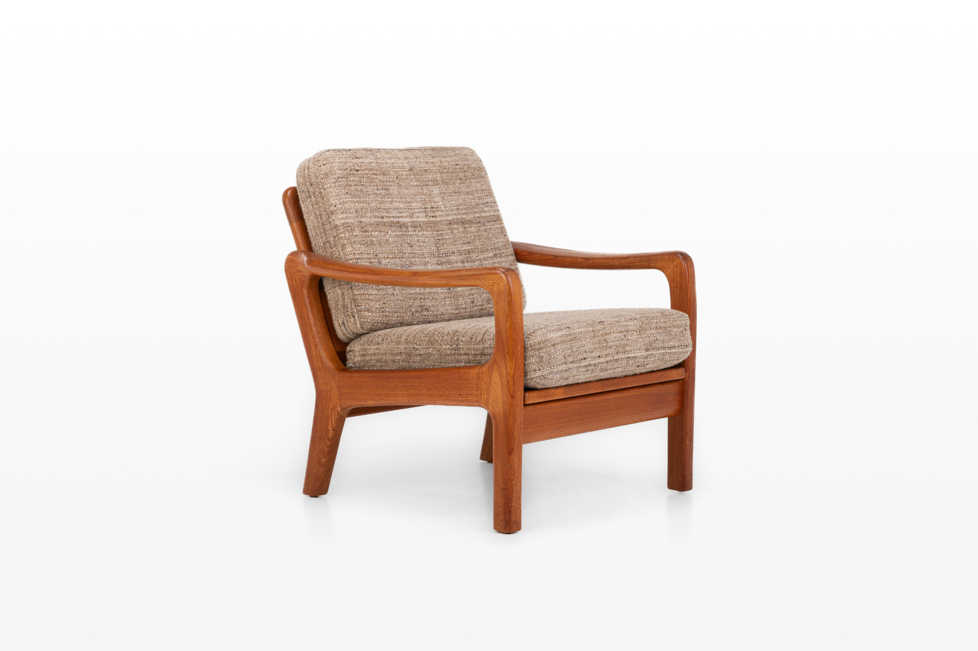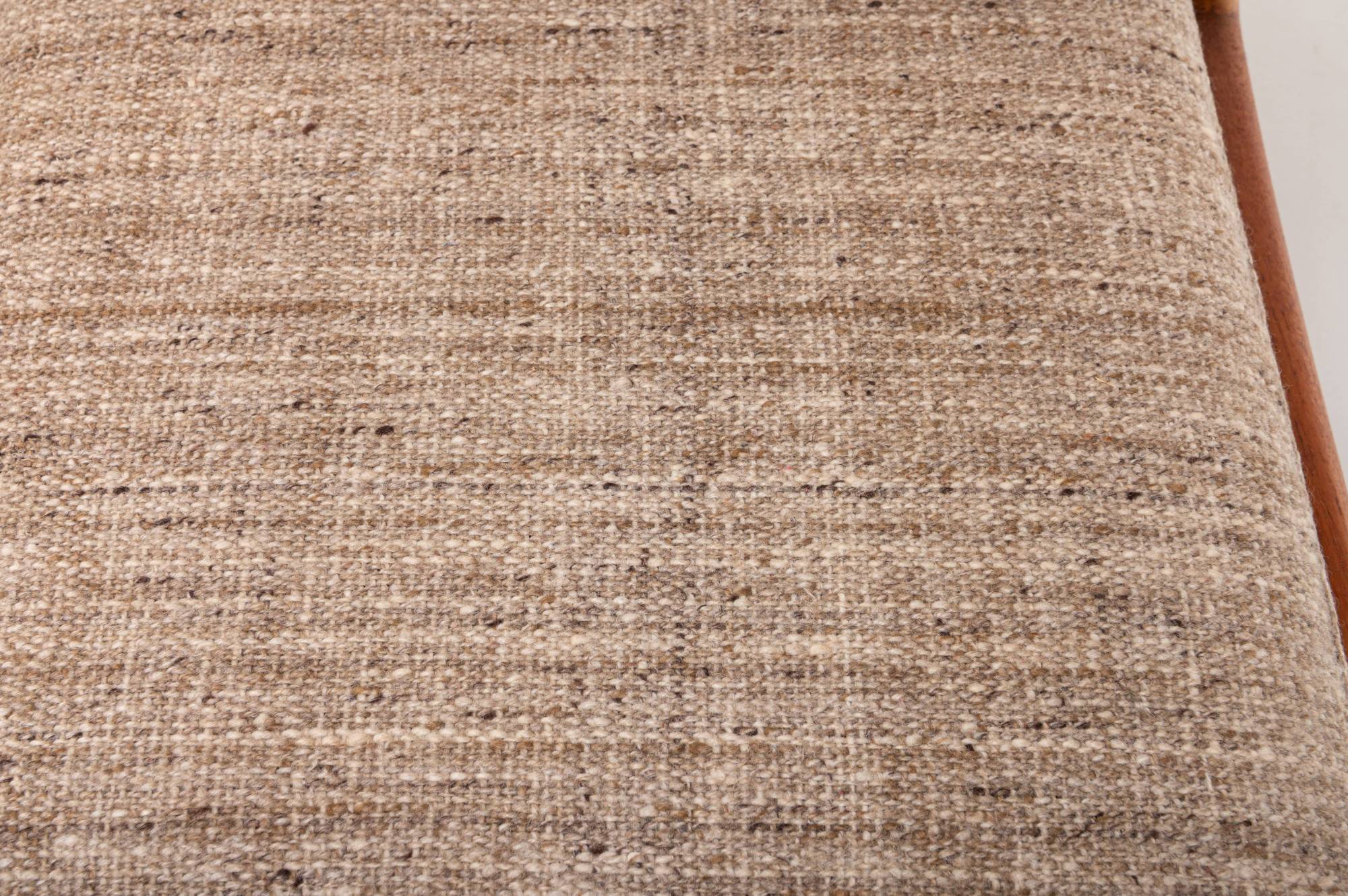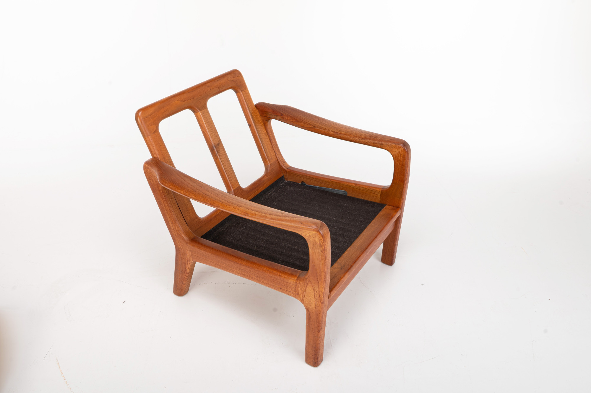 Danish vintage easy chair designed by Juul Kristensen for JK Denmark 1960s. The frame of the armchair is in solid teak and the cushions are in beige wool. Very good condition and marked by the producer.