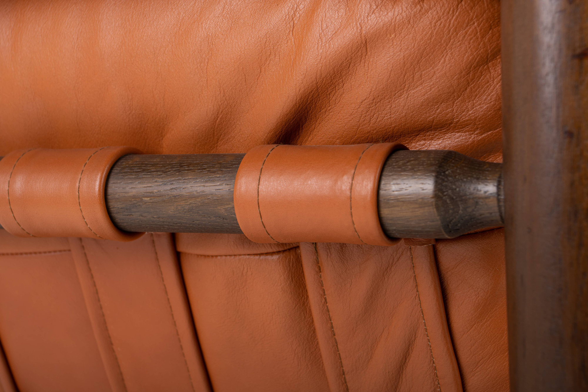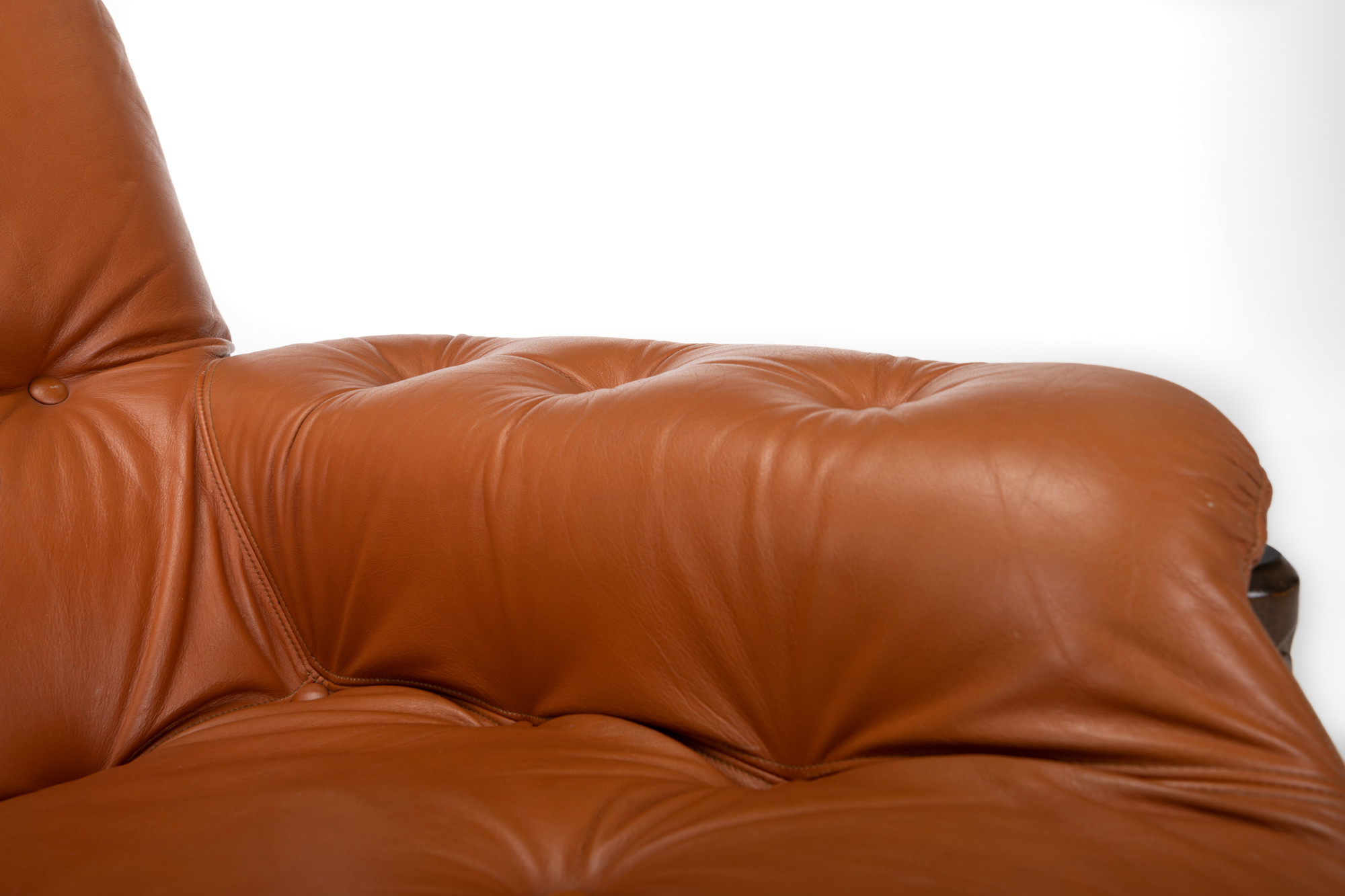 Brazilian vintage lounge chair + ottoman with the original cognac leather upholstery. The lounge chair is in very good condition. There is also a matching three-seater and two-seater available.