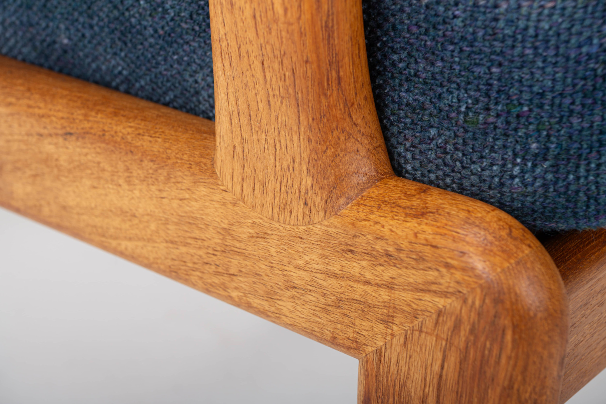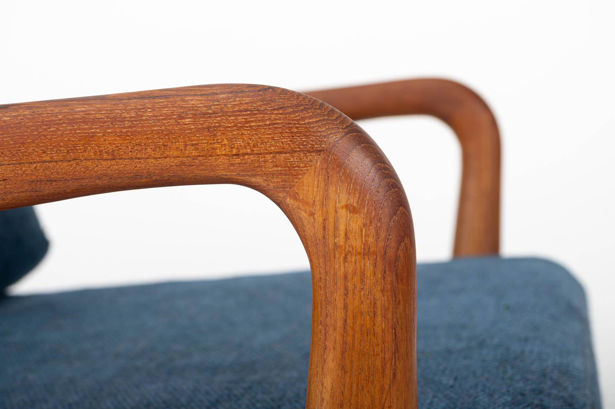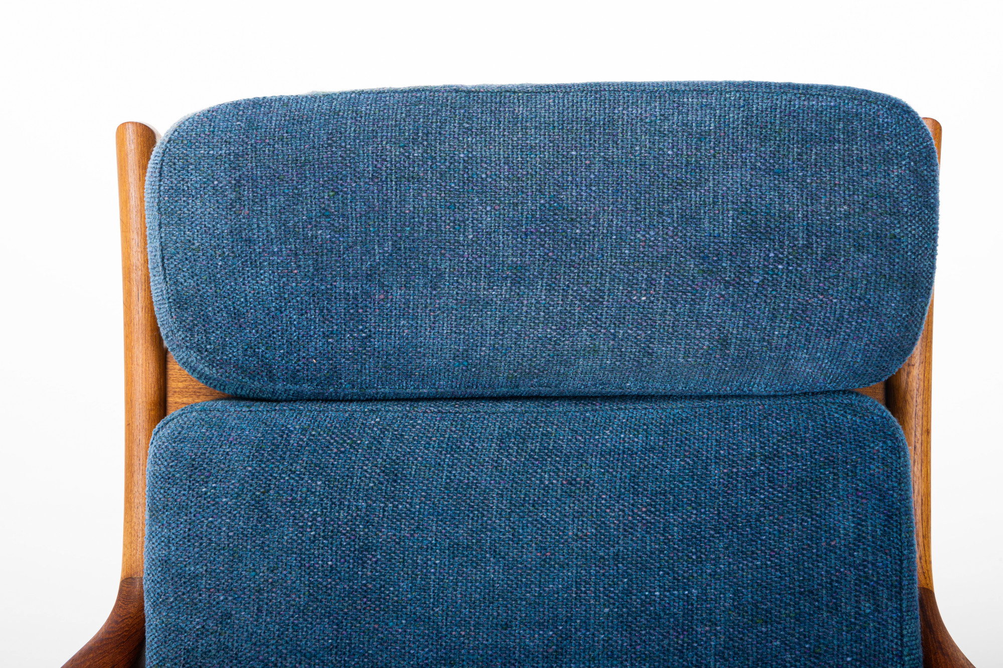 Set of two Scandinavian lounge chairs by L. Olsen & Søn, Denmark 1960s. These lounge chairs have a teak frame, blue upholstery and are in very good condition. The chairs are marked by the producer.