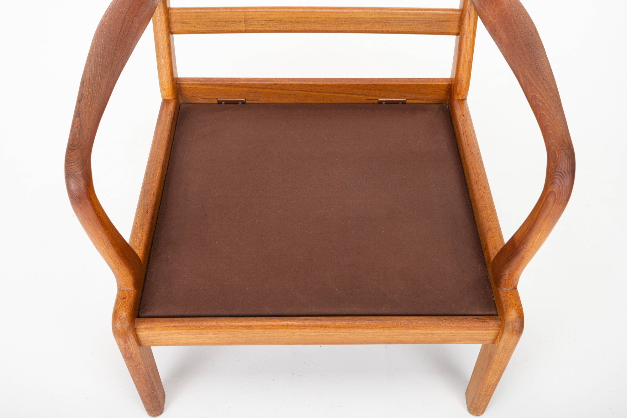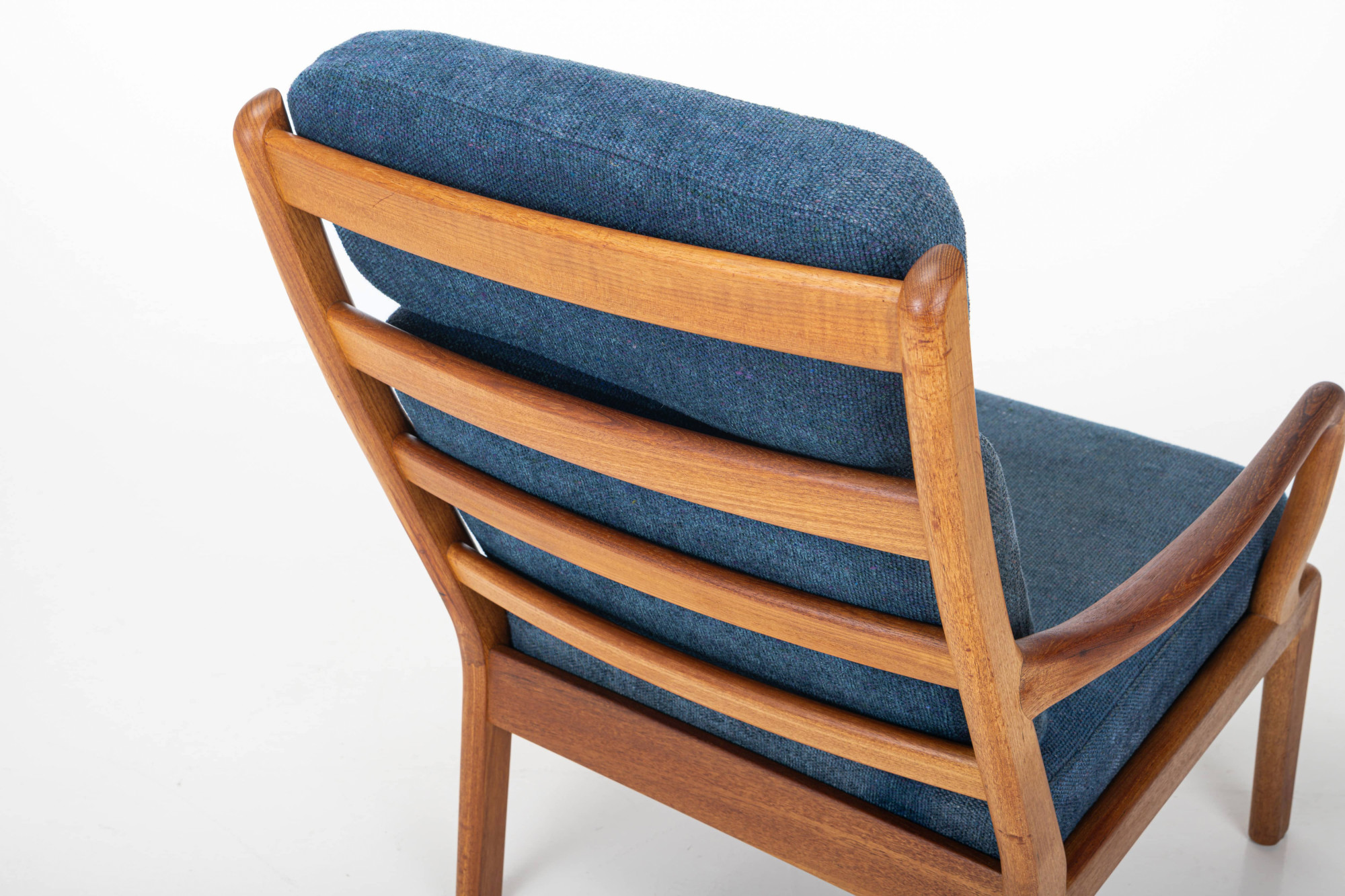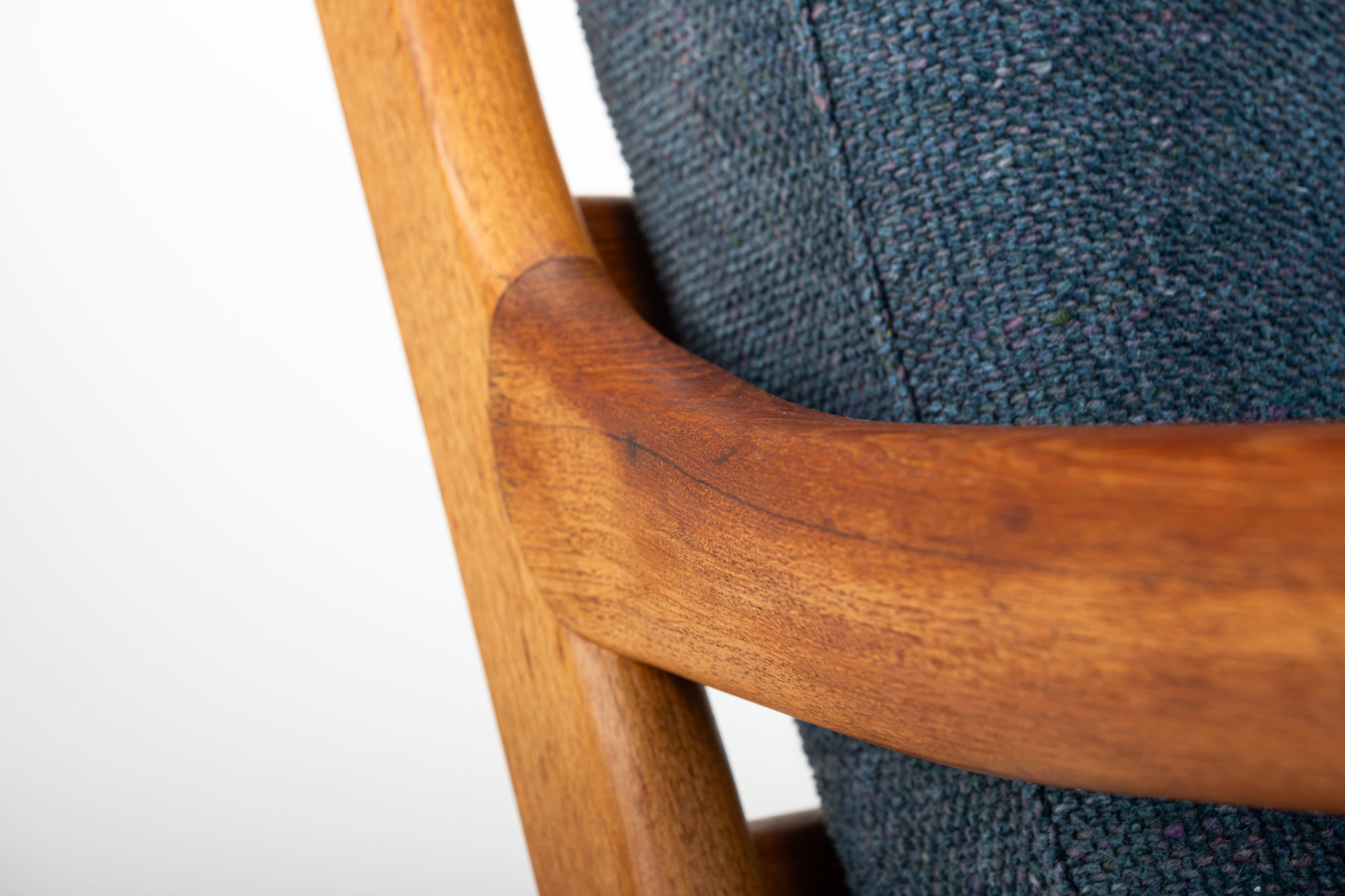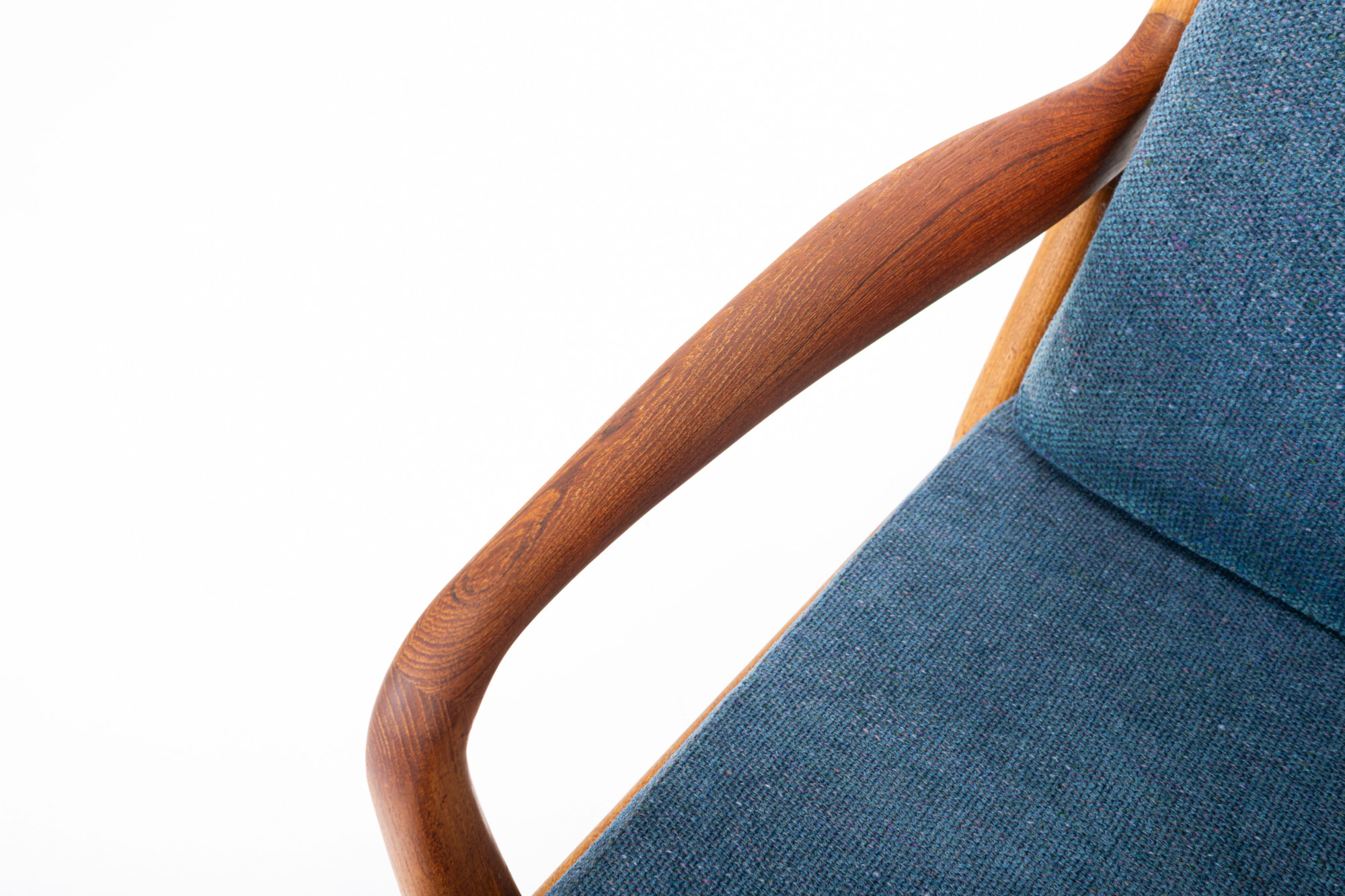 Set of two Scandinavian lounge chairs by L. Olsen & Søn, Denmark 1960s. These lounge chairs have a teak frame, blue upholstery and are in very good condition. The chairs are marked by the producer.