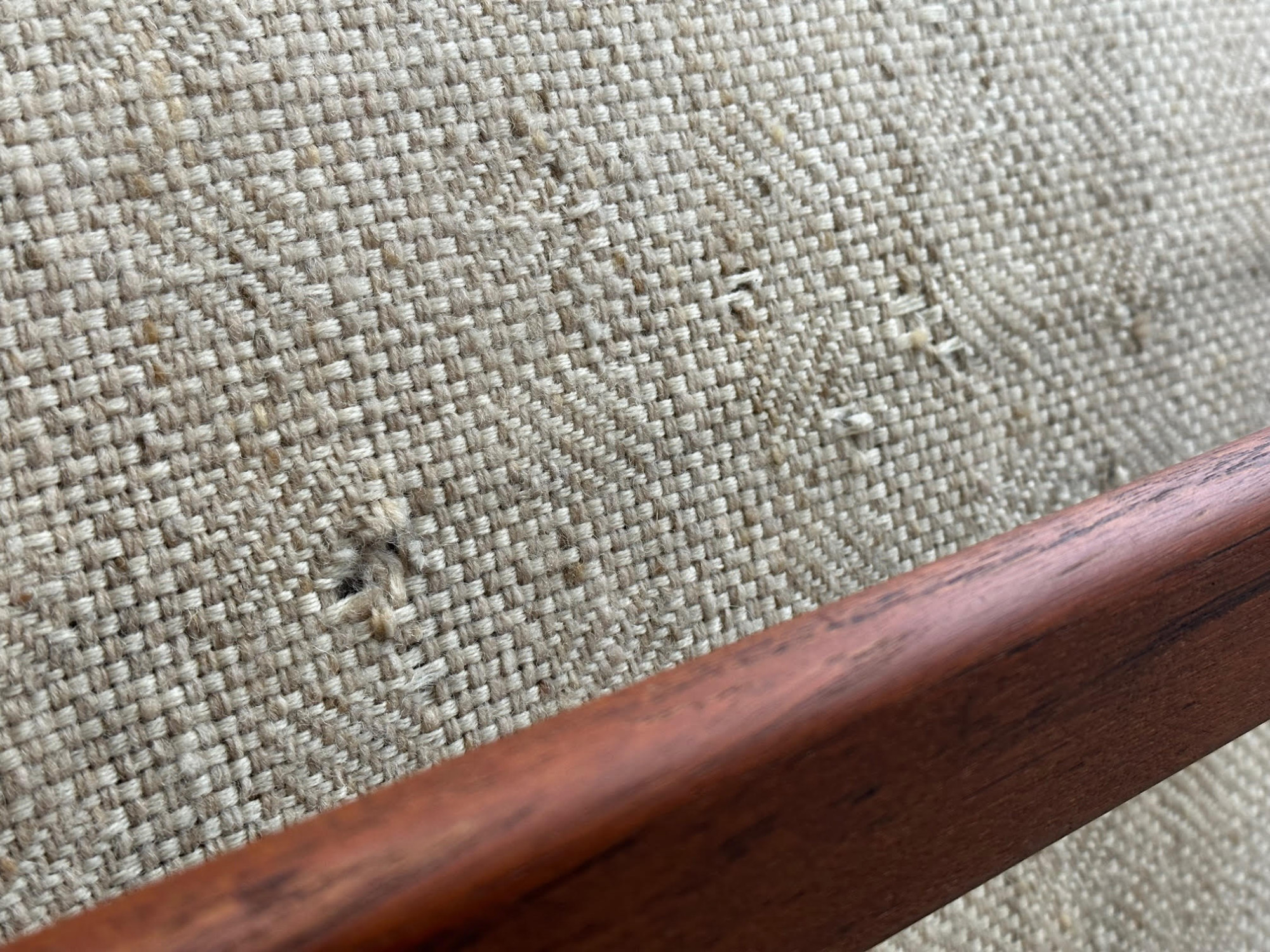 The fabric is in vintage condition, see photos. We can possibly reupholster this, ask for more information.