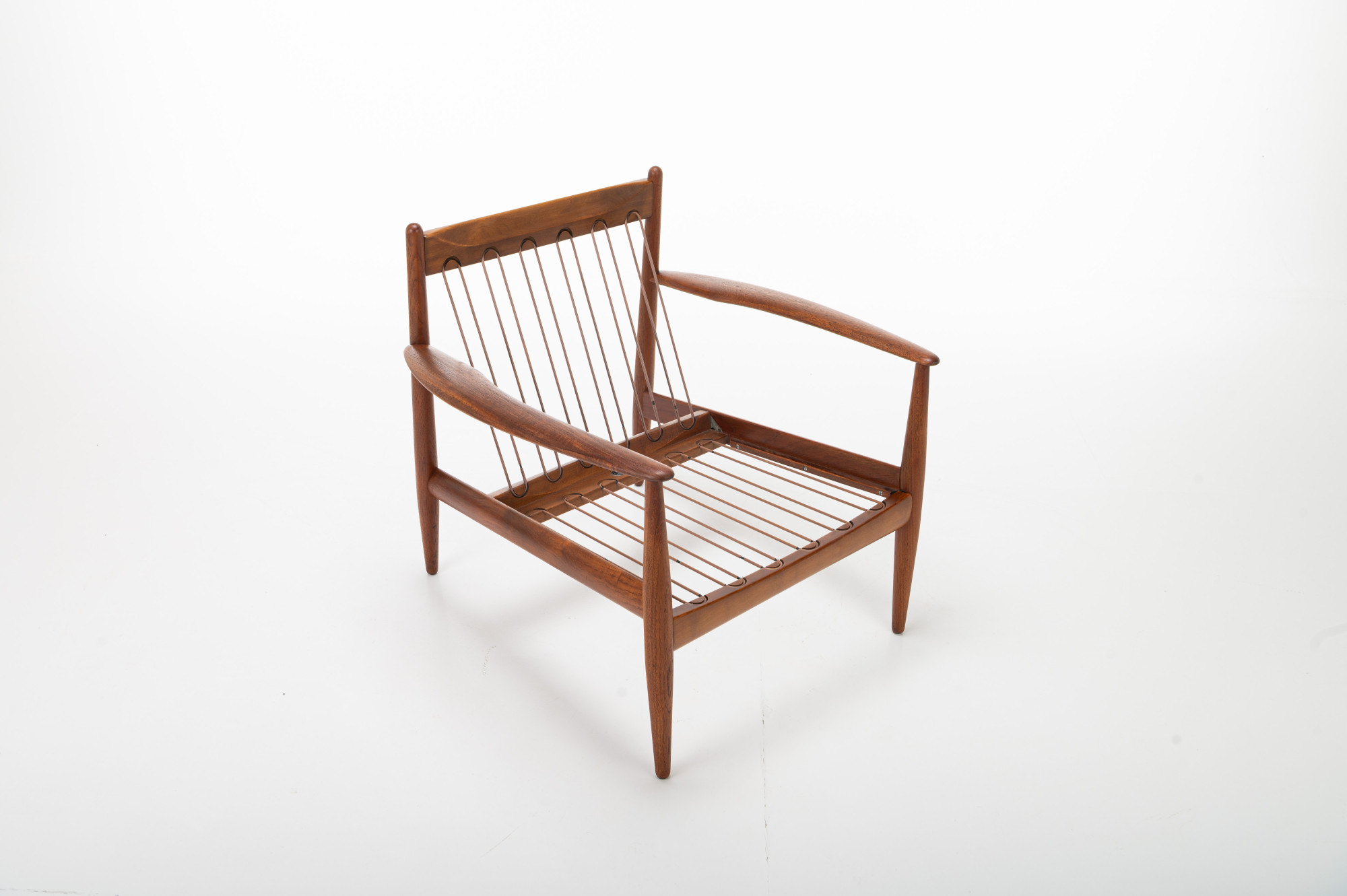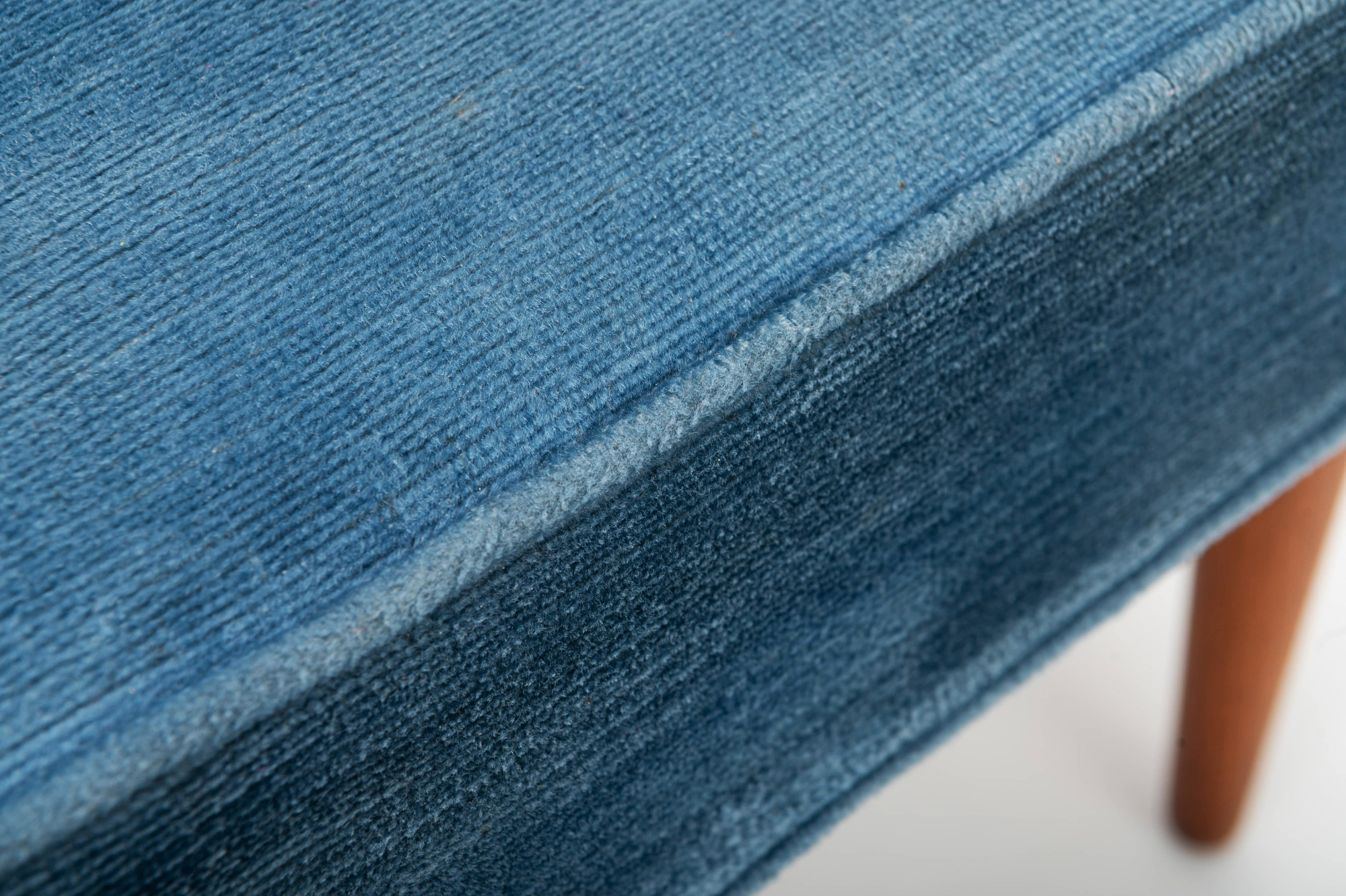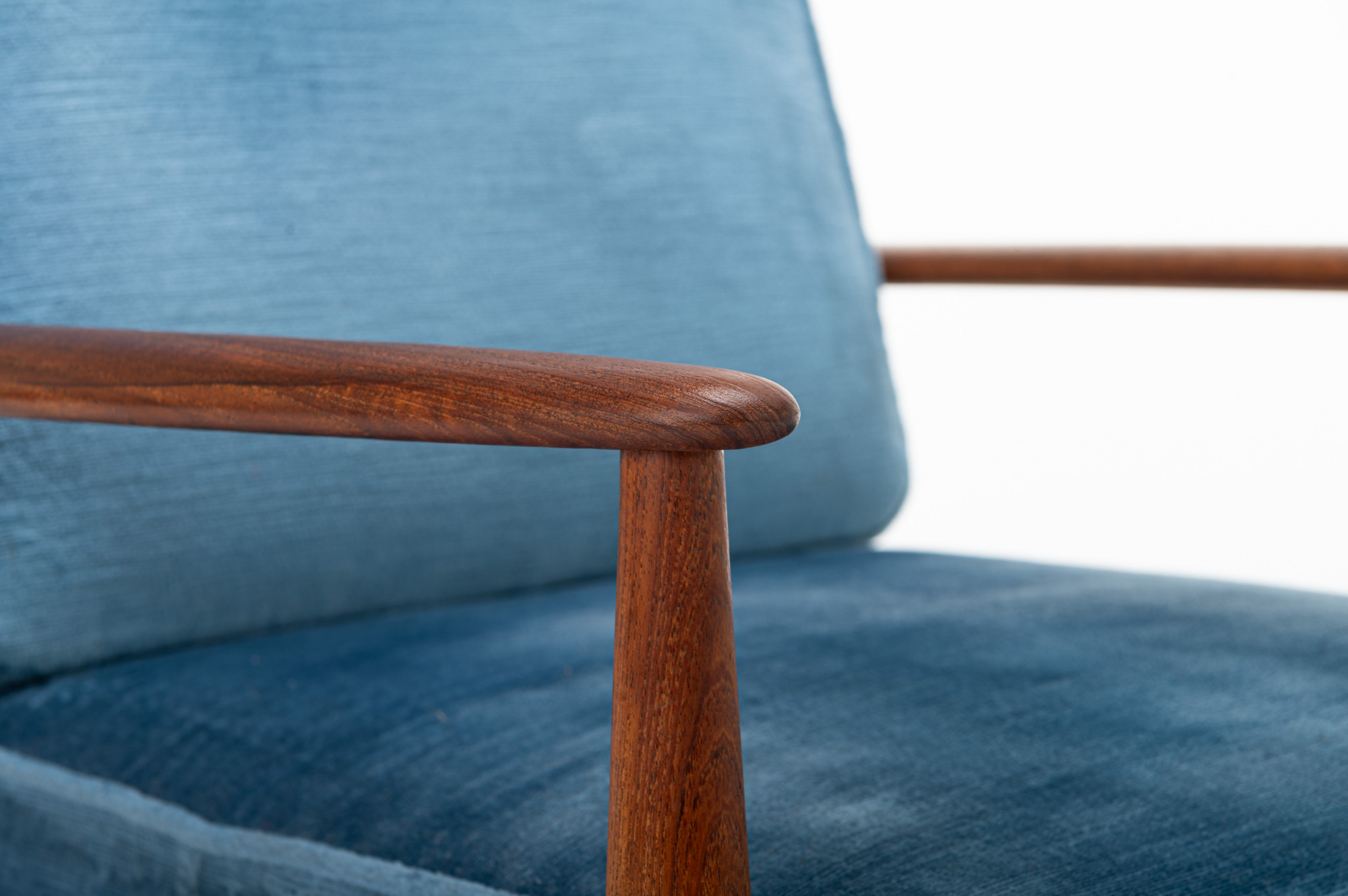 Danish vintage set of two armchairs in teak designed by Grete Jalk for France & Daverkosen in 1962. This easy chair has a teak frame, blue velvet fabric and is marked by the producer. The chairs are in very good condition.