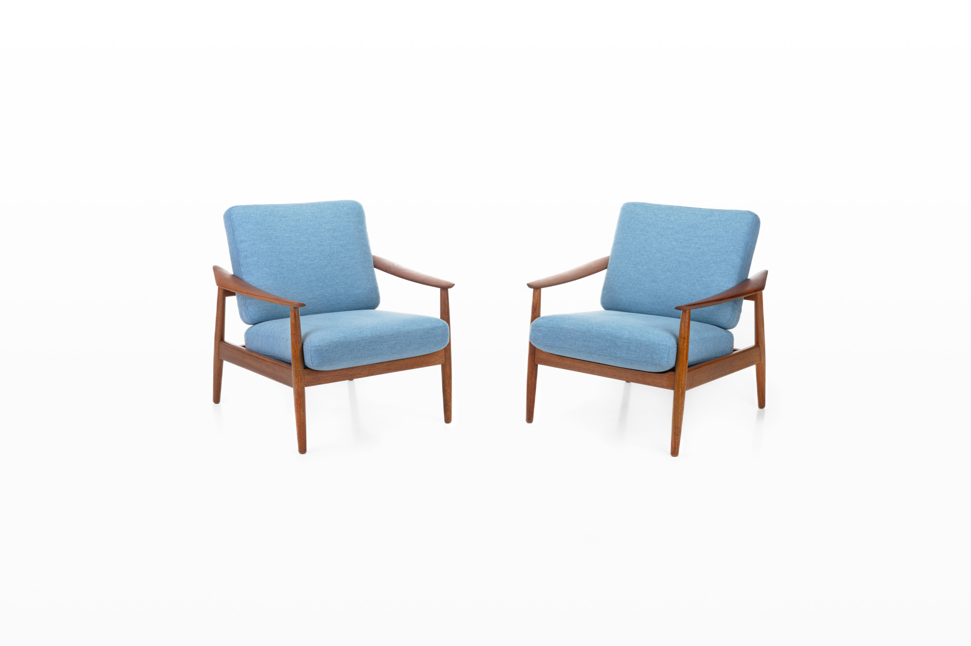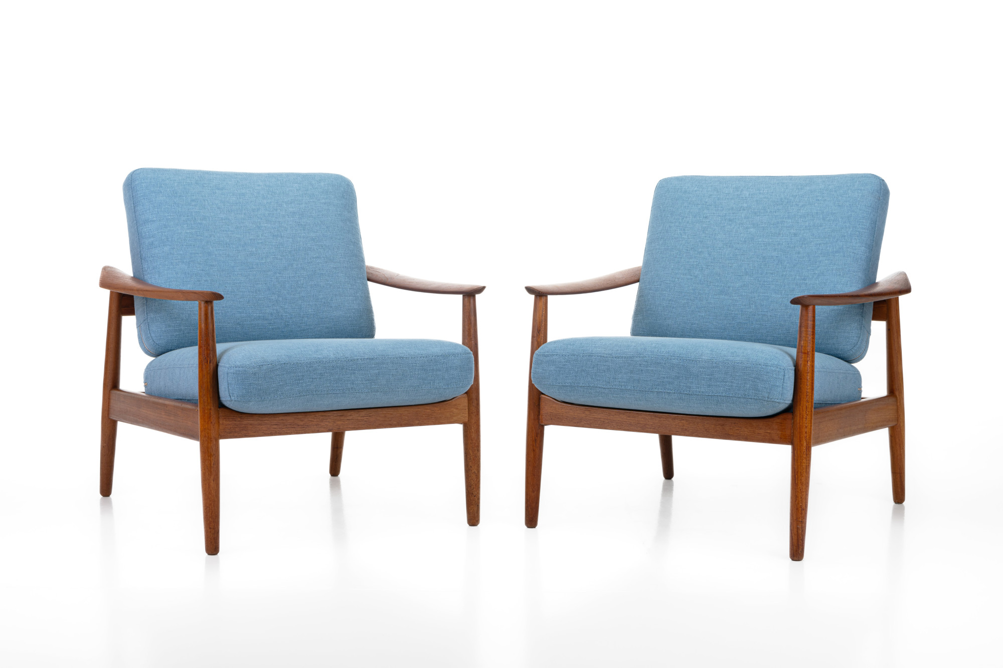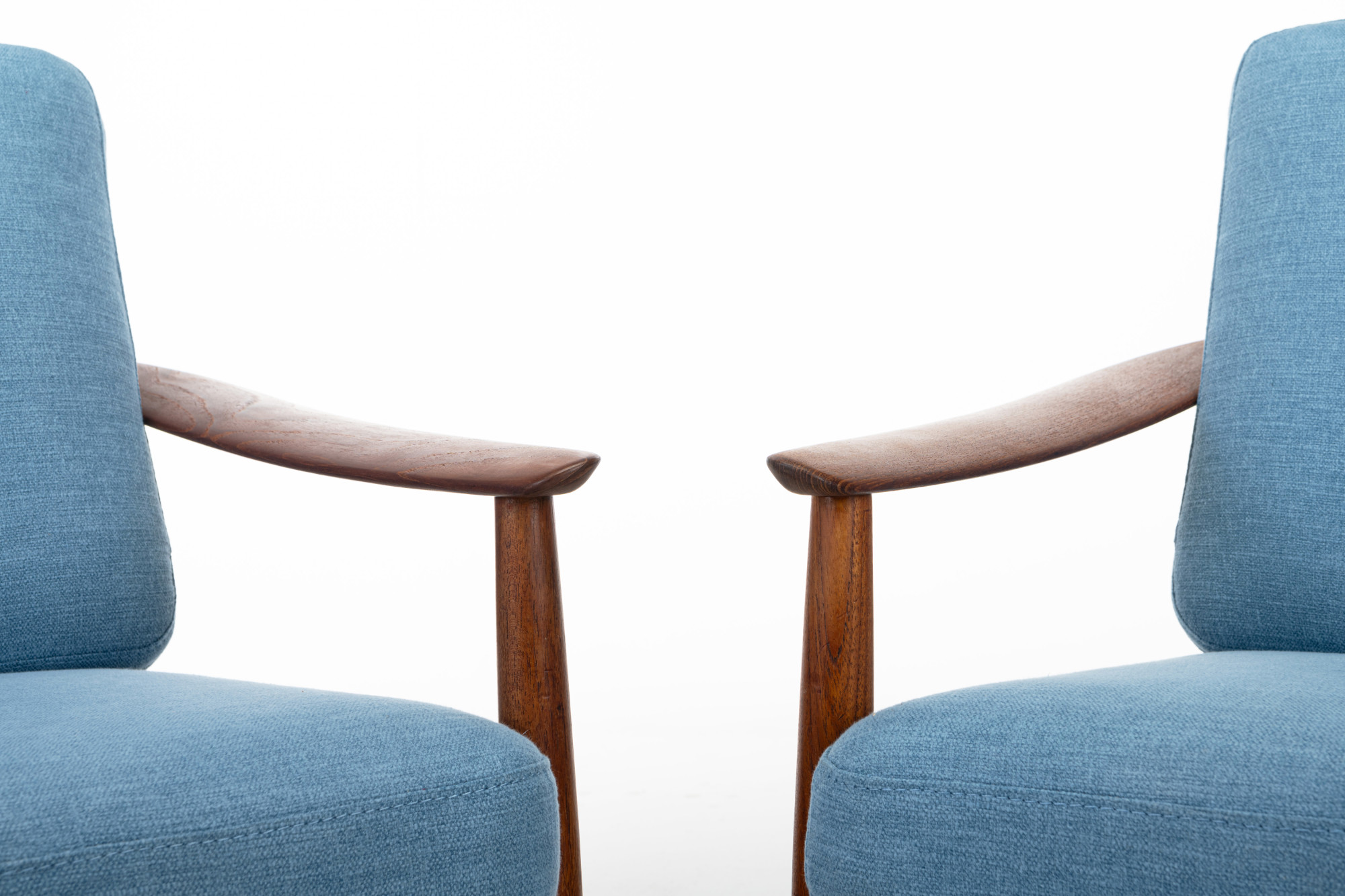 Beautiful set of two 'FD164' easy chairs by Arne Vodder for CADO, Denmark 1960s. The frame is made of teak wood and the cushions are reupholstered with a light blue fabric.