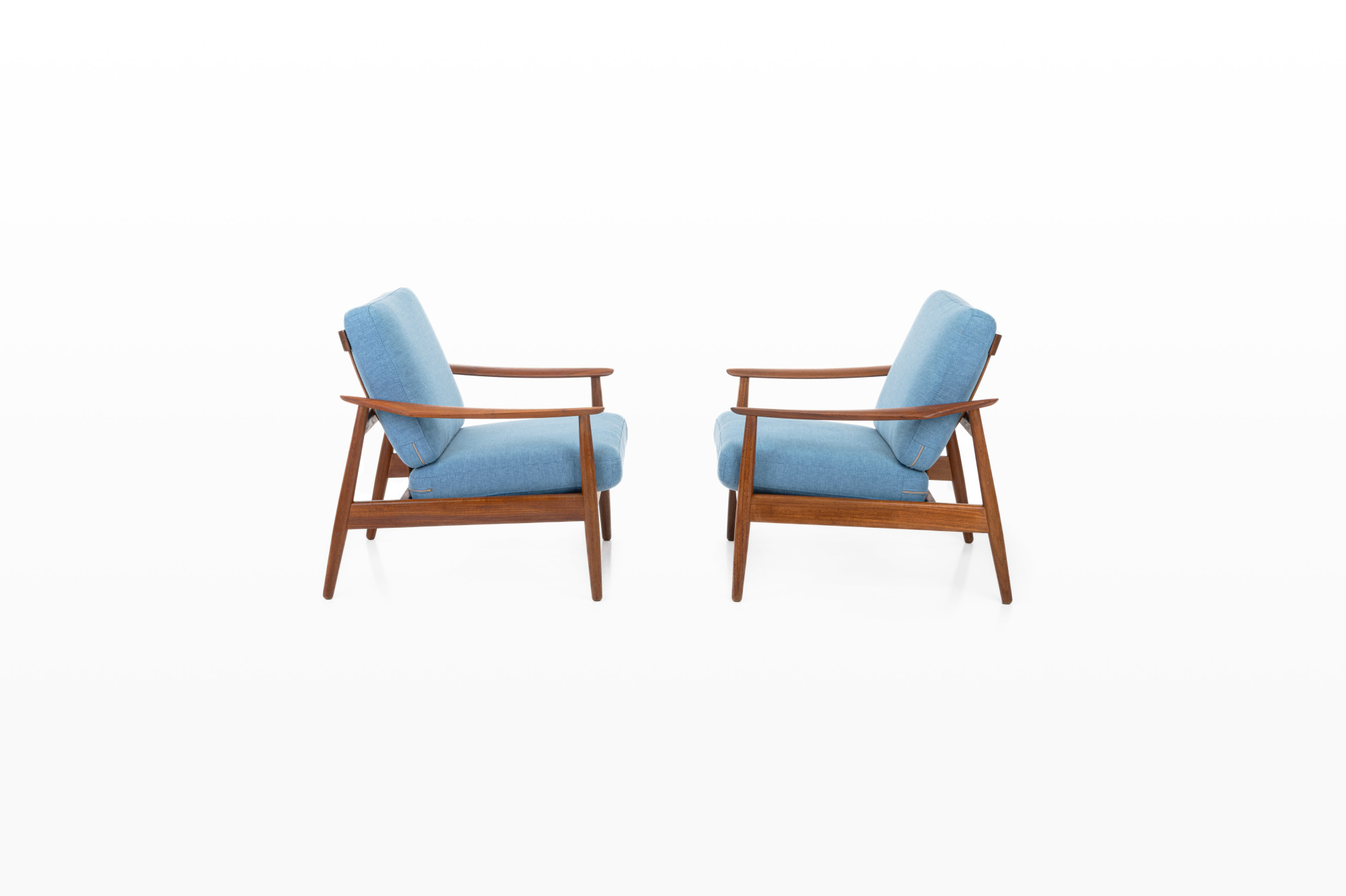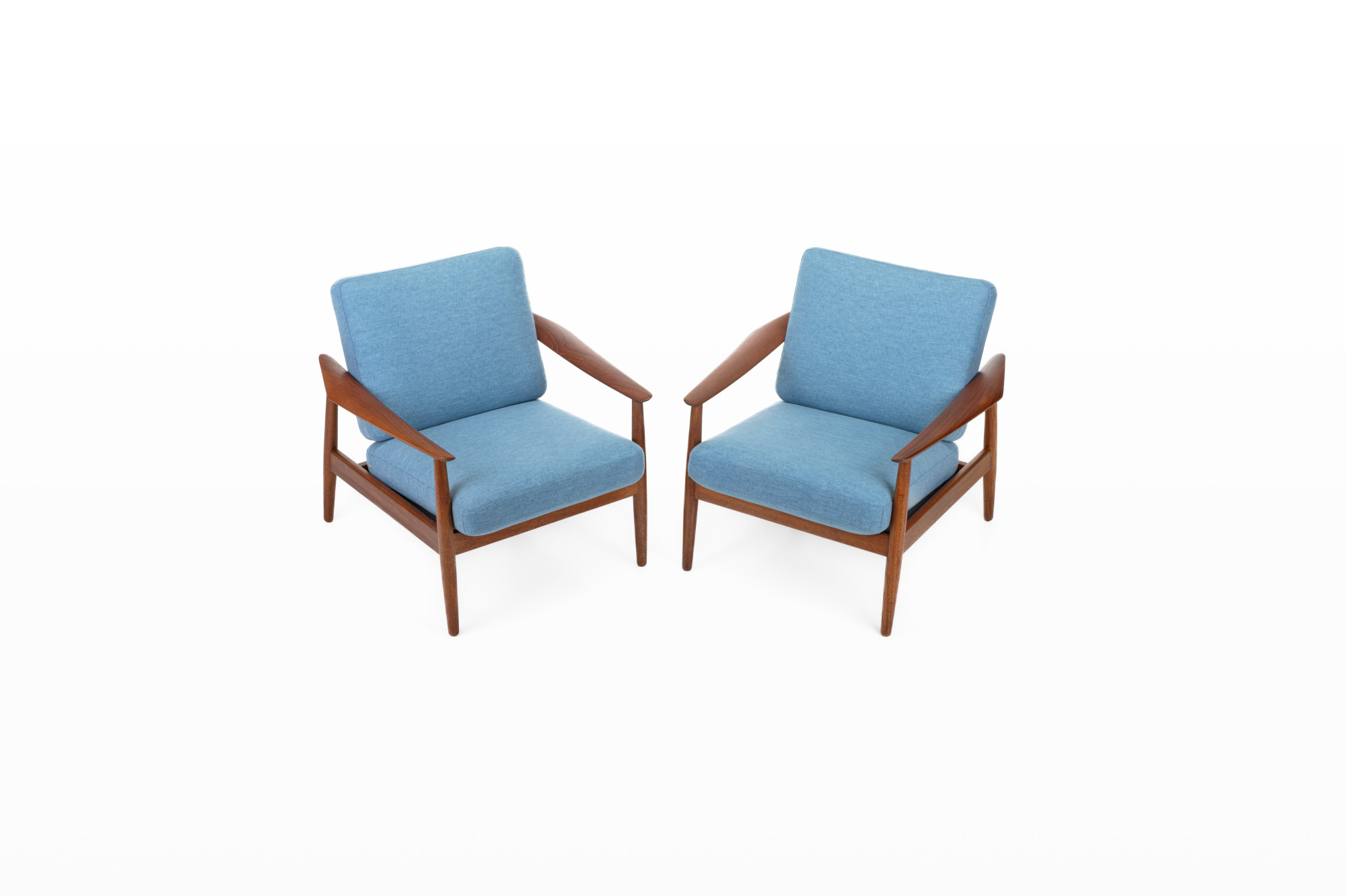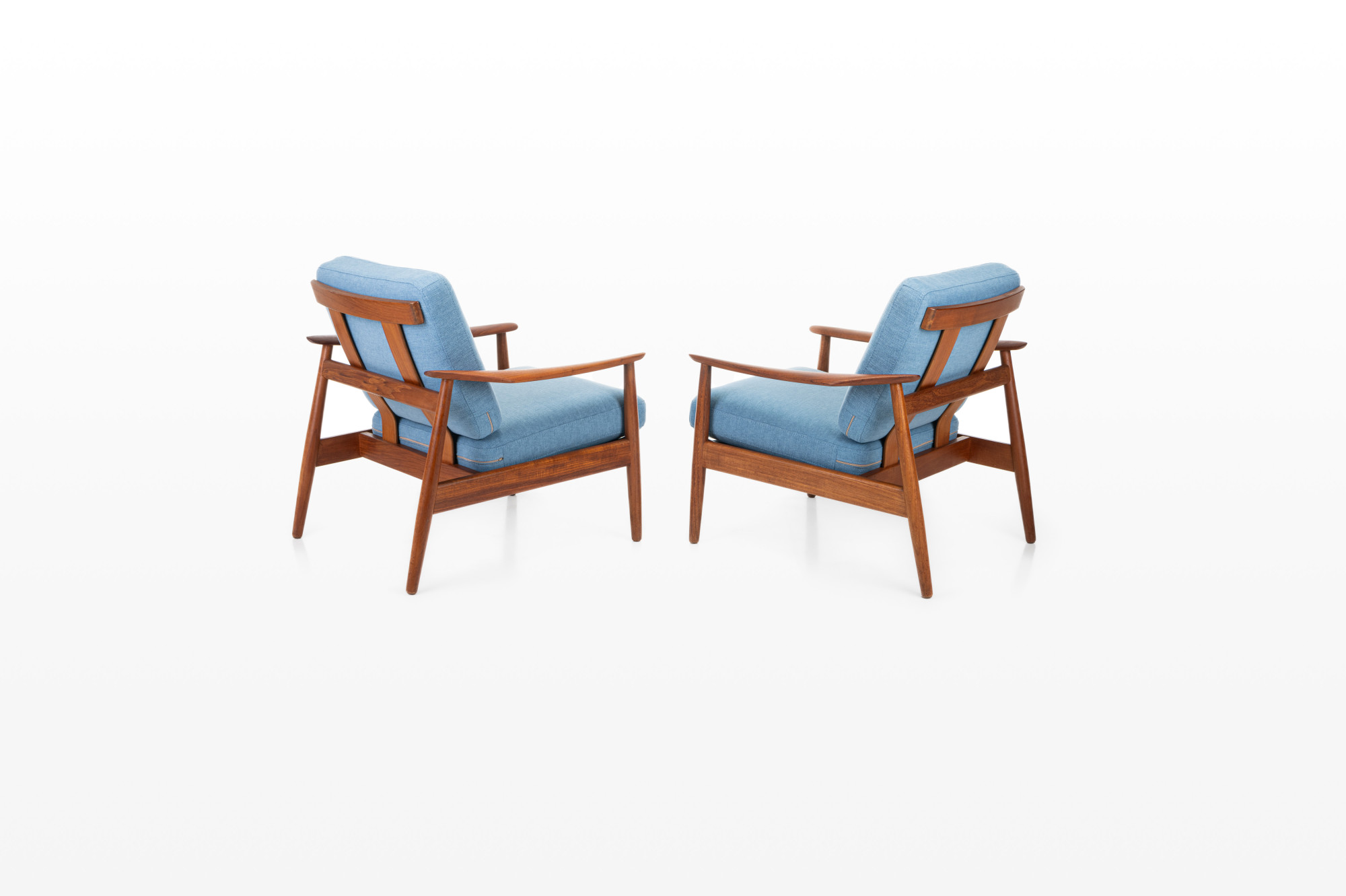 Beautiful set of two 'FD164' easy chairs by Arne Vodder for CADO, Denmark 1960s. The frame is made of teak wood and the cushions are reupholstered with a light blue fabric.