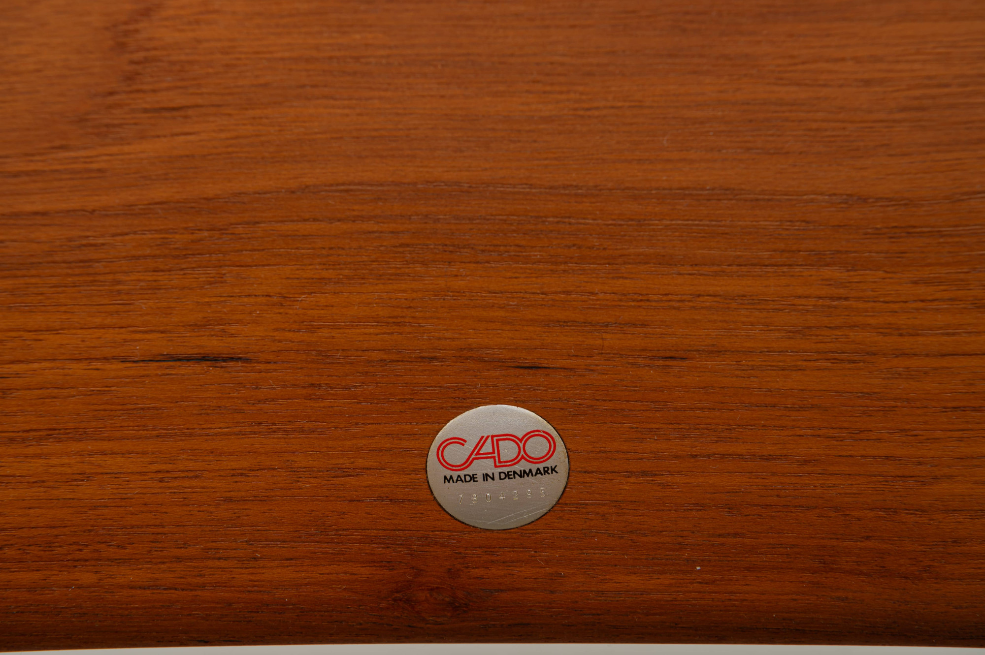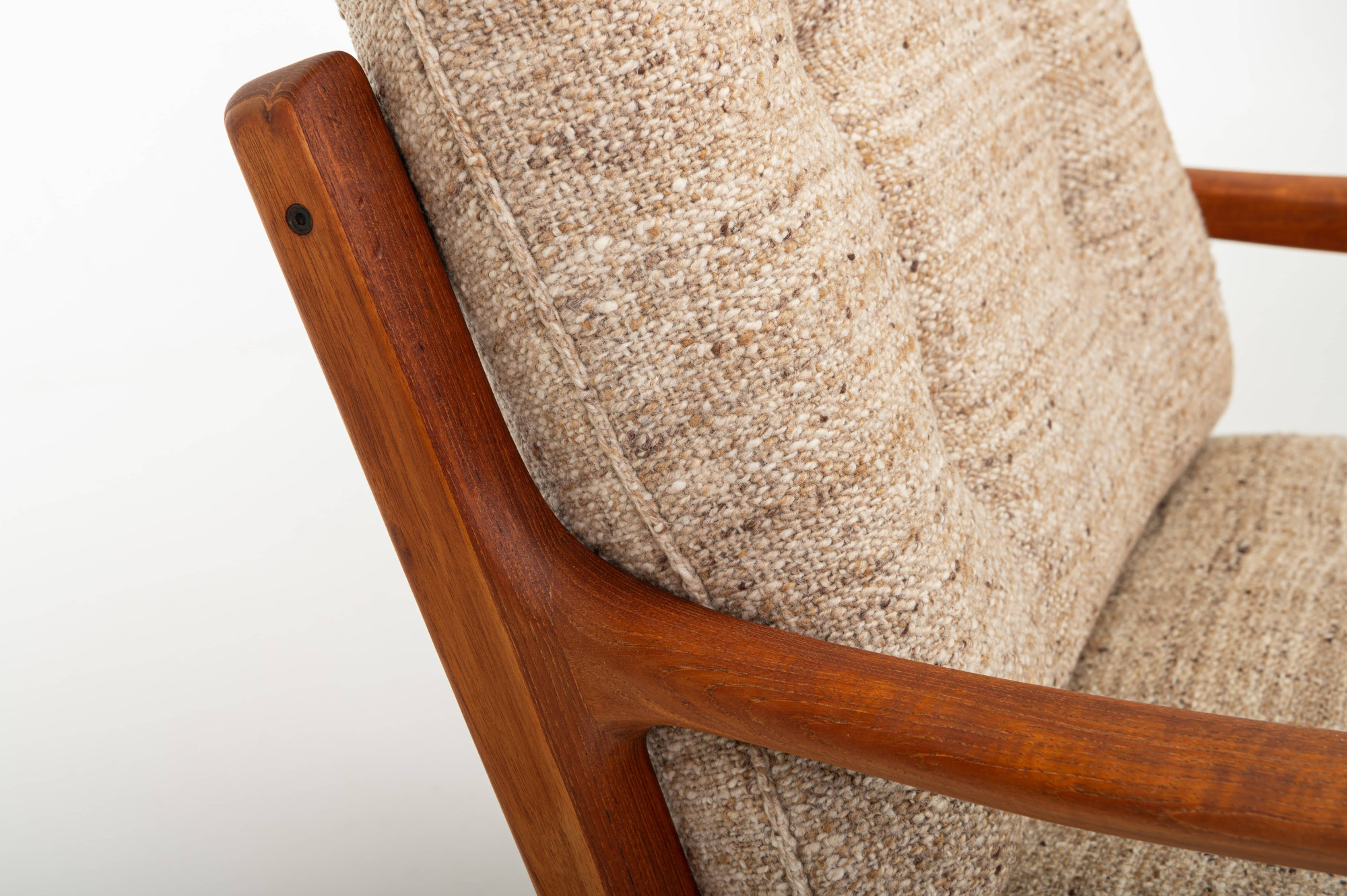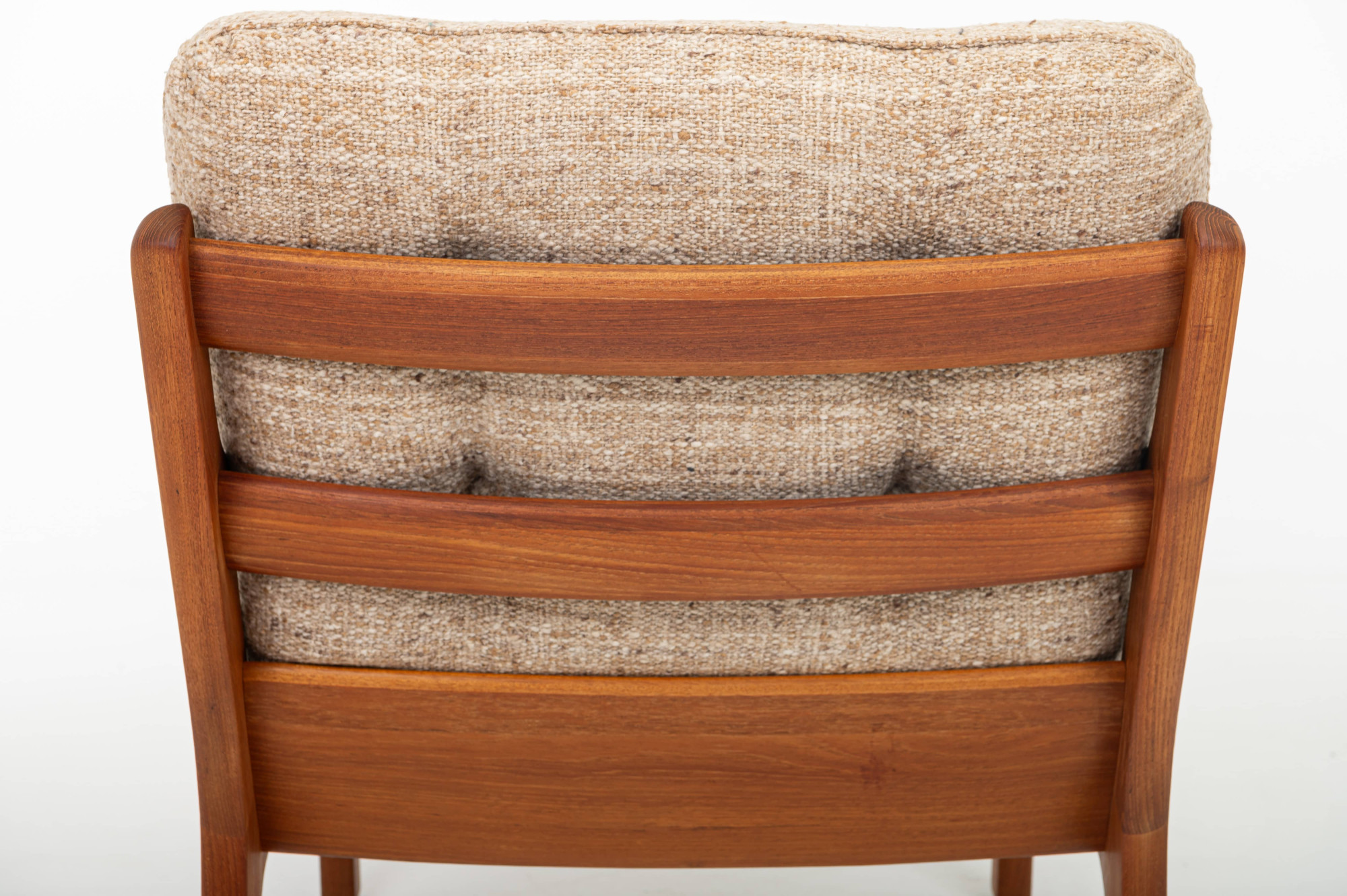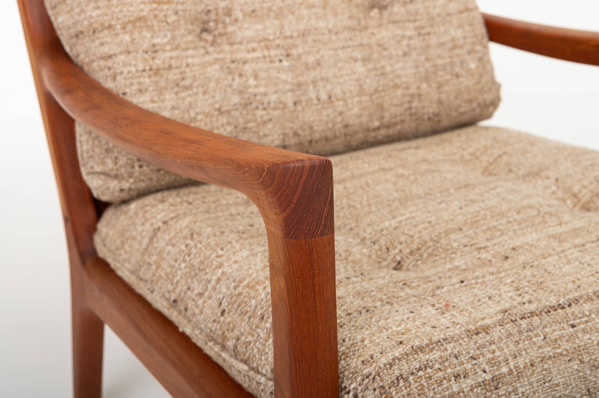 Pair of Danish vintage easy chairs designed by Professor Ole Wanscher for Cado Møbelfabrik, Denmark. The frame of the armchairs are in solid teak and the cushions are in beige wool. Very good condition and marked by the producer.