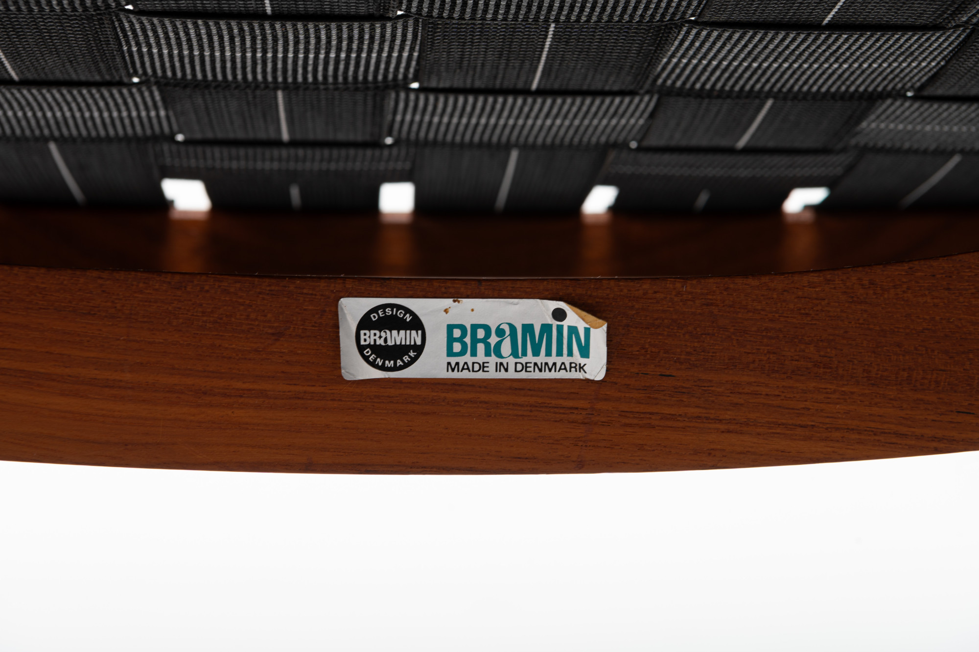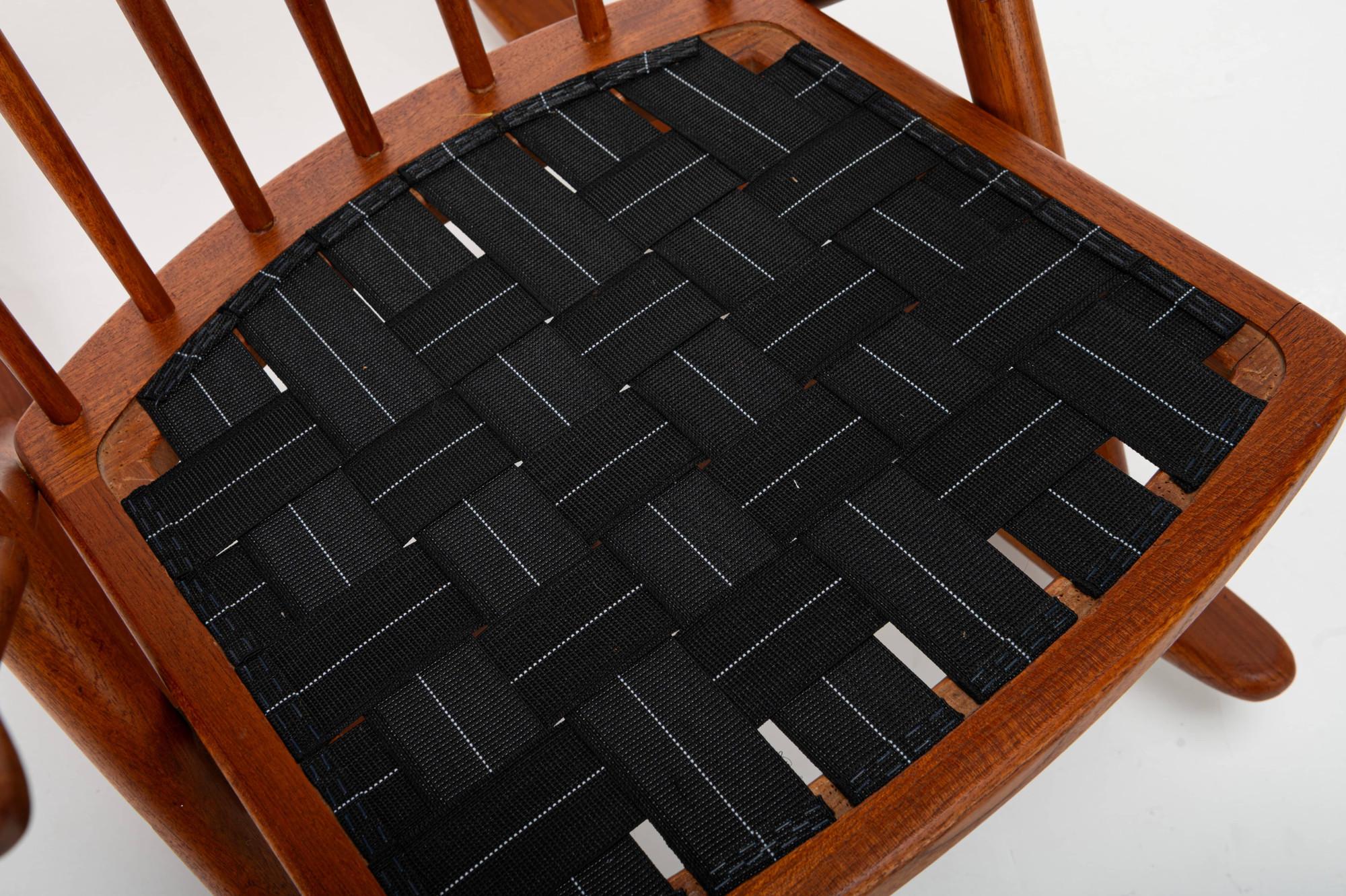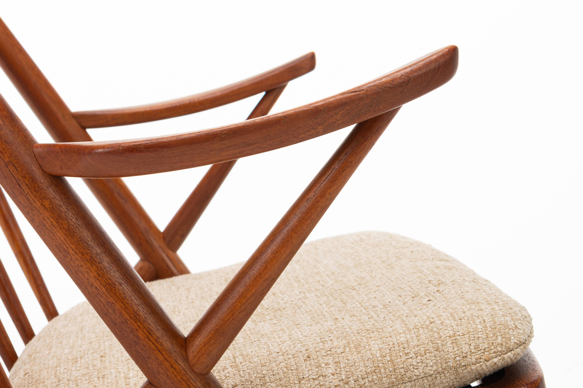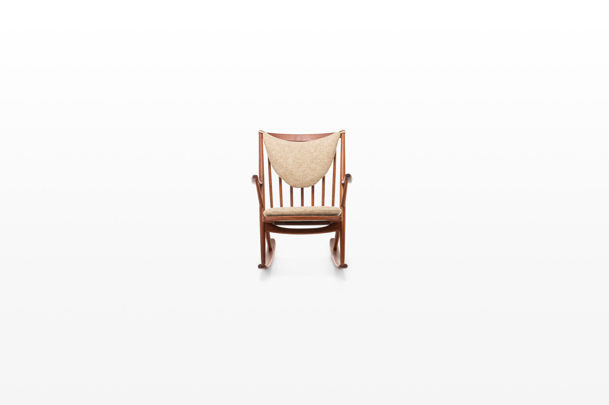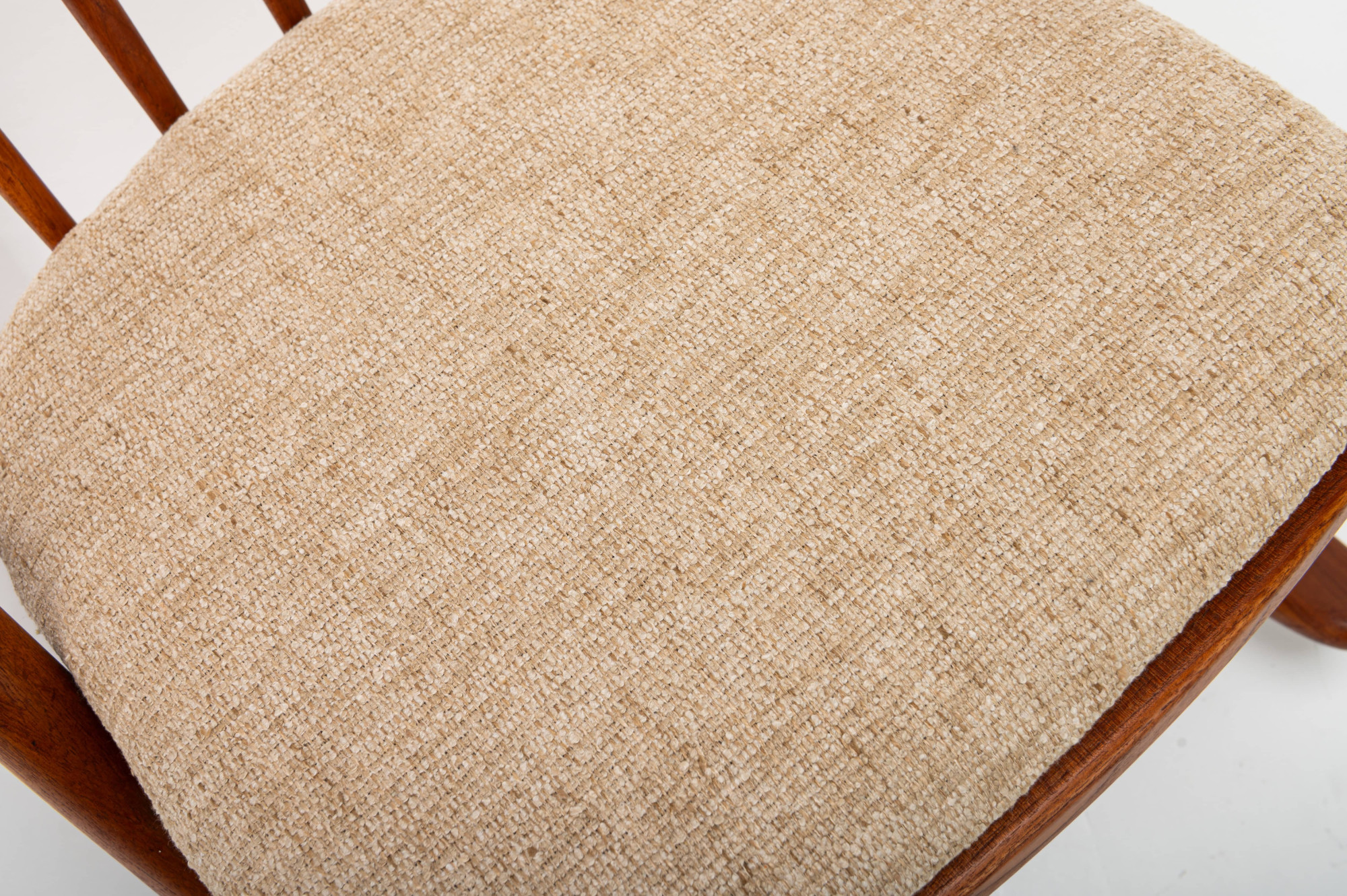 Danish vintage rocking chair designed as model '182' by Frank Reenskaug for Bramin in the 1960s. This chair has a teak and has been reupholstered in a beige fabric. the rocking chair is still in very good condition.