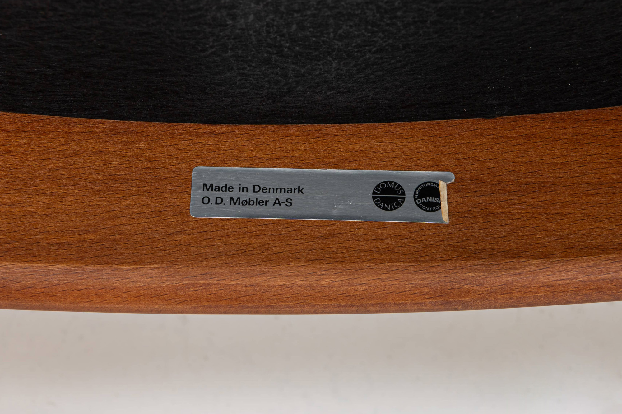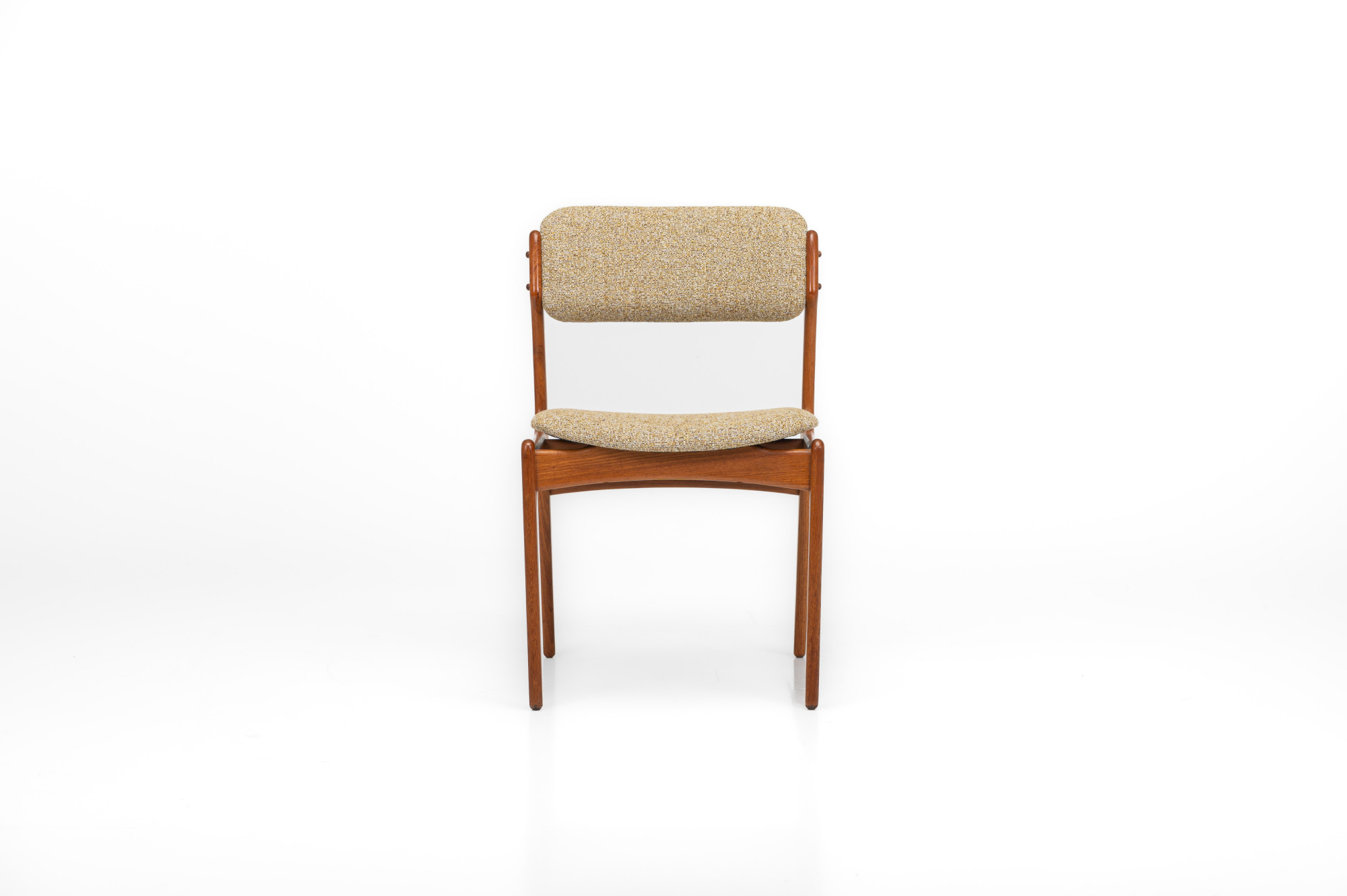 Set of ten 'Model 49' dining chairs designed by Erik Buch for Odense Maskinnedkeri, Denmark 1960s. The chairs have a teak frame and are in very good condition. The seats and backrests have been reupholstered and have new foam filling. Marked by the producer.