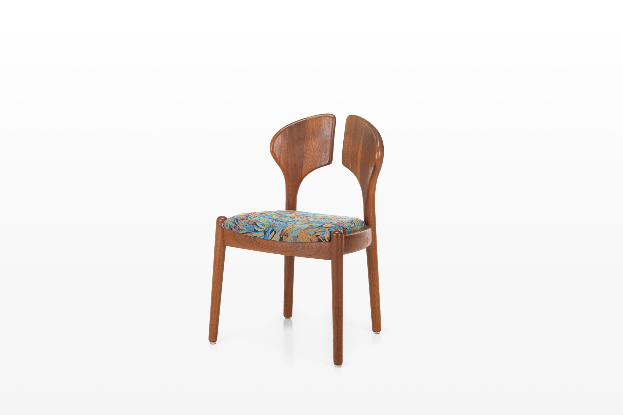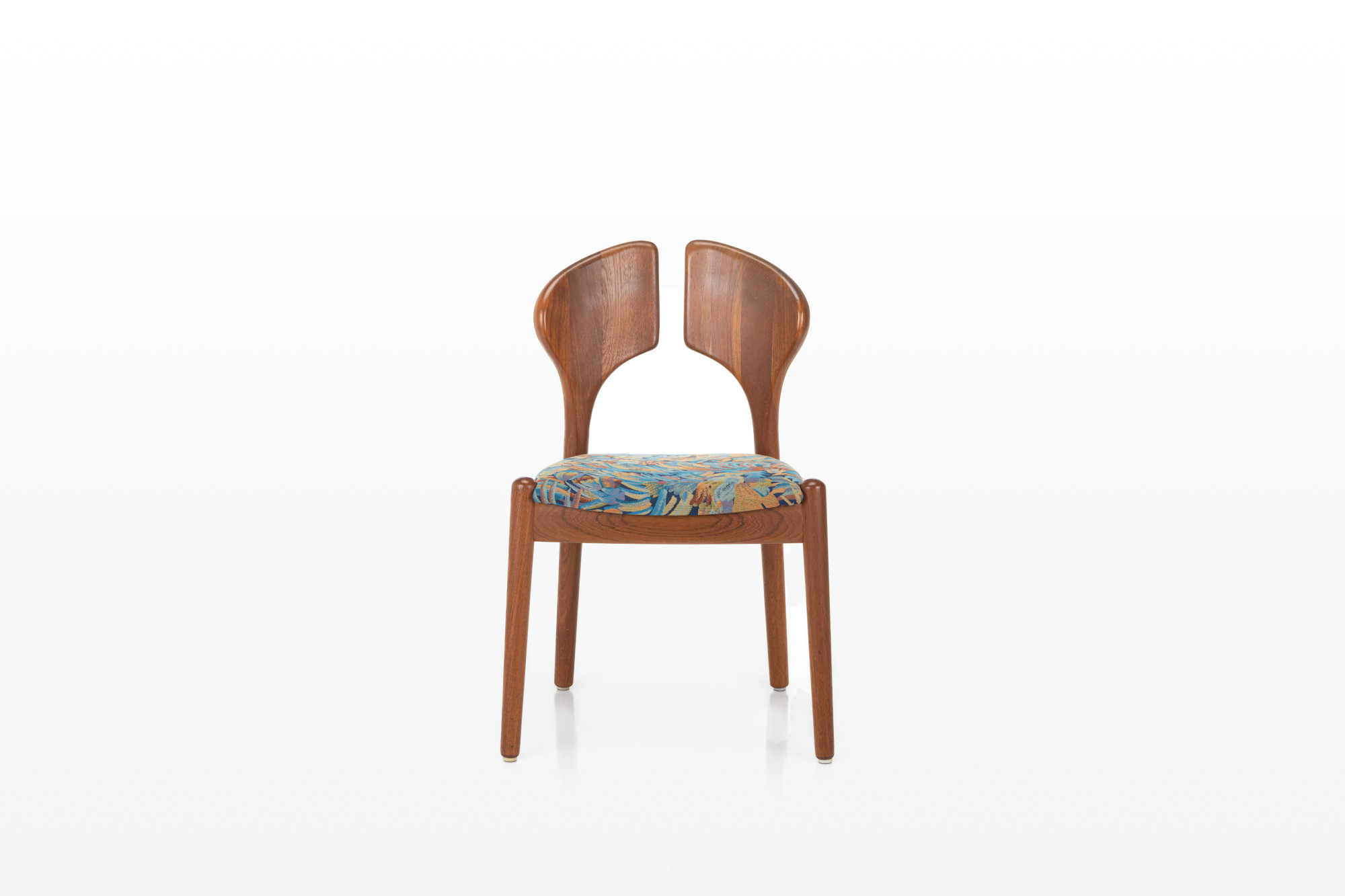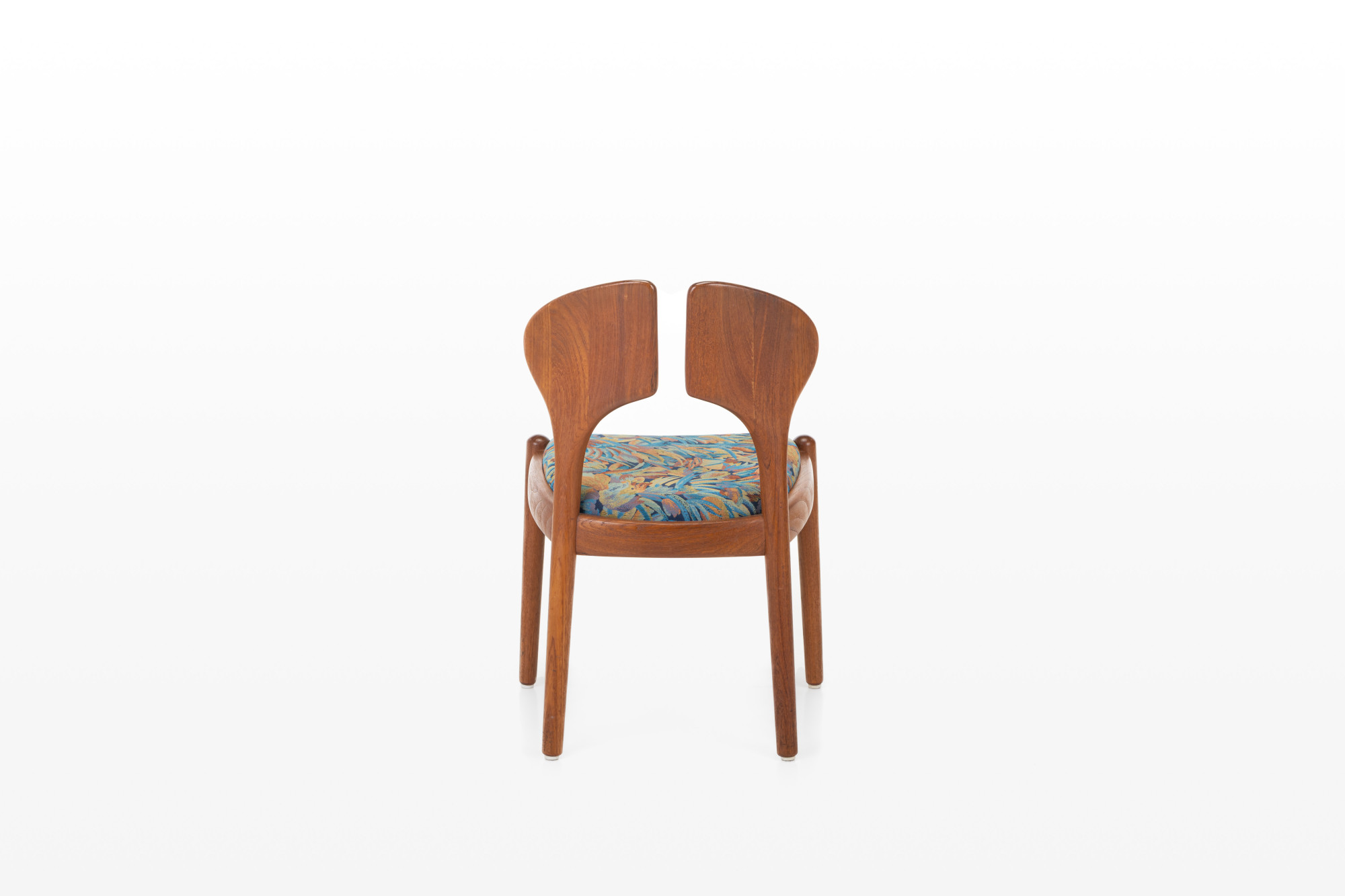 Set of 5 Danish vintage dining chairs. The chairs are made of solid teak wood, have a floral fabric and are in very good condition.