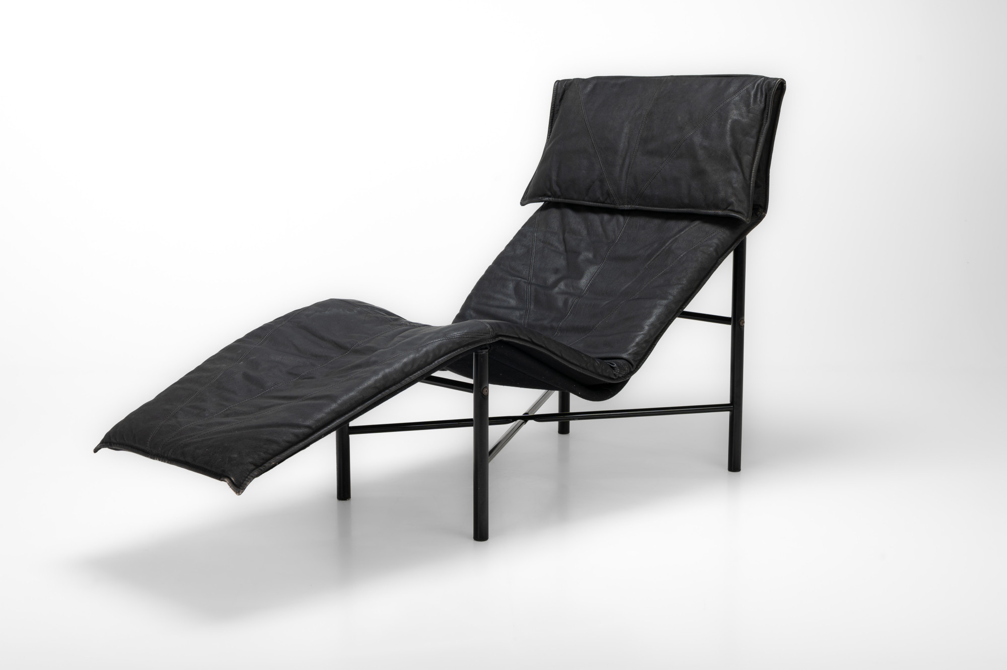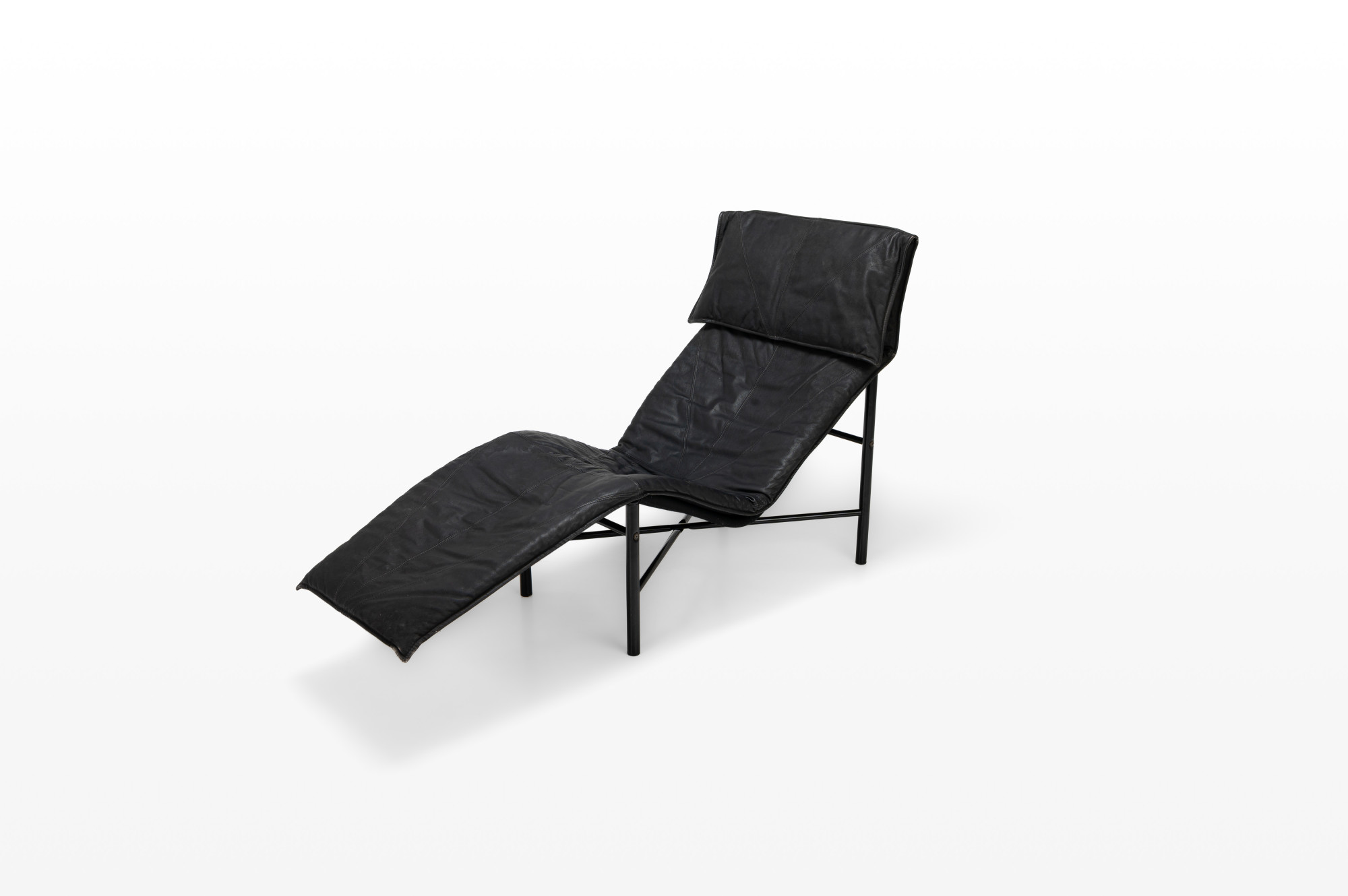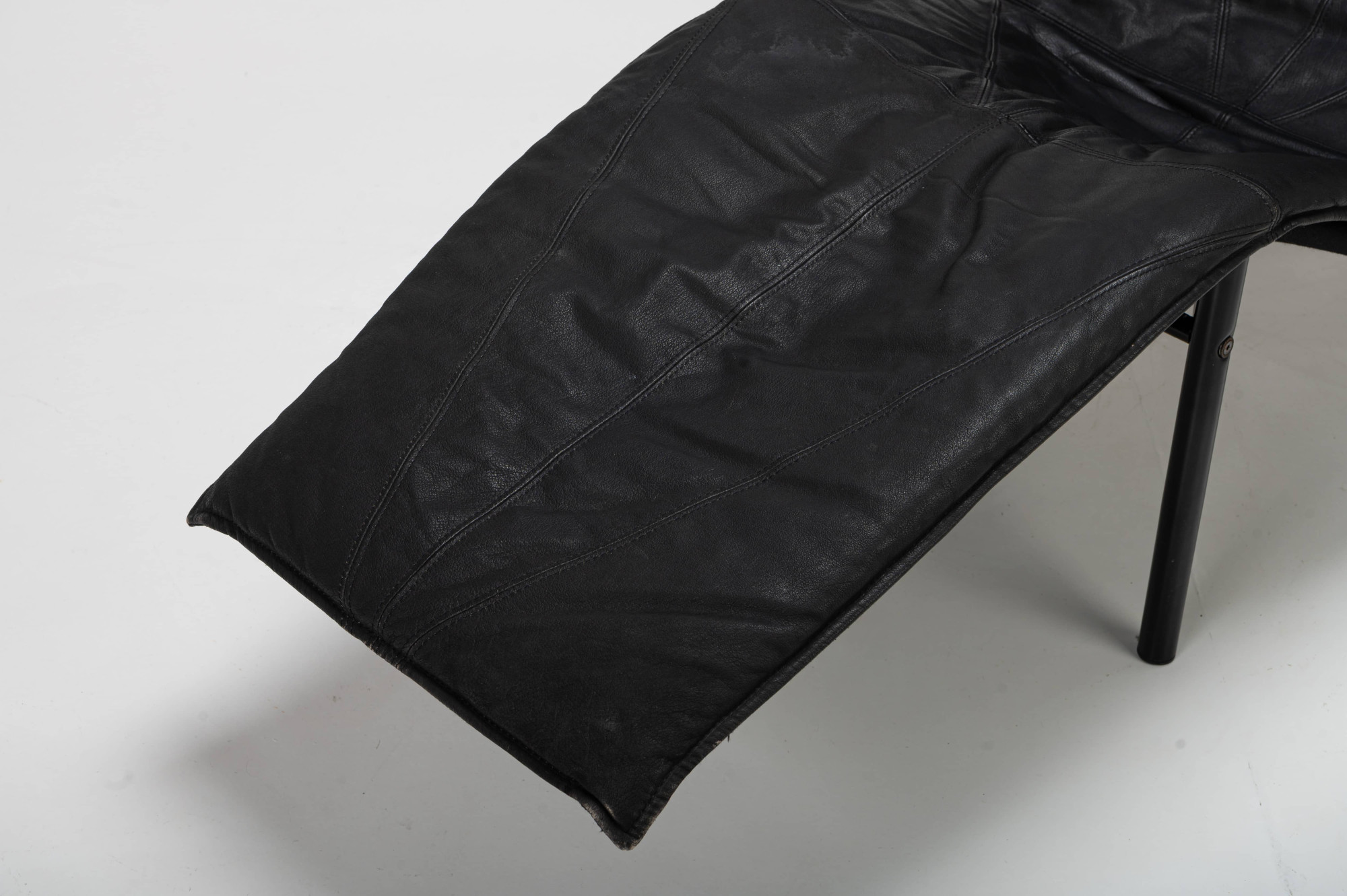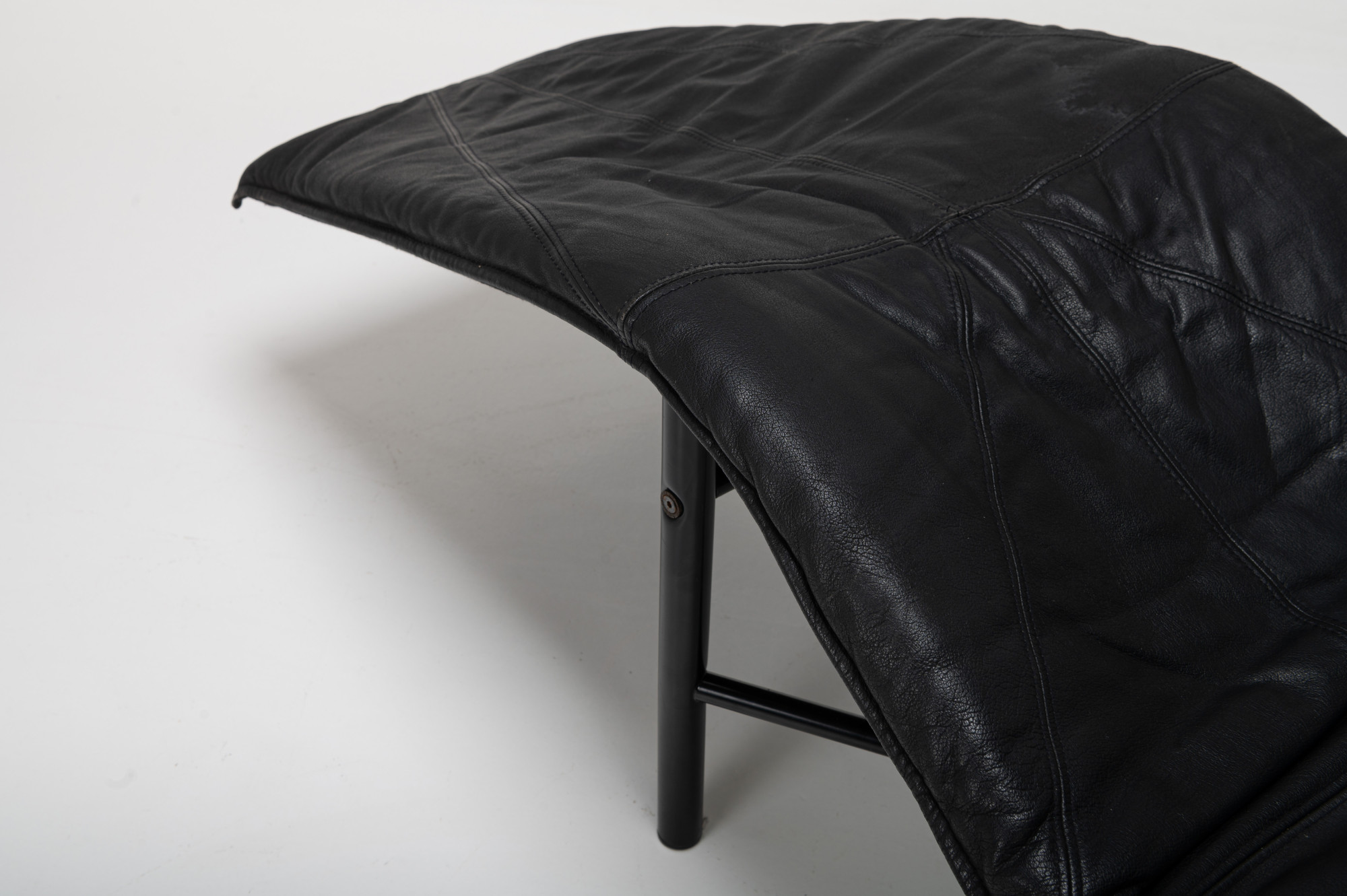 Super comfortable 'Skye' lounge chair by Tord Bjorklund for IKEA, 1980s. This lounge chair has a black steel base and a dark grey/ black leather seat. The lounge chair is in very good and original condition.