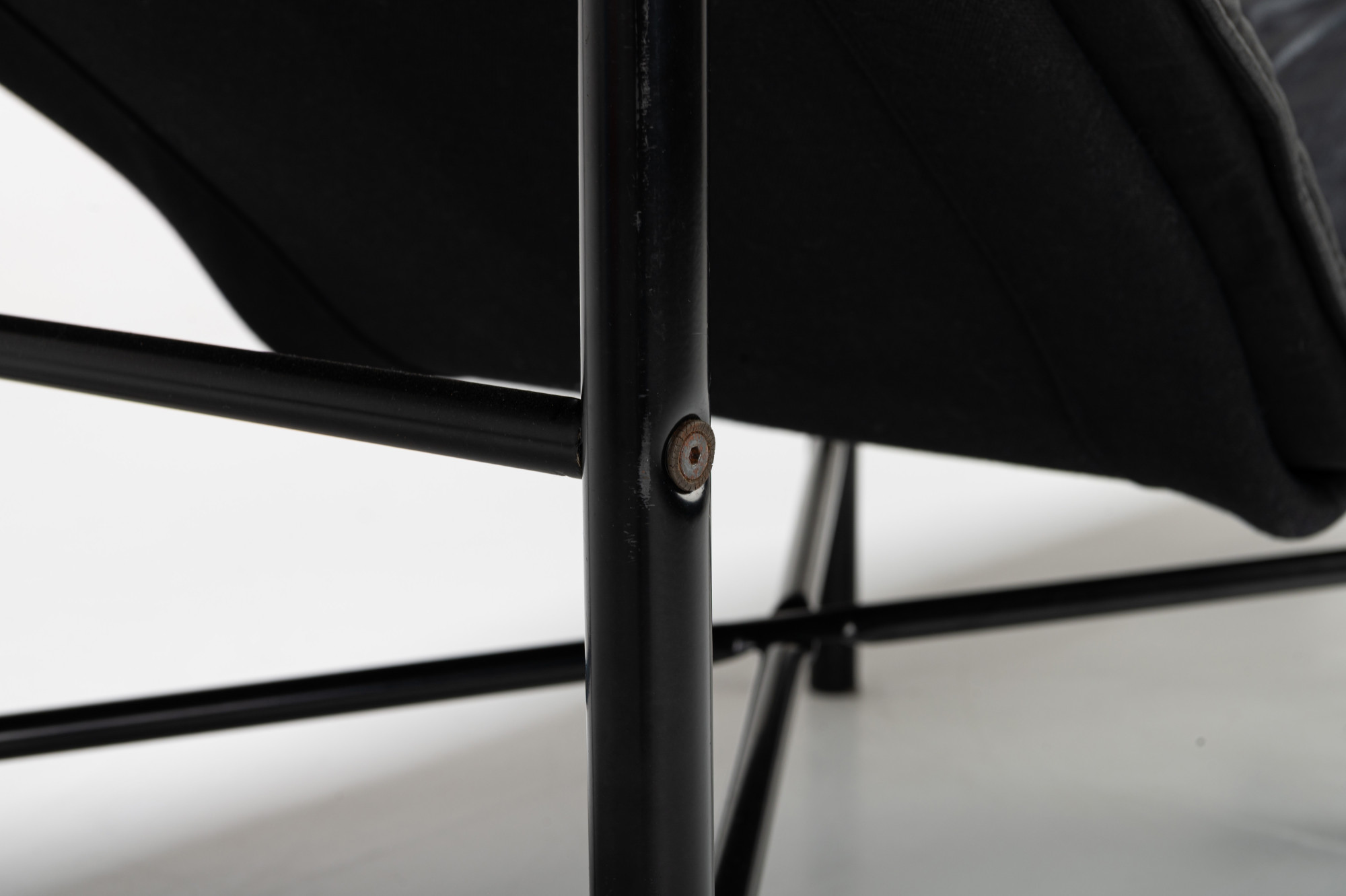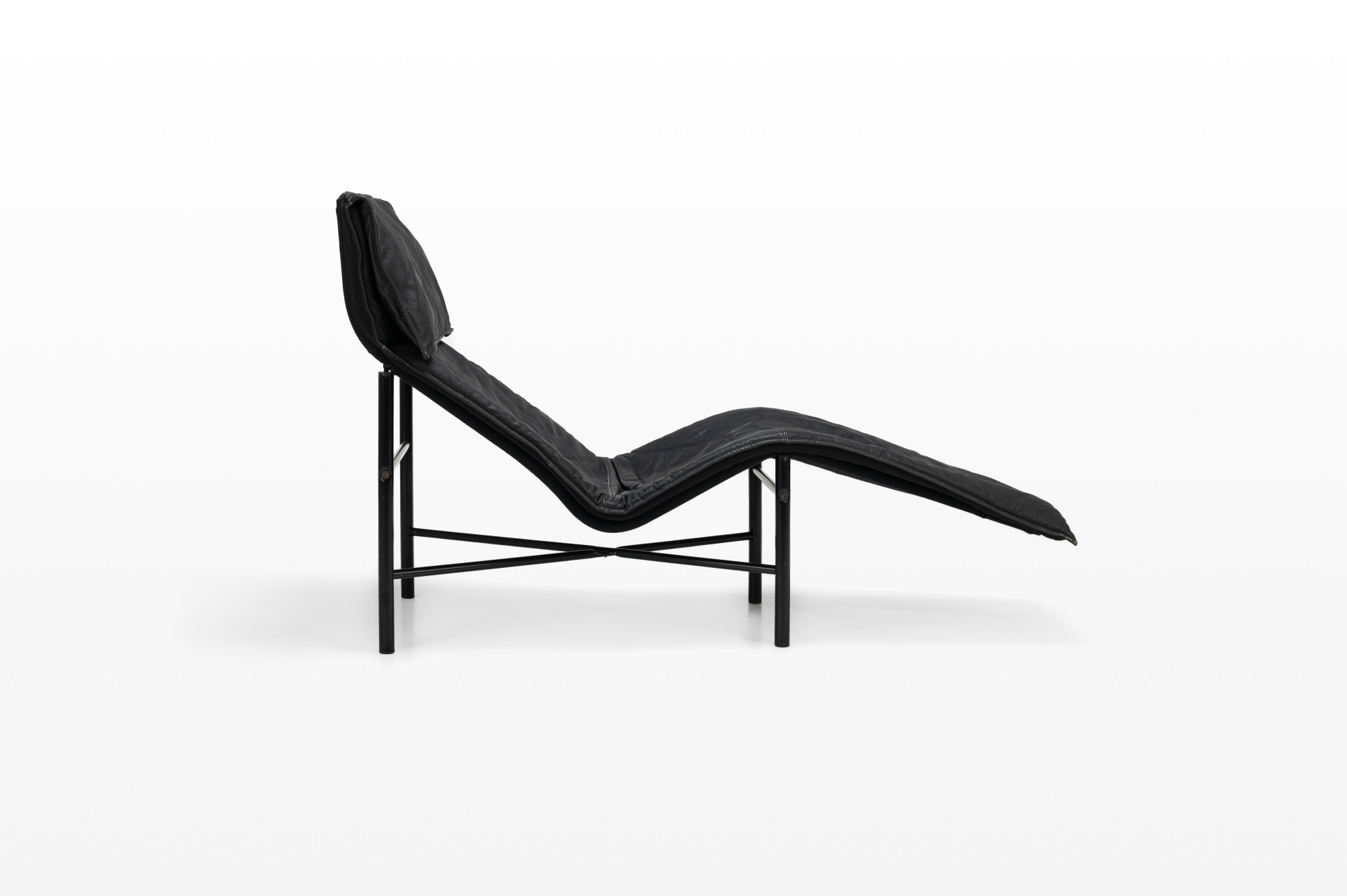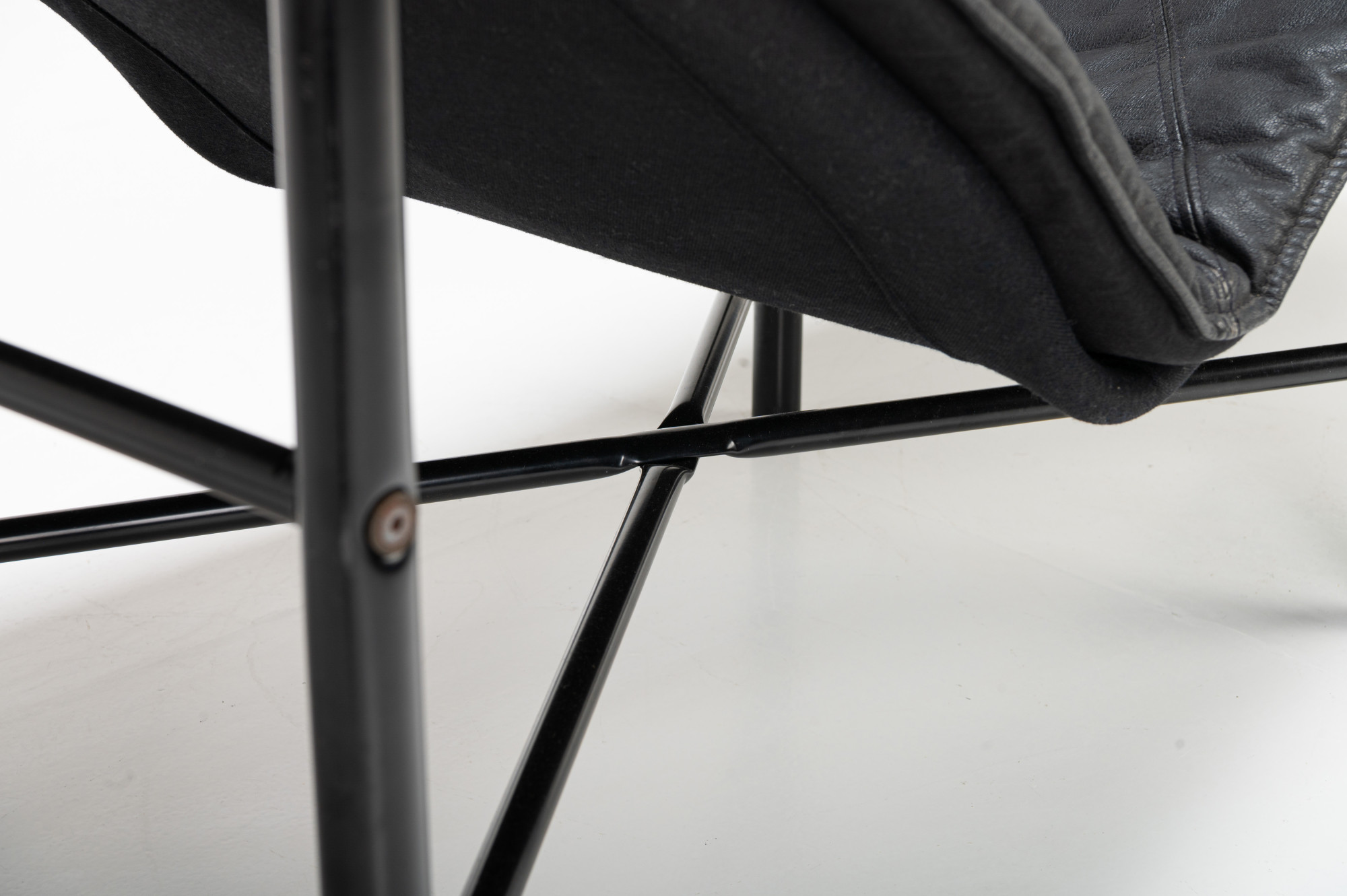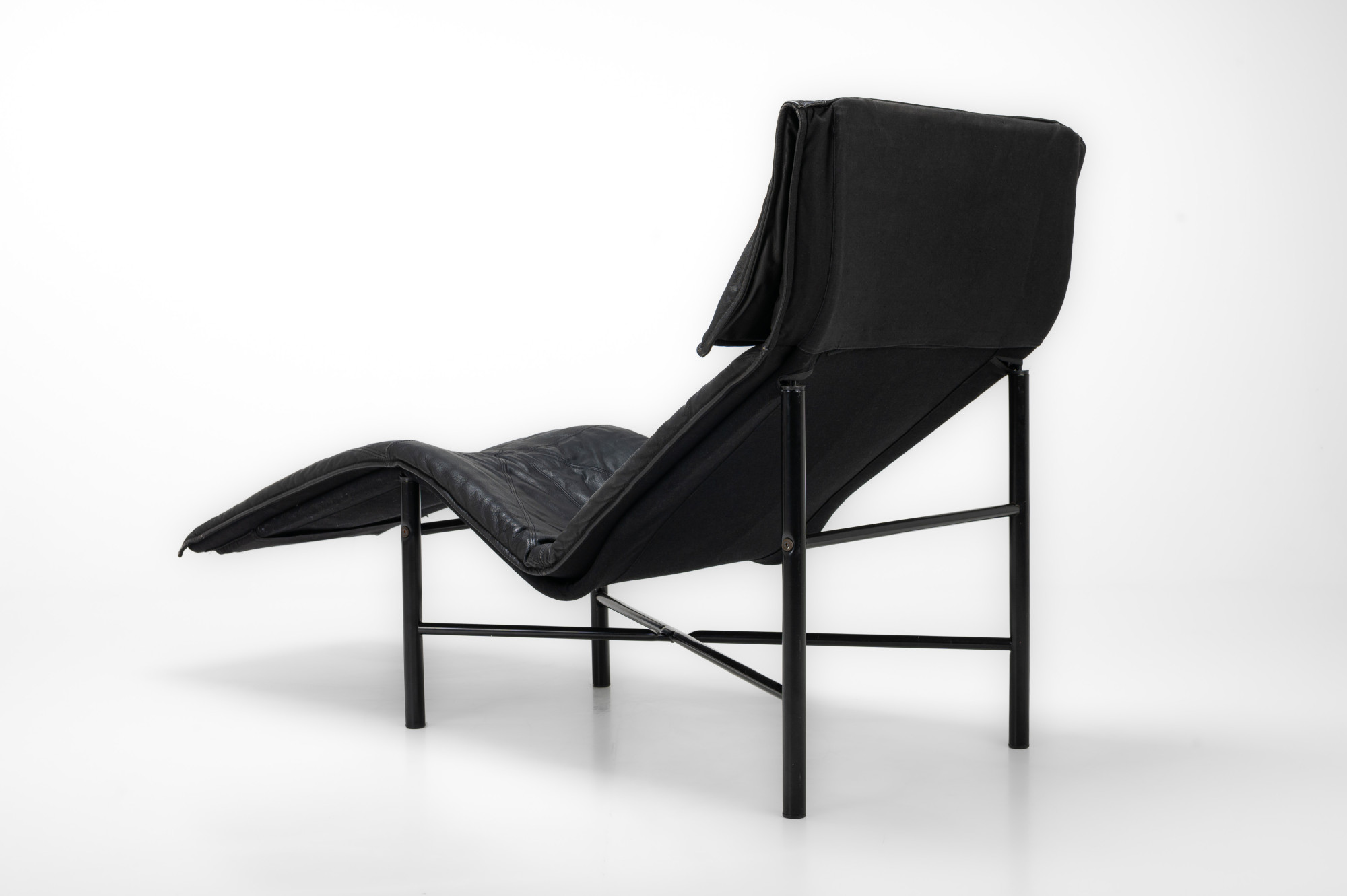 Super comfortable 'Skye' lounge chair by Tord Bjorklund for IKEA, 1980s. This lounge chair has a black steel base and a dark grey/ black leather seat. The lounge chair is in very good and original condition.