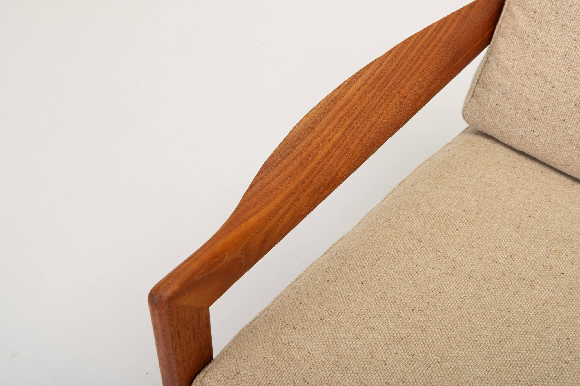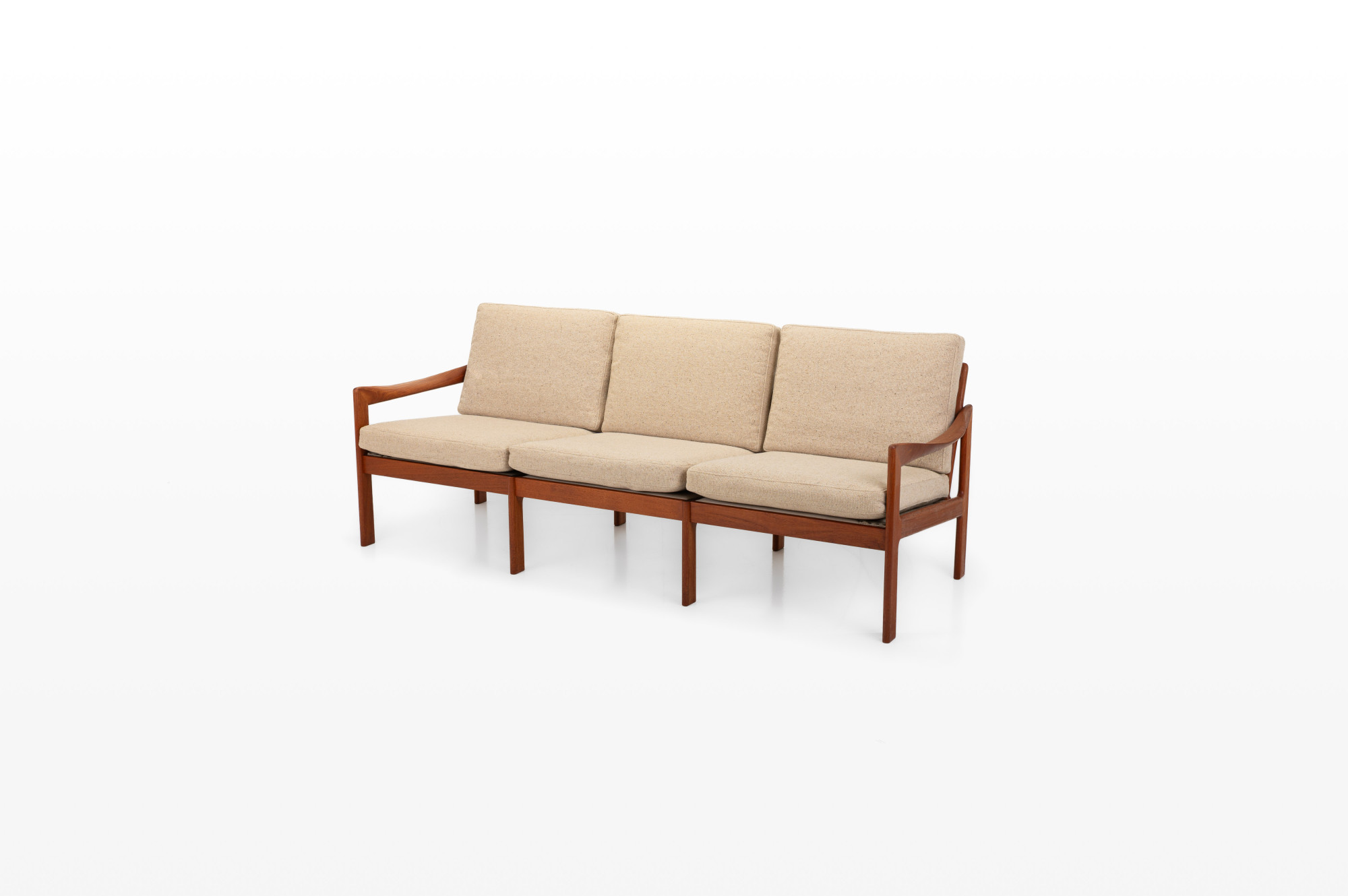 Vitage sofa designed by Illum Wikkelsø for Niels Eilersen, Denmark 1960s. The sofa has a teak frame and the cushions have a cream beige fabric. The sofa is in great condition.