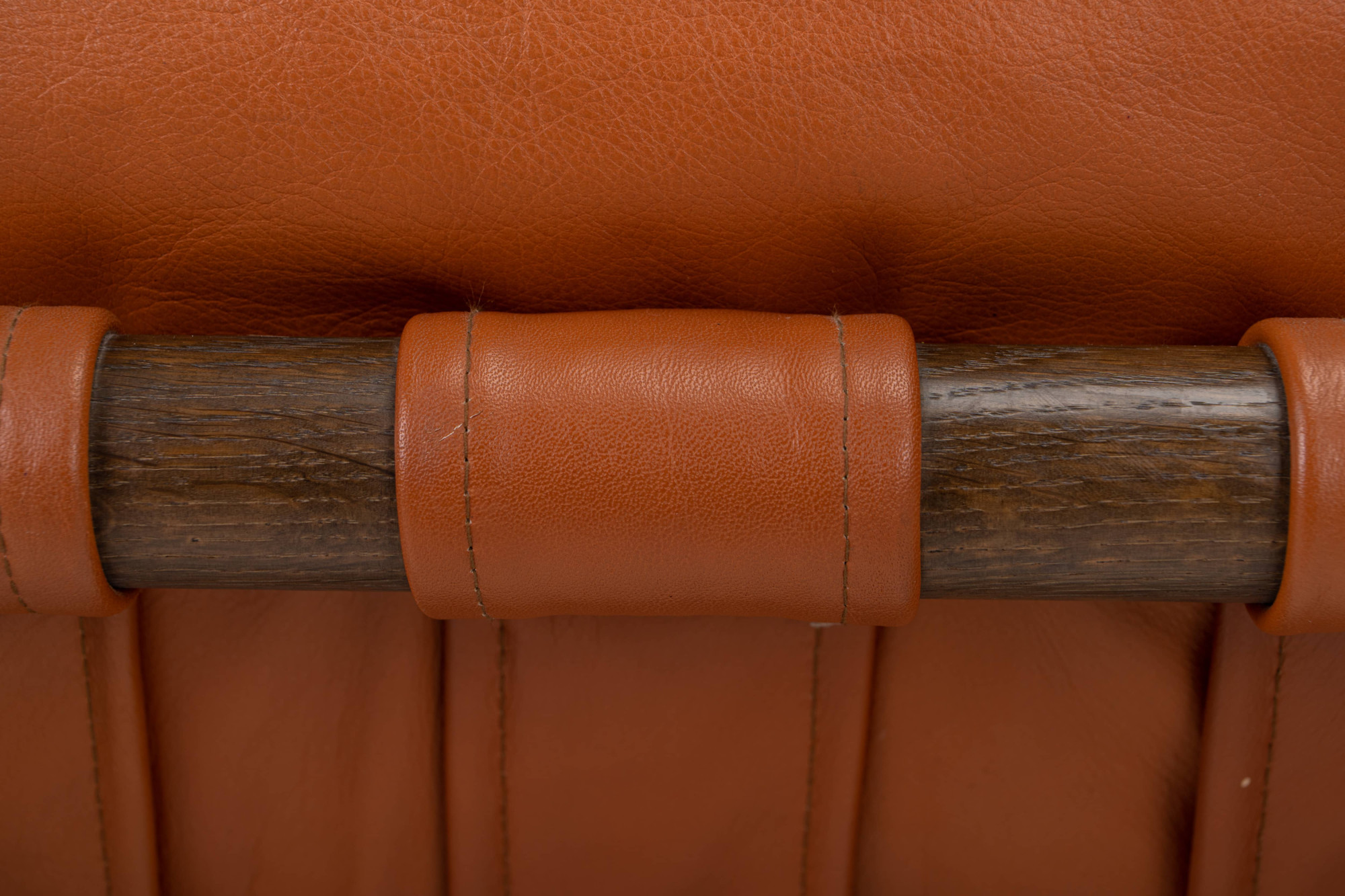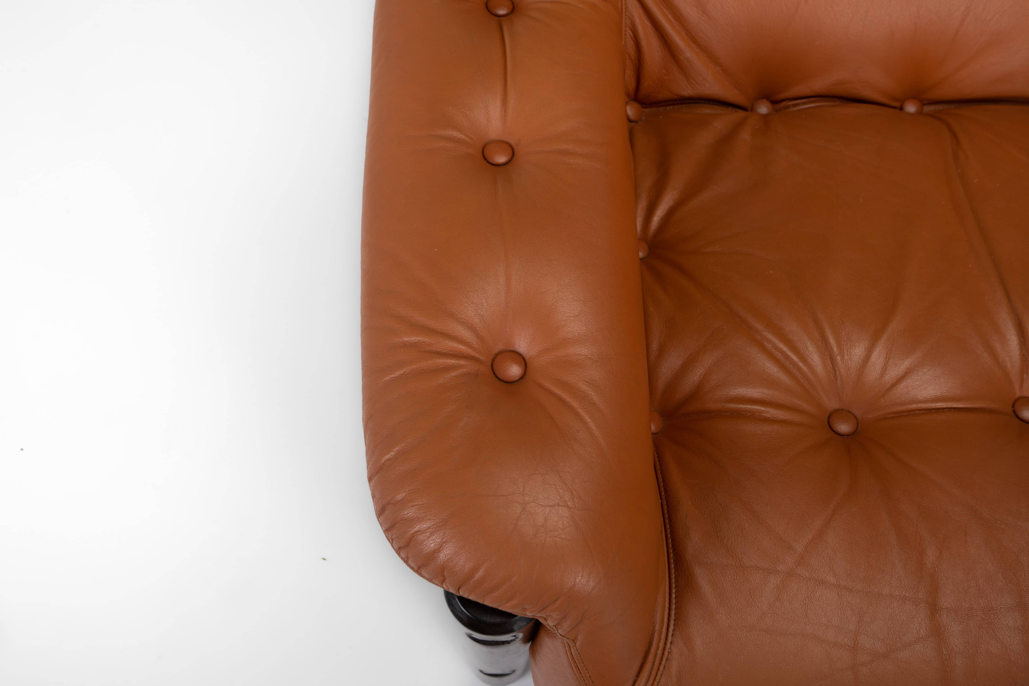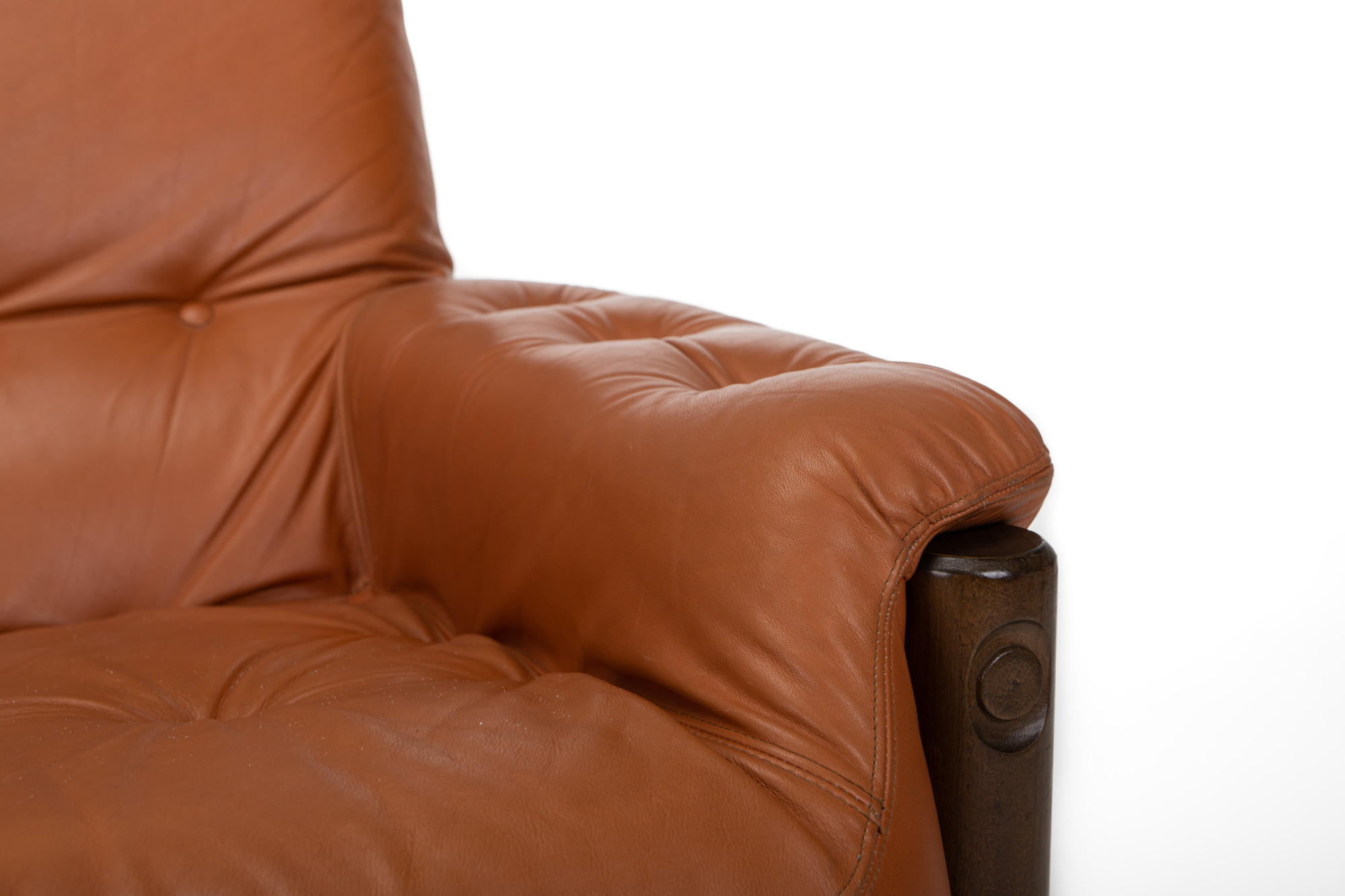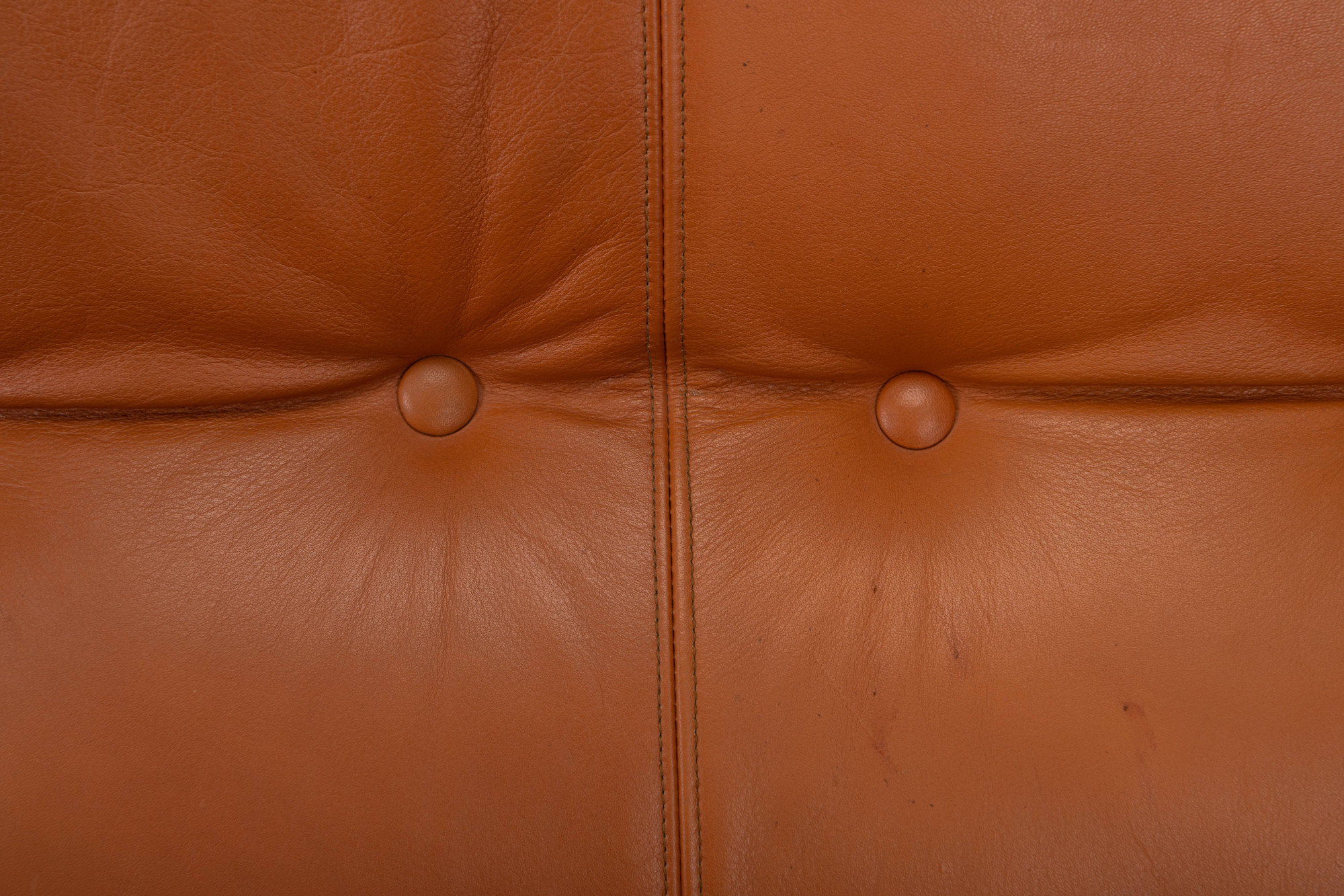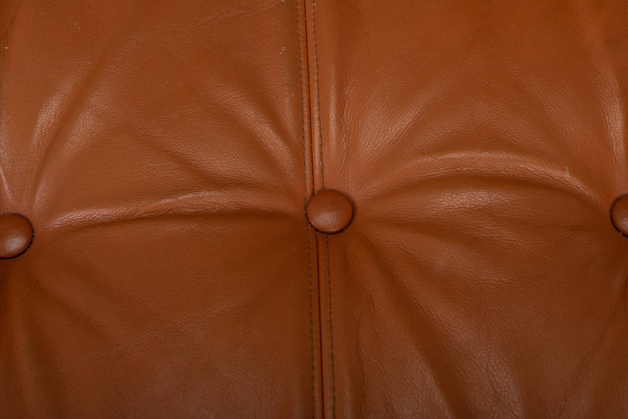 Brazilian vintage two-seater sofa with the original cognac leather upholstery. The sofa is in very good condition. There is also a matching three-seater and lounge chair available.
