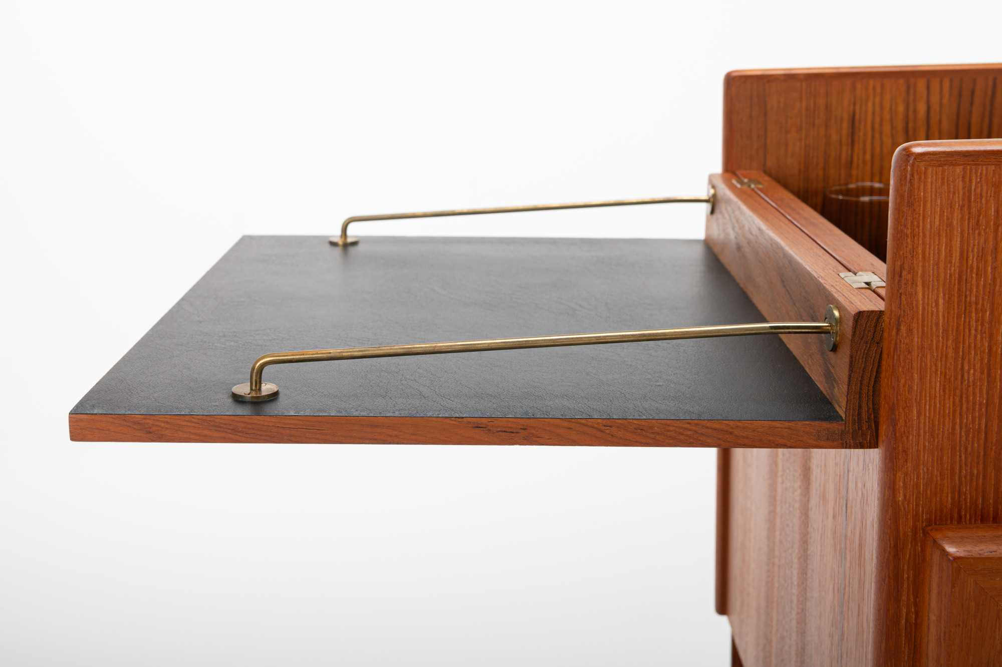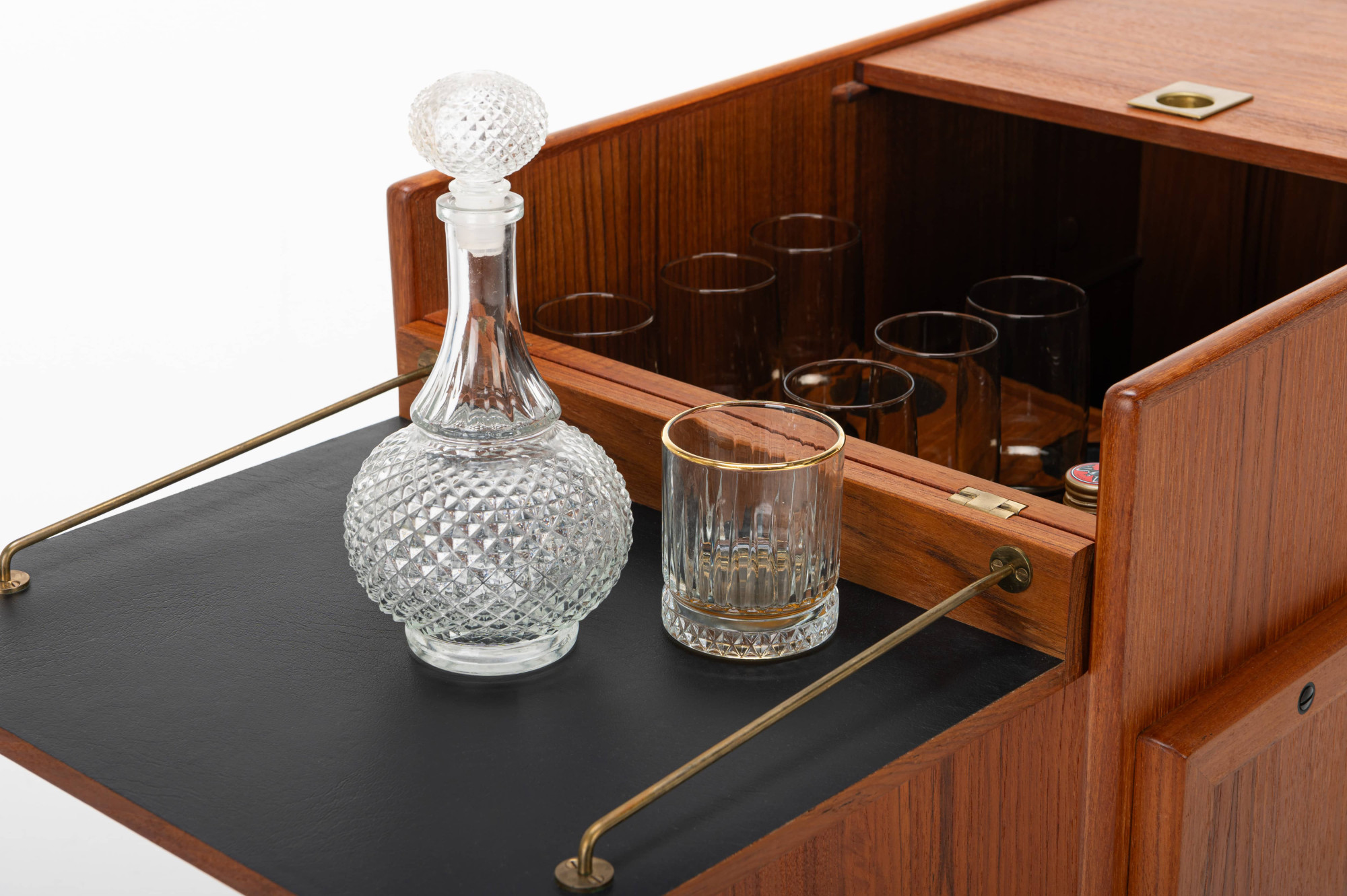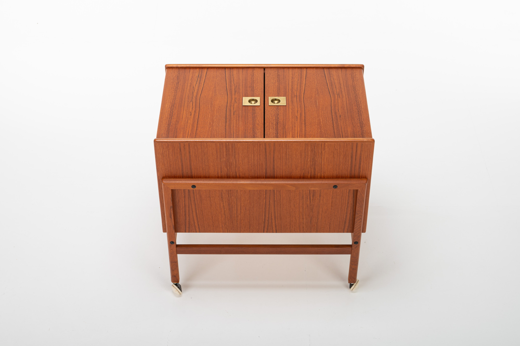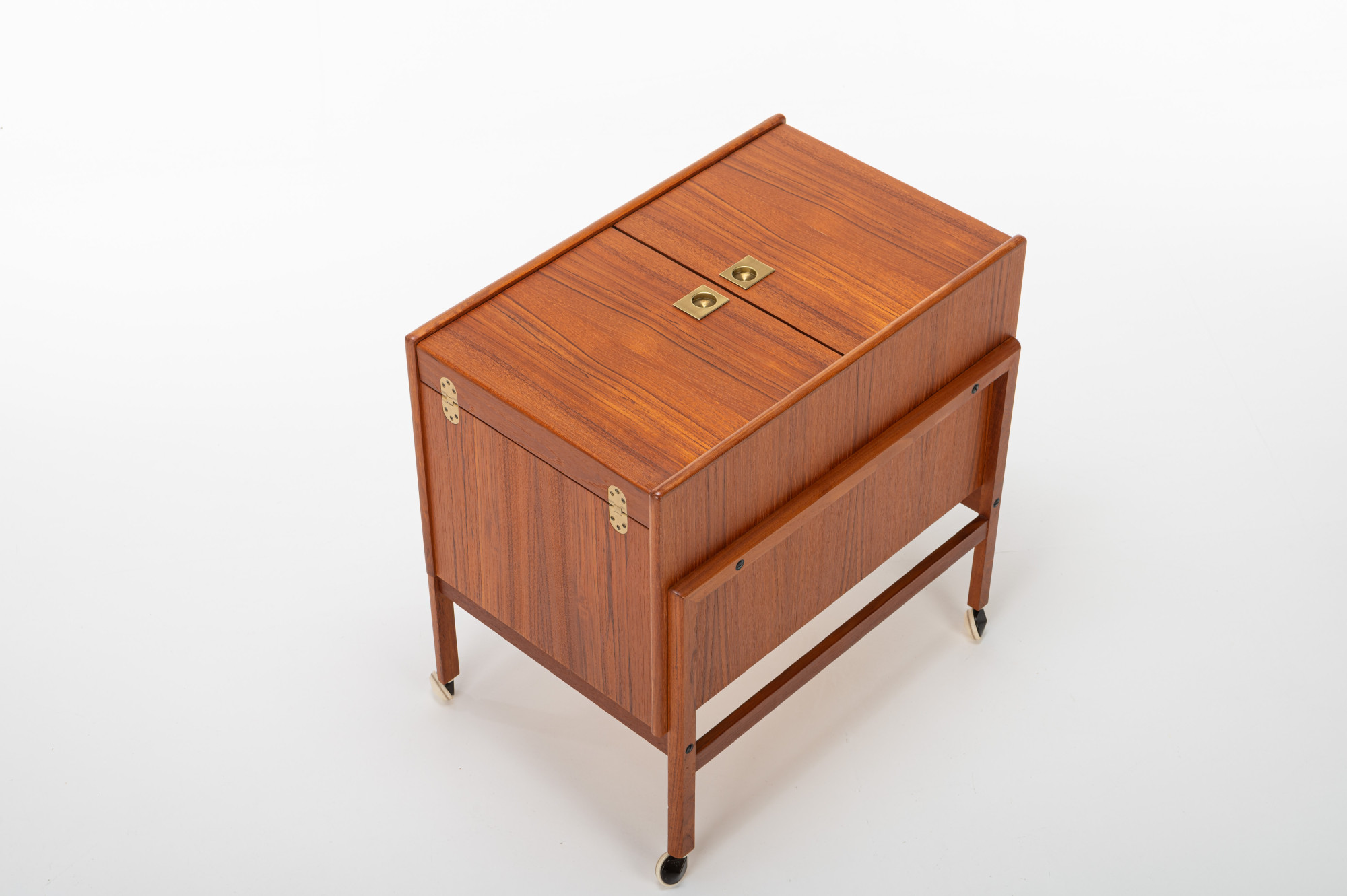 This vintage Danish barcart trolley, designed by Andreas Hansen for Arrebø Mobler, is a classic piece of mid-century design. It featureas place for a lot of glasses and bottles. Perfect for you cocktail evening. This piece is made of teak wood and brass handles.