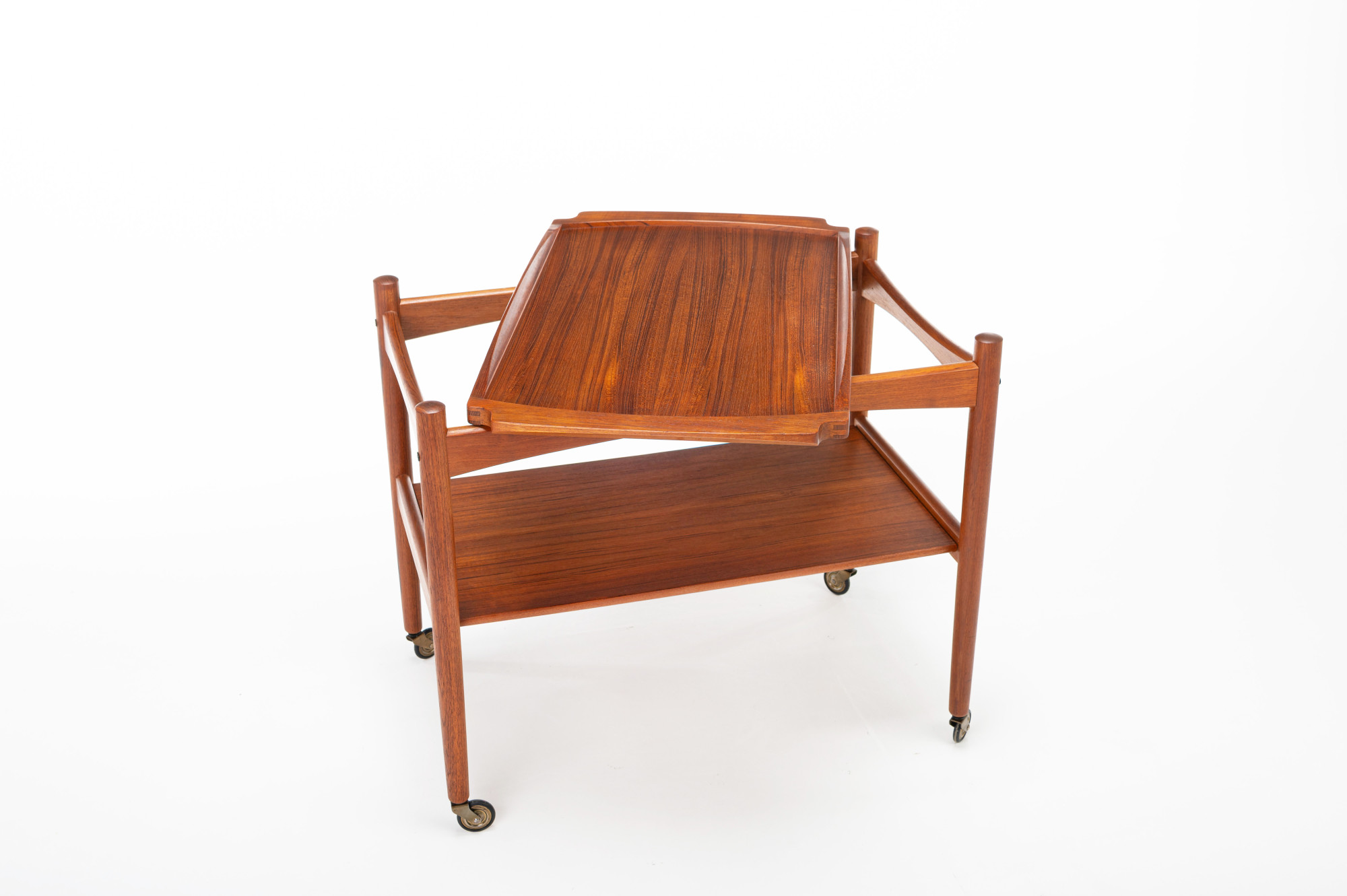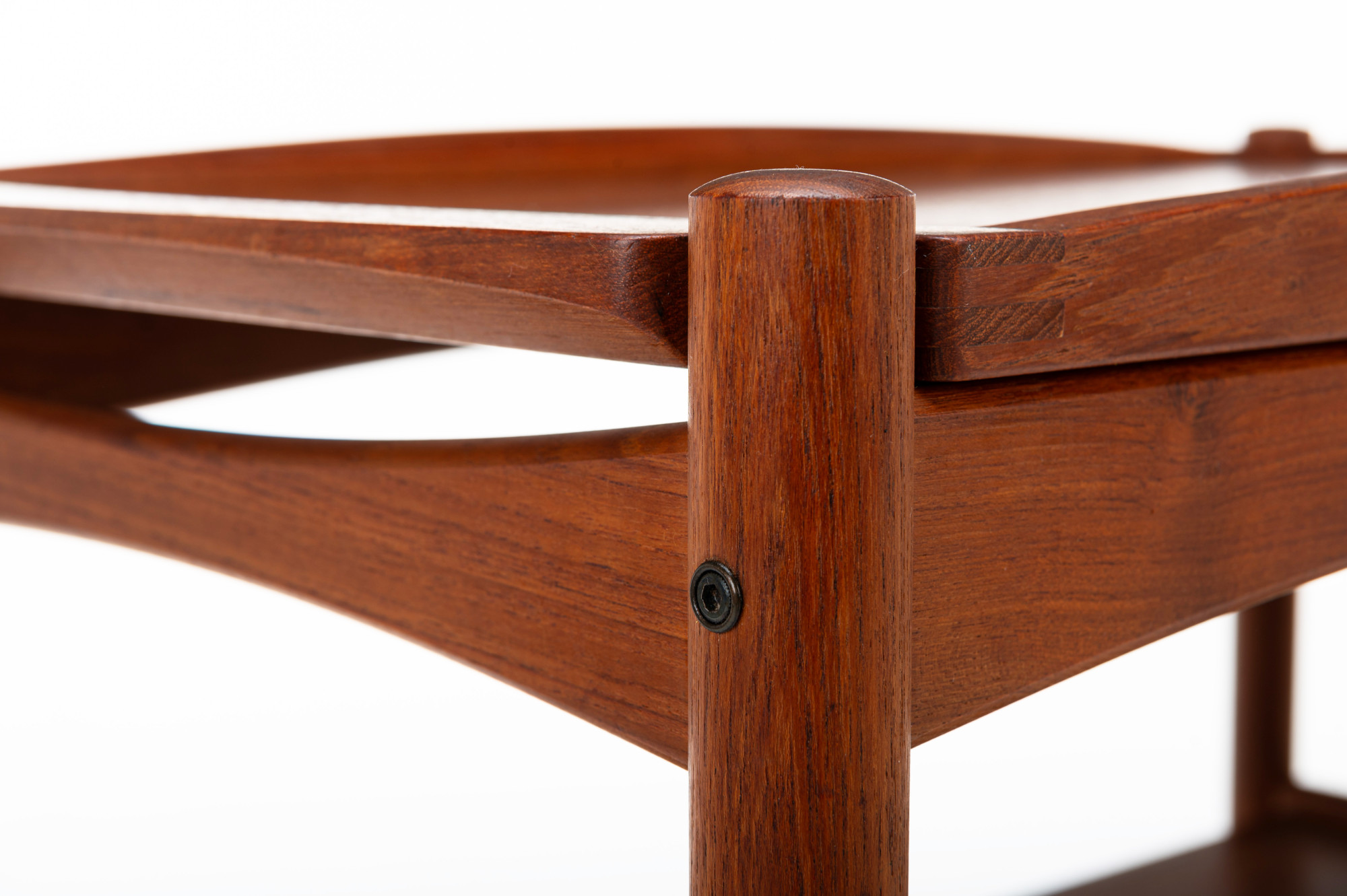 This vintage Danish teak serving trolley, designed by Poul Hundevad for Hundevad & Co., is a classic piece of mid-century design. It features one storage drawer and remains in excellent condition, showcasing the timeless quality and craftsmanship of Danish furniture.