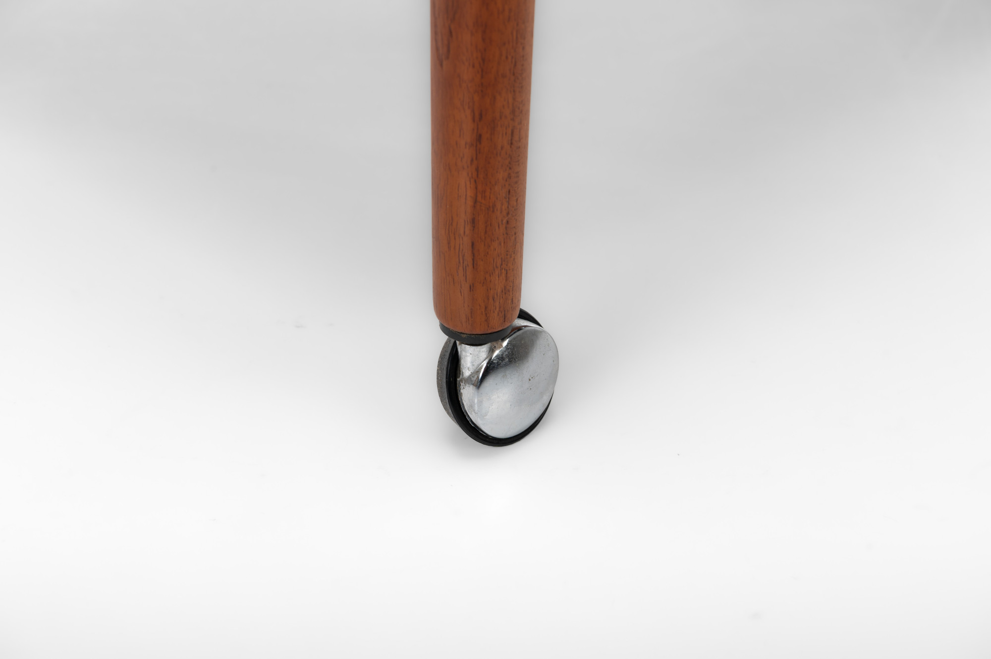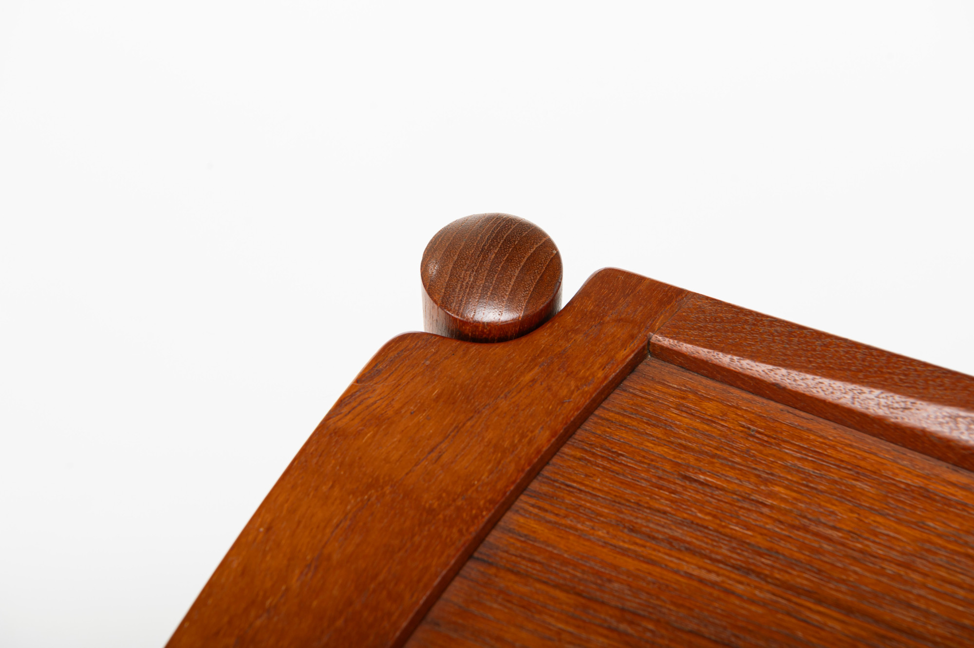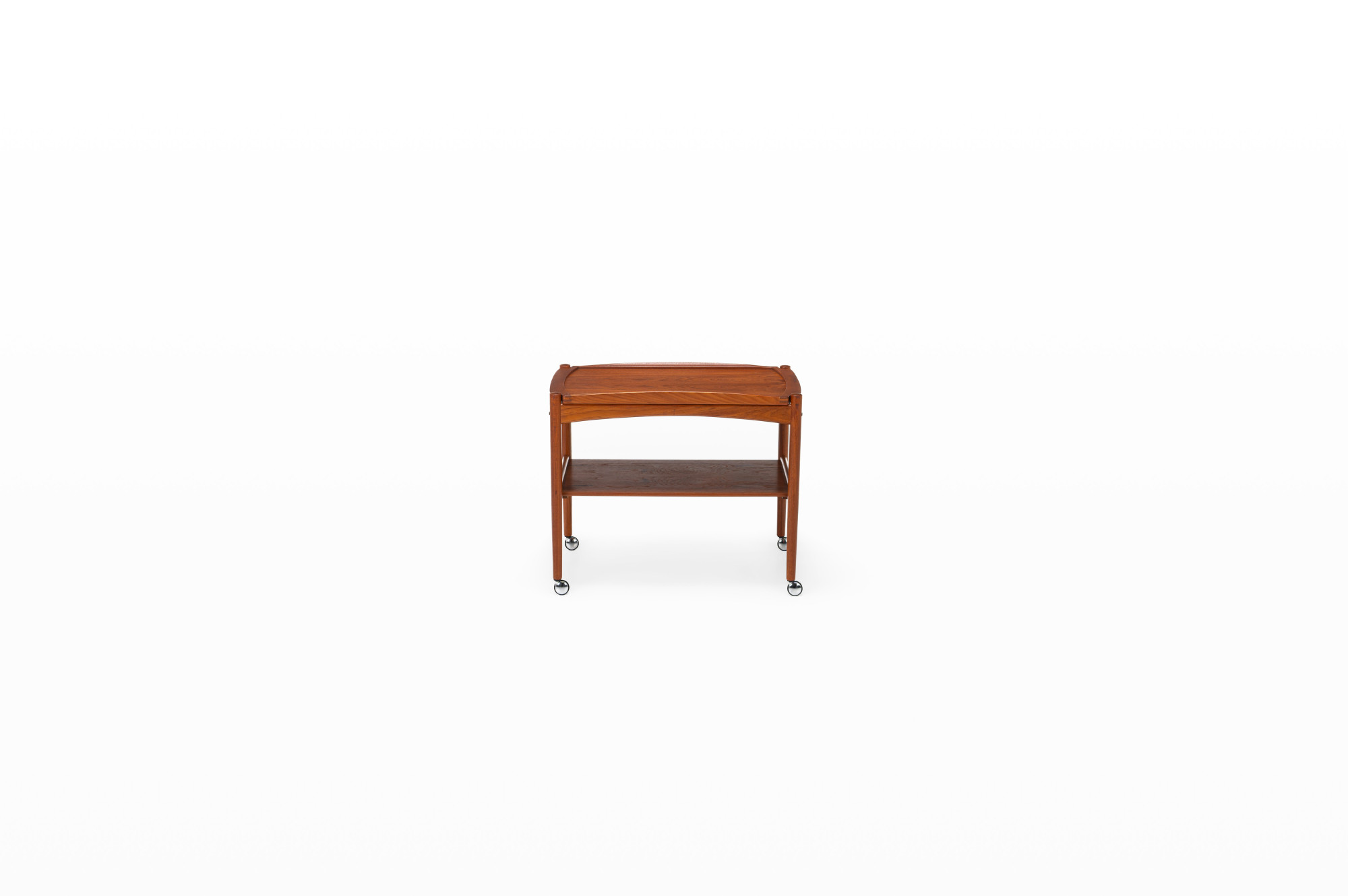 This vintage Danish teak serving trolley, designed by Poul Hundevad for Hundevad & Co., is a classic piece of mid-century design. It features one storage drawer and remains in excellent condition, showcasing the timeless quality and craftsmanship of Danish furniture.
