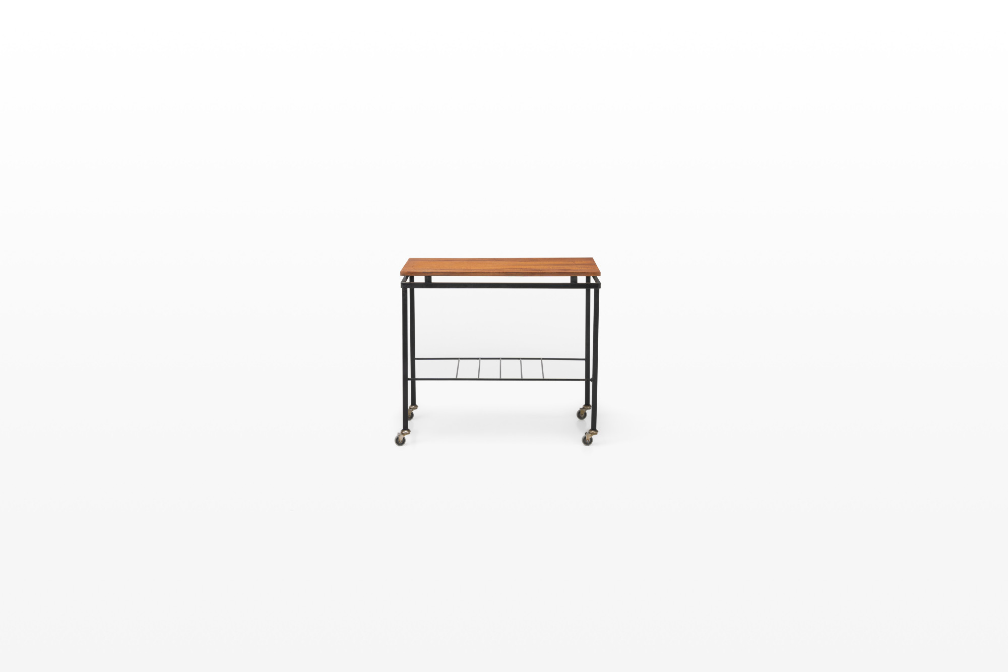 Vintage serving trolley in teak and metal. The trolley is still in very good condition.