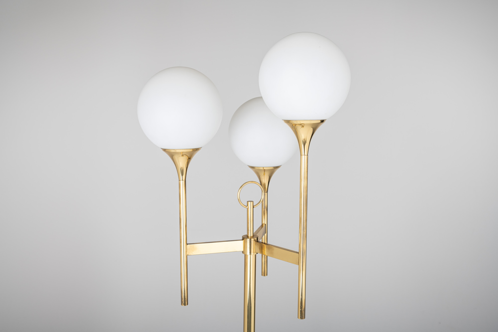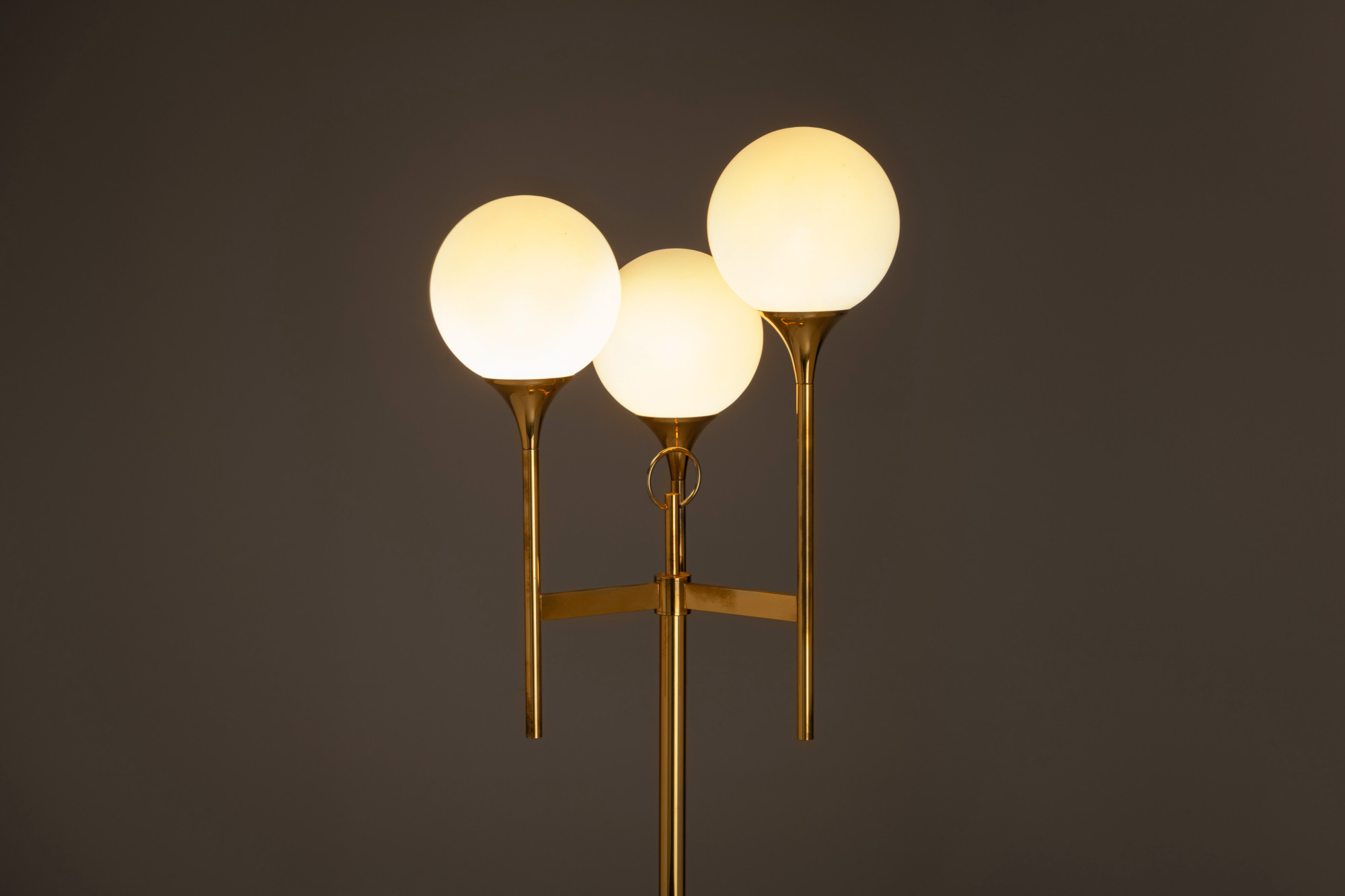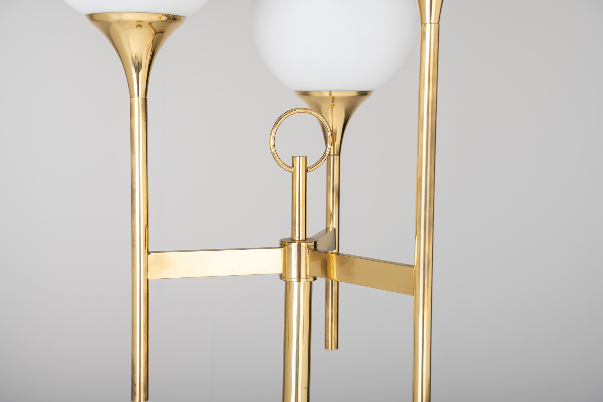 Vintage Italian brass floor lamp from the 1970s. The lamp was designed by Gaetano Sciolari and is in very good condition. The lamp is made of brass and has three light points.