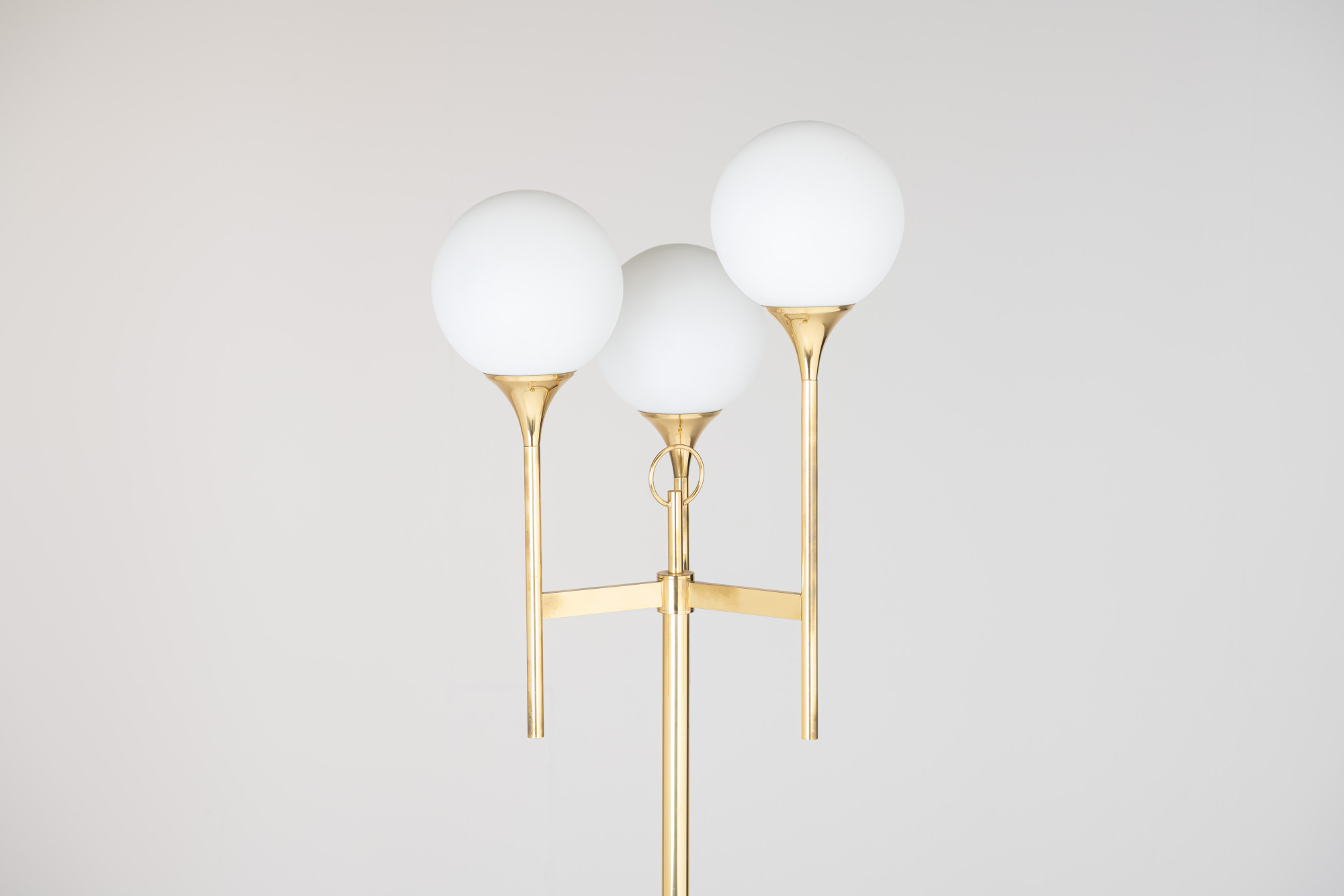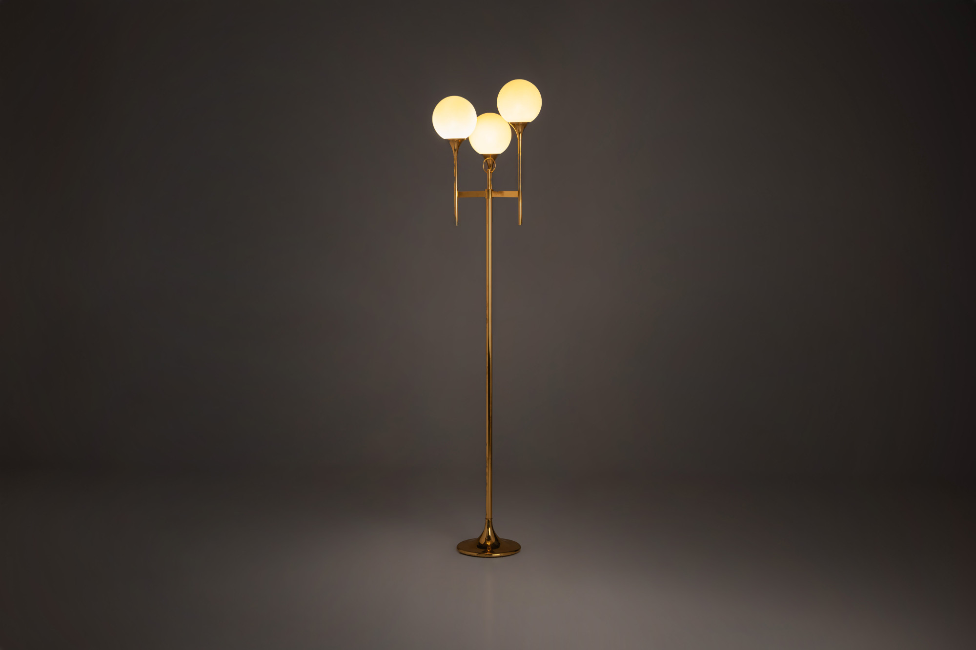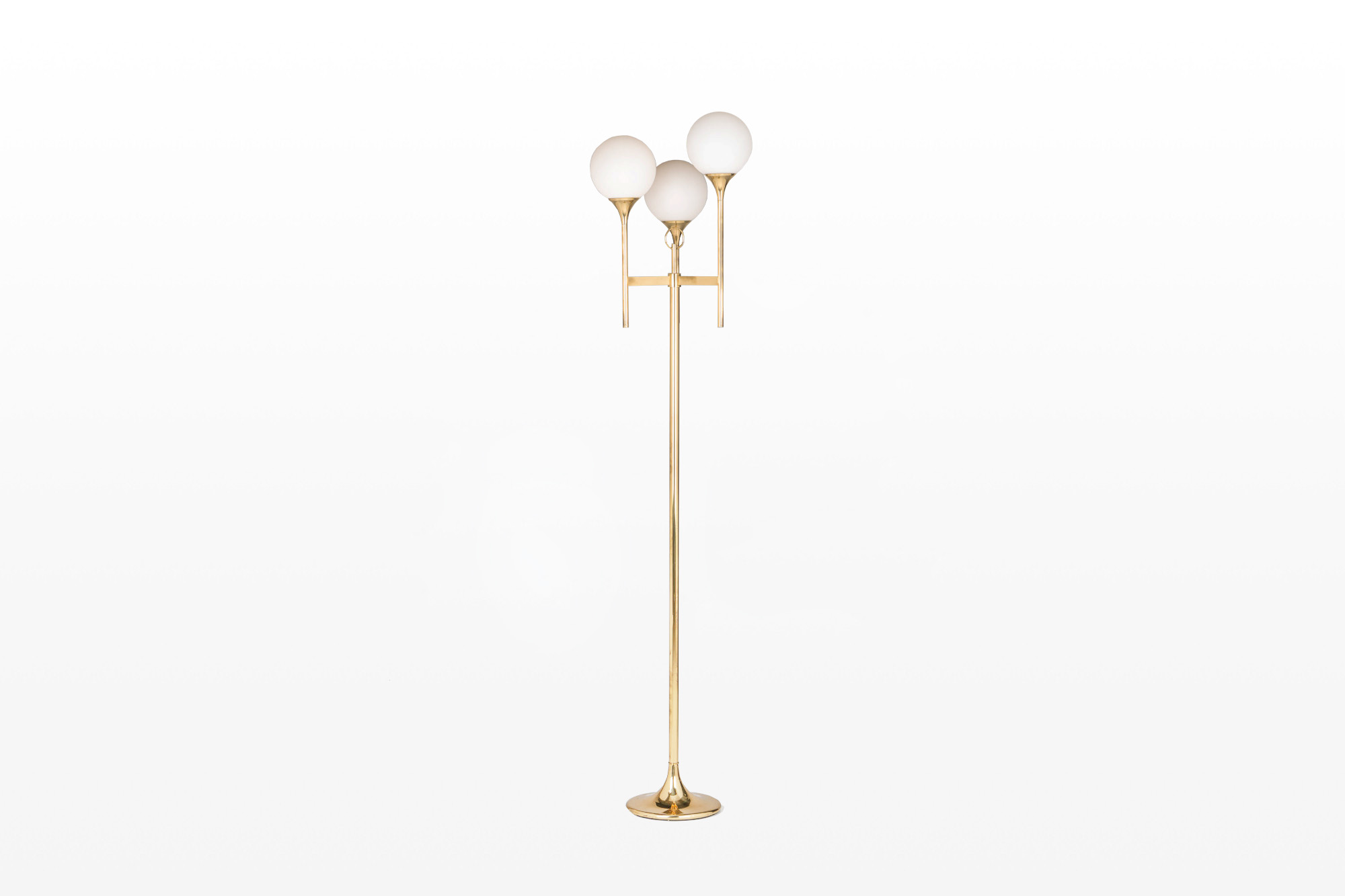 Vintage Italian brass floor lamp from the 1970s. The lamp was designed by Gaetano Sciolari and is in very good condition. The lamp is made of brass and has three light points.