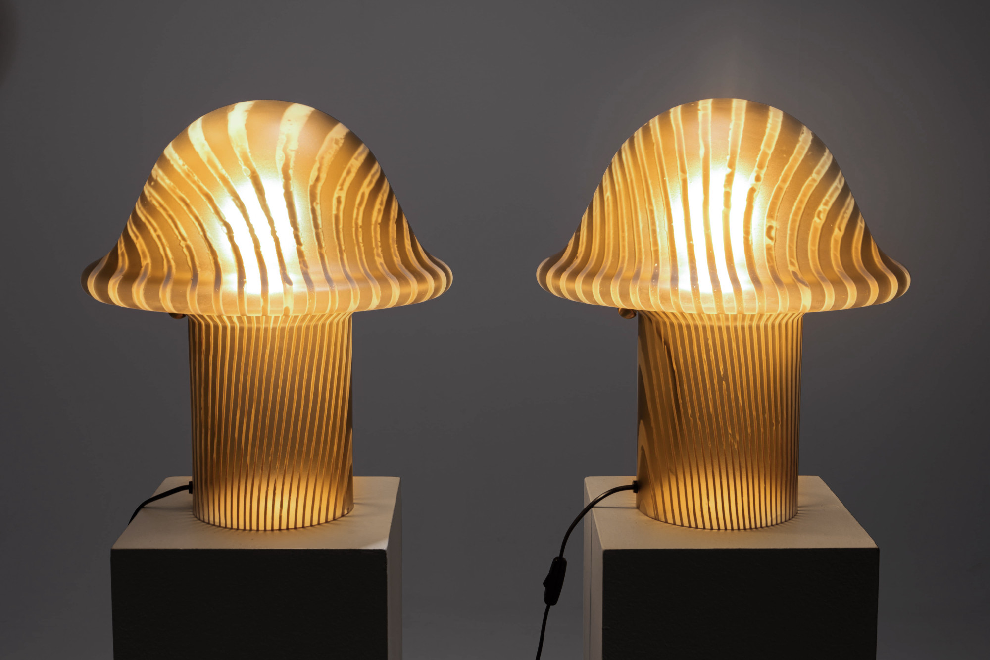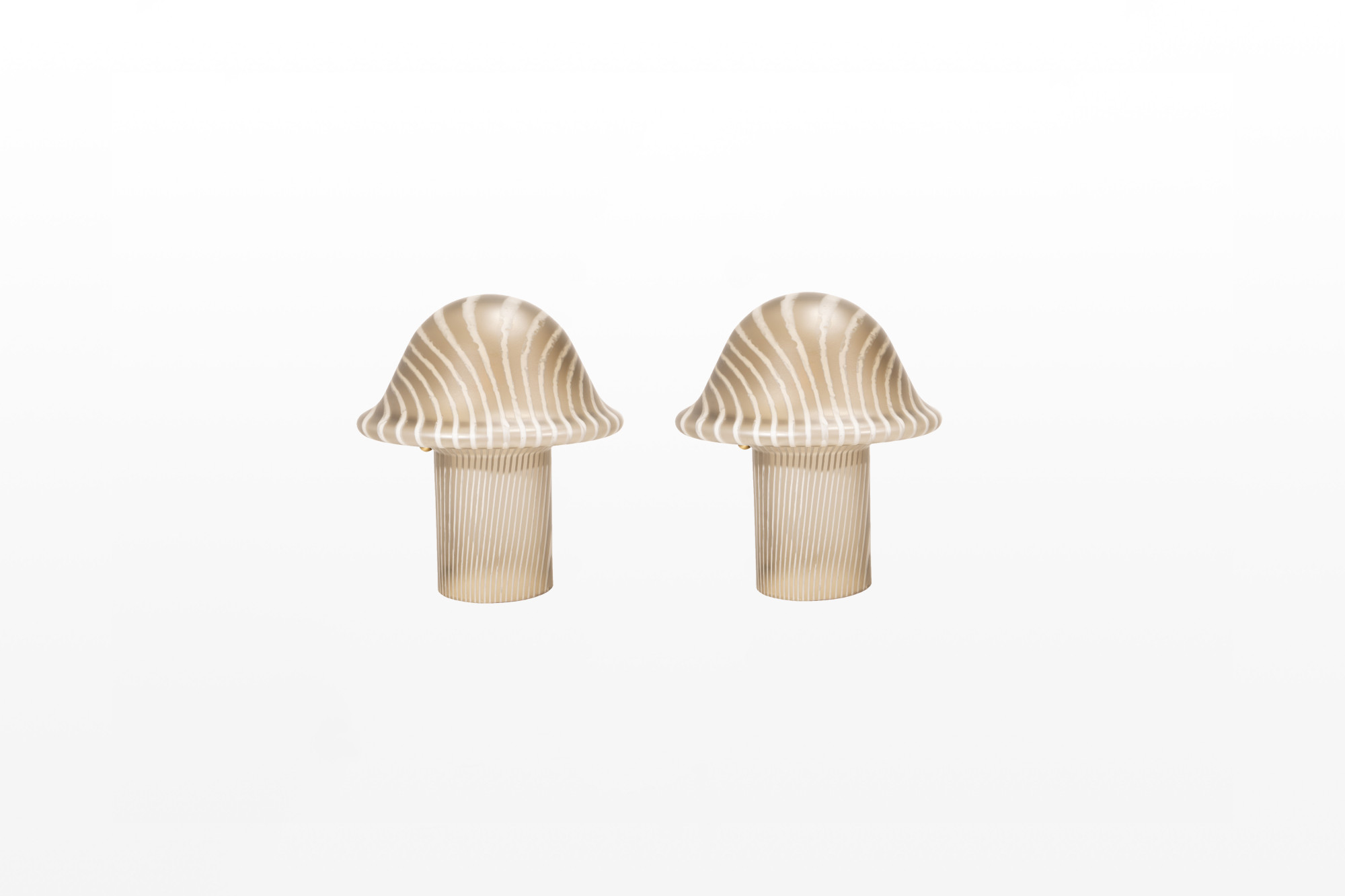 These lamps were manufactured by the German manufacturer Peill & Putzler in the ‘70s. Beautiful lamps with a striped zebra print and are shaped like a typical mid-century mushroom. XXL version.
