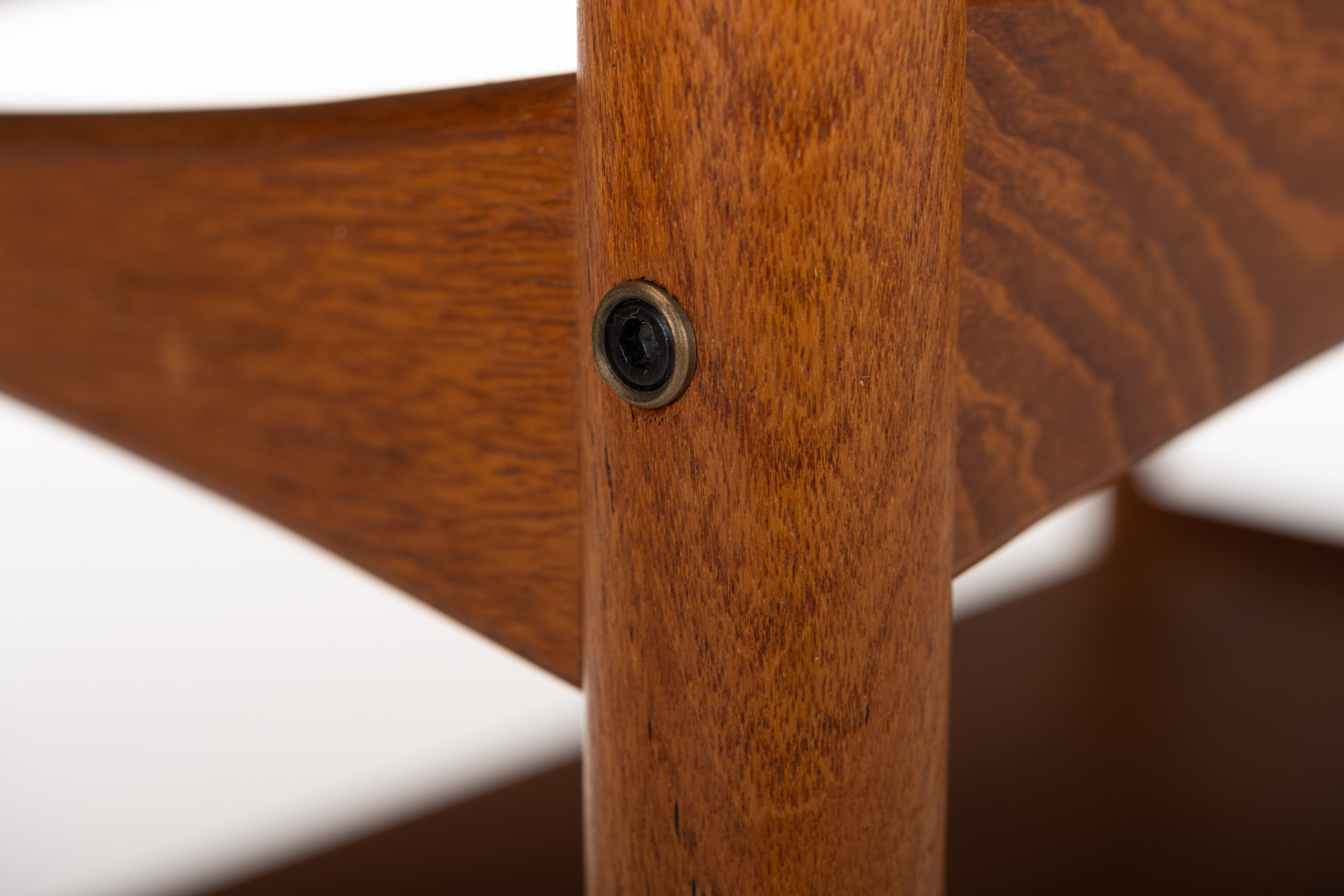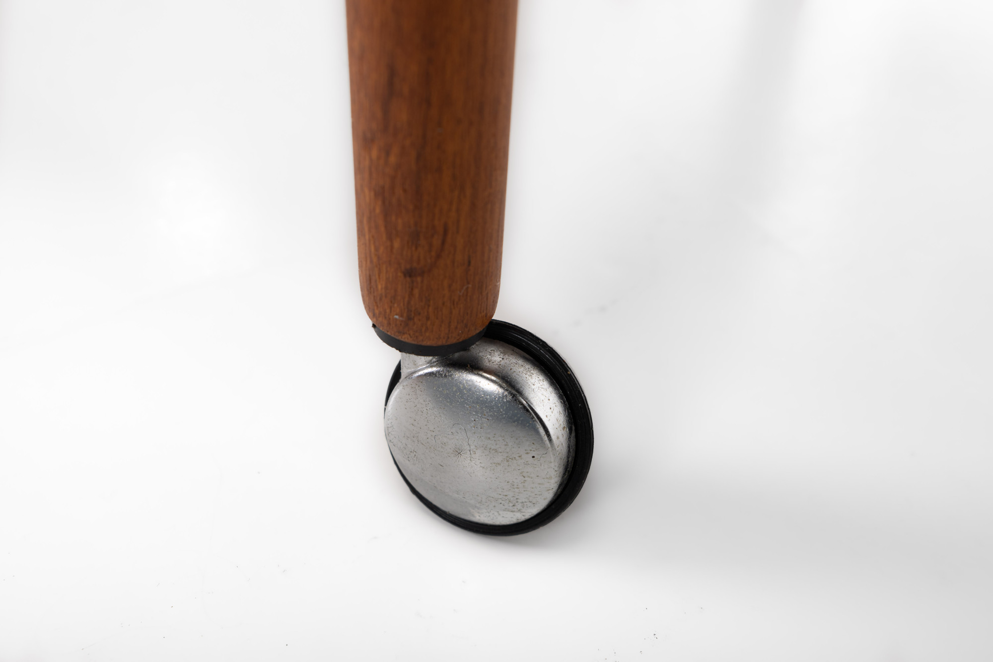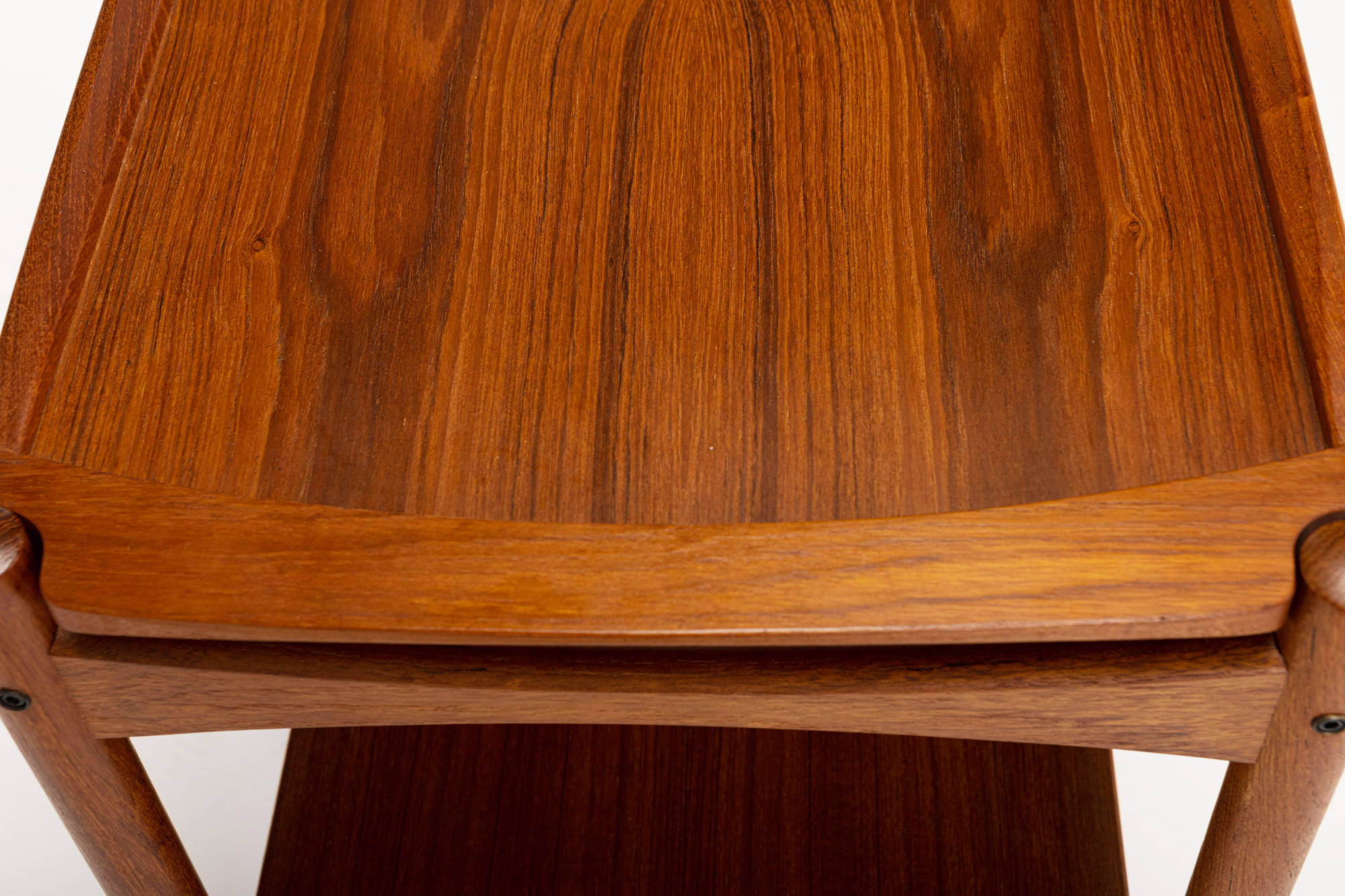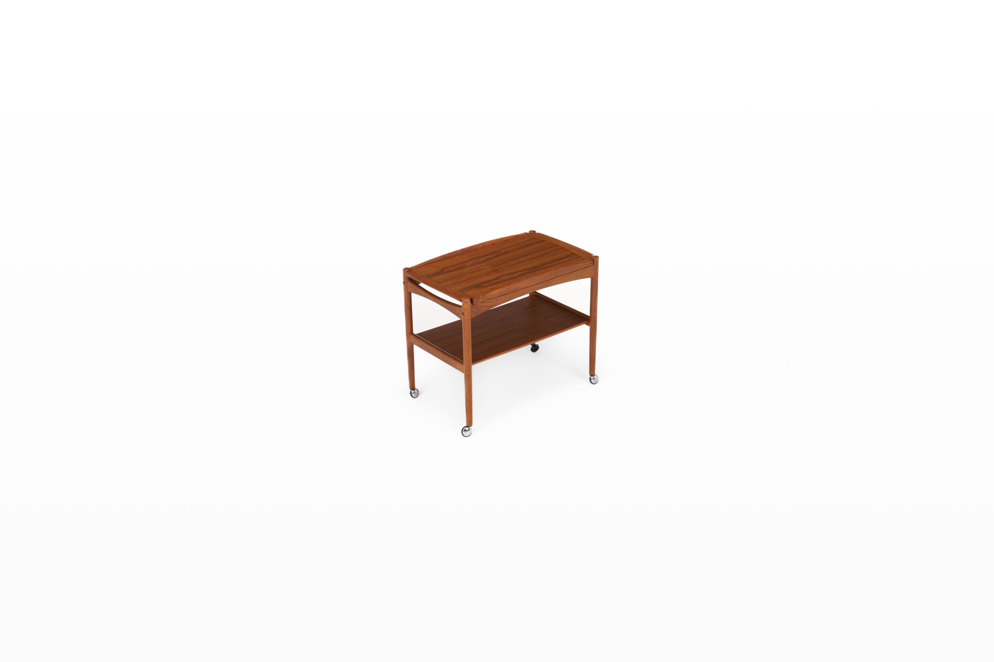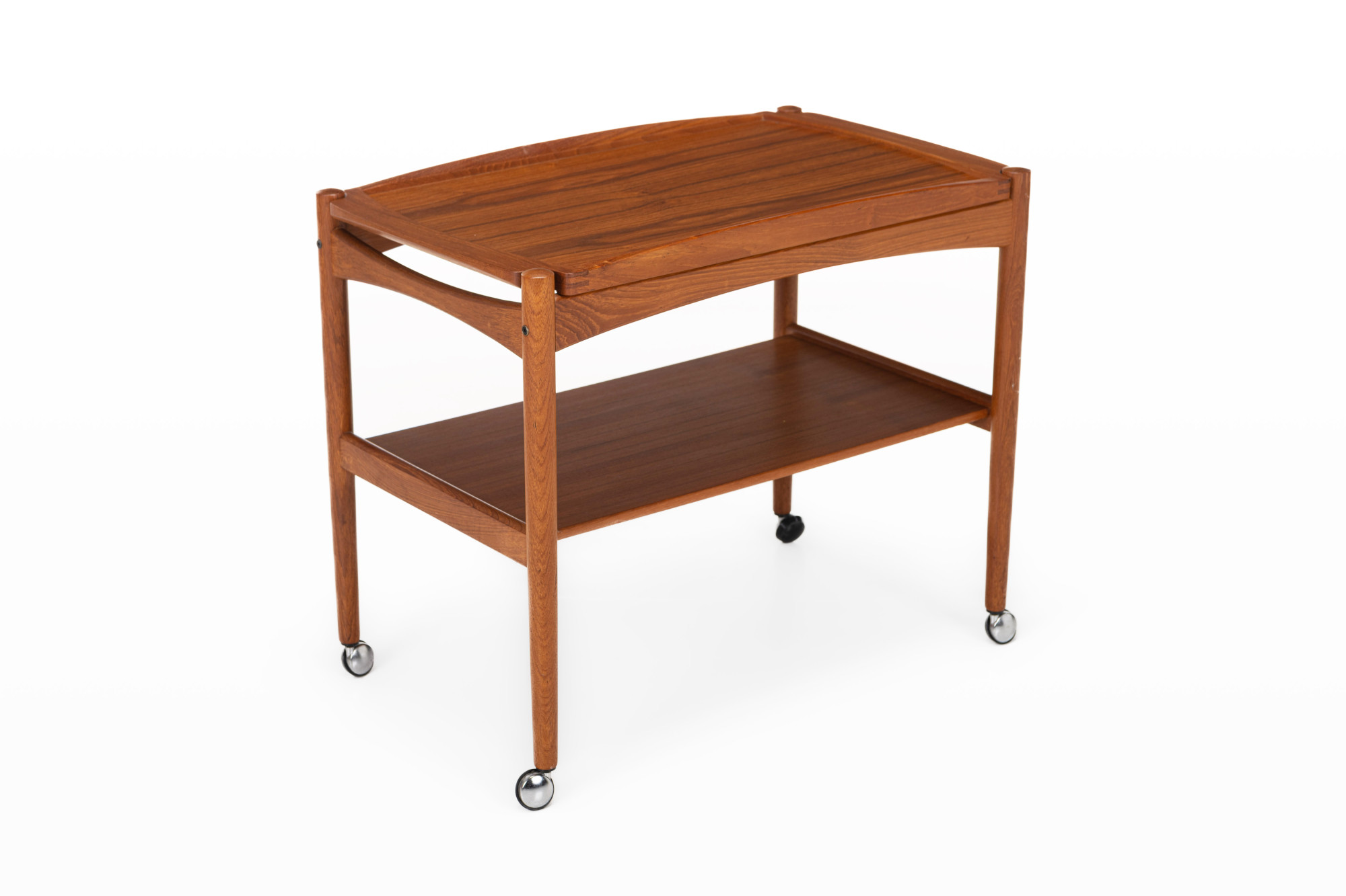 Vintage Danish serving trolley in teak with one storage drawers. The trolley is designed by Poul Hundevard for Hundevad & Co. It is still in very good condition.