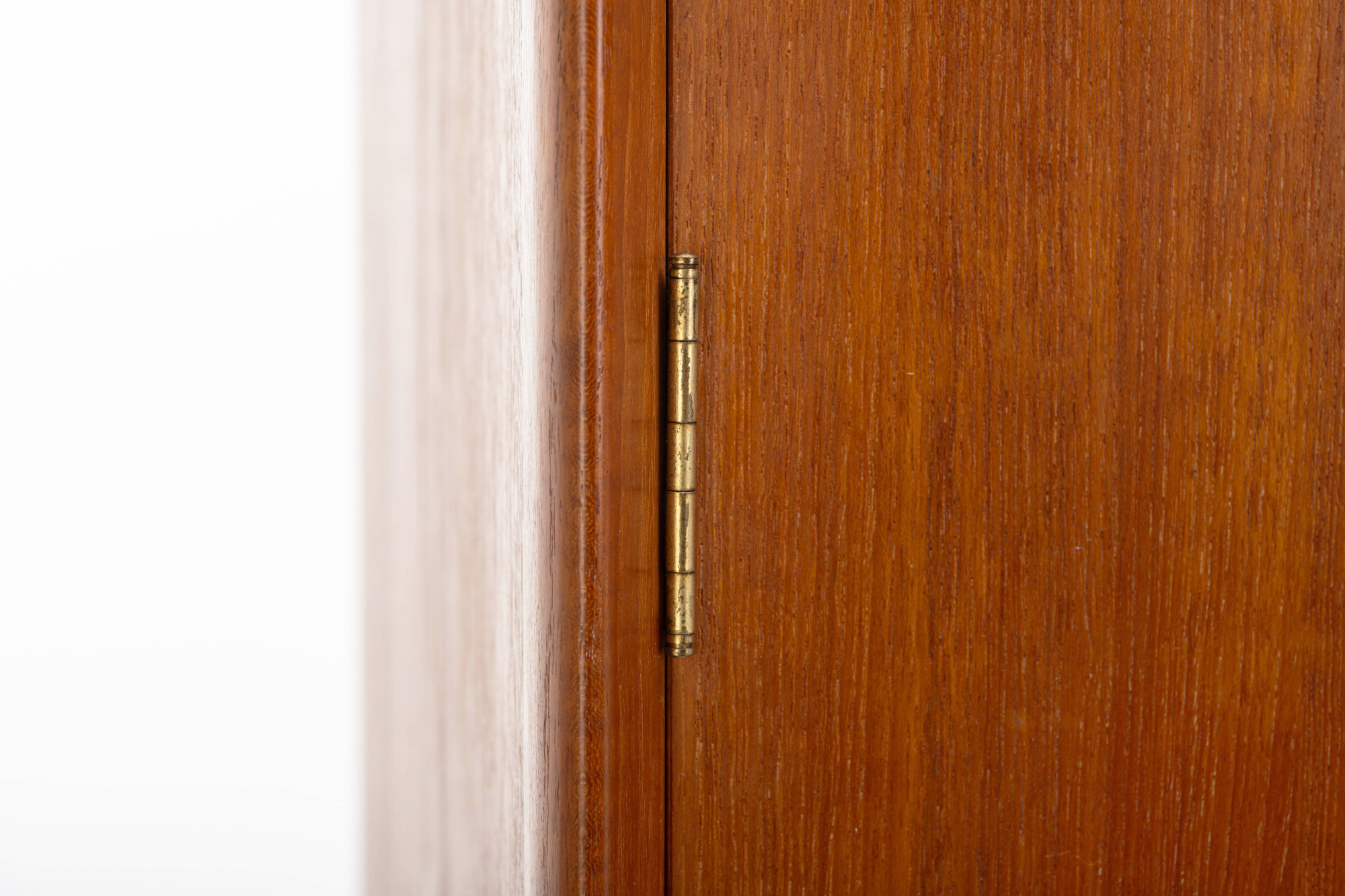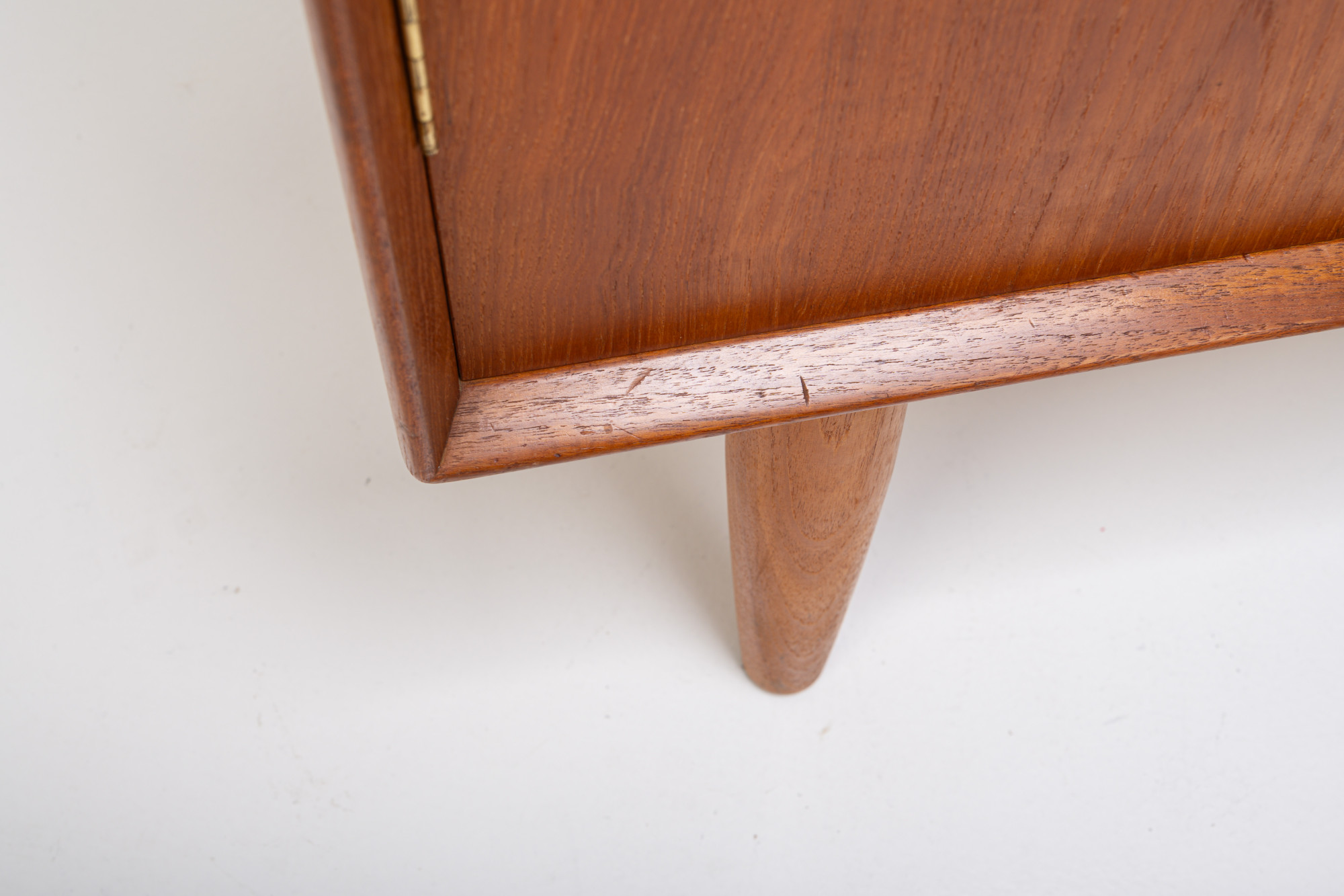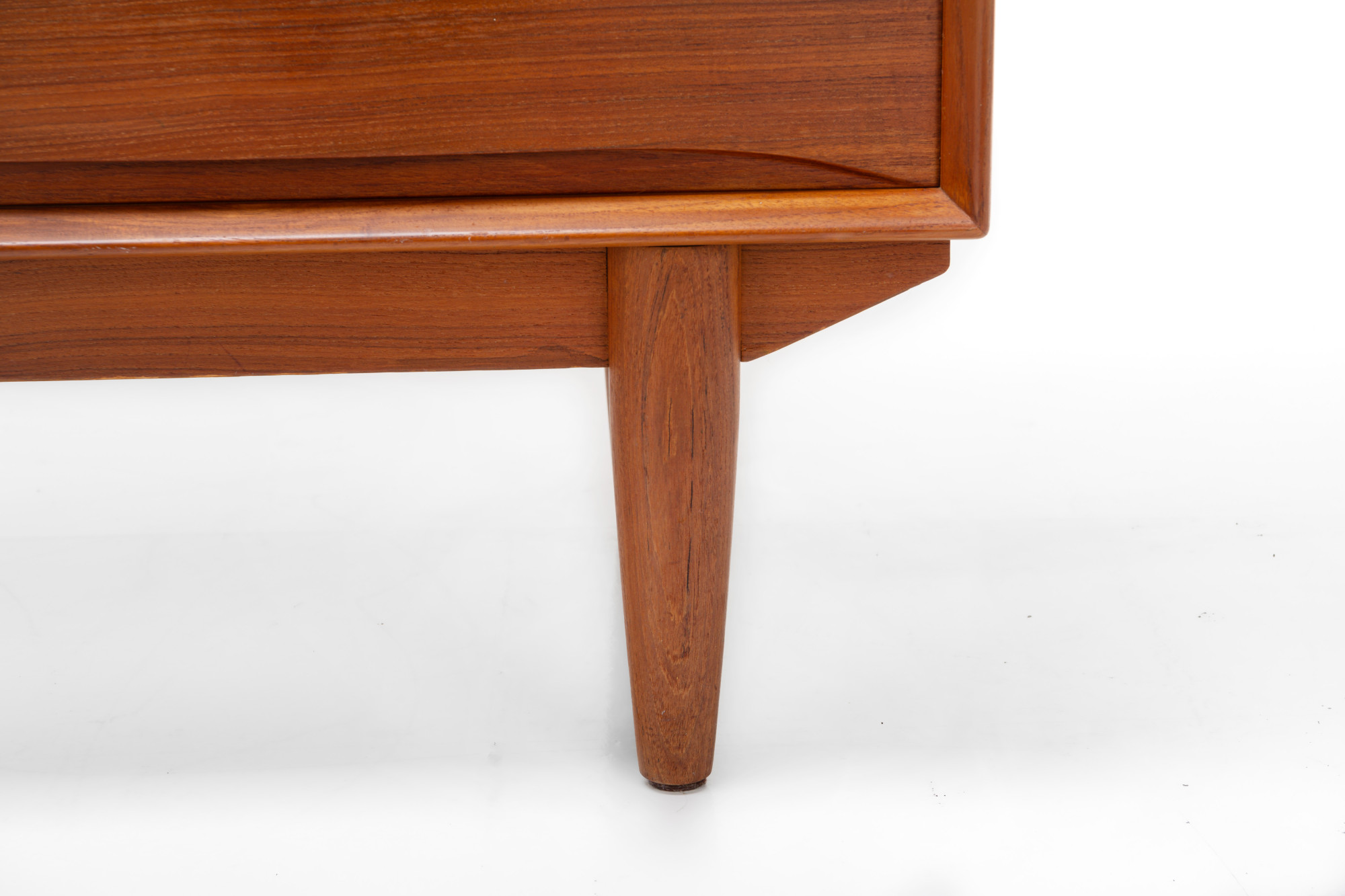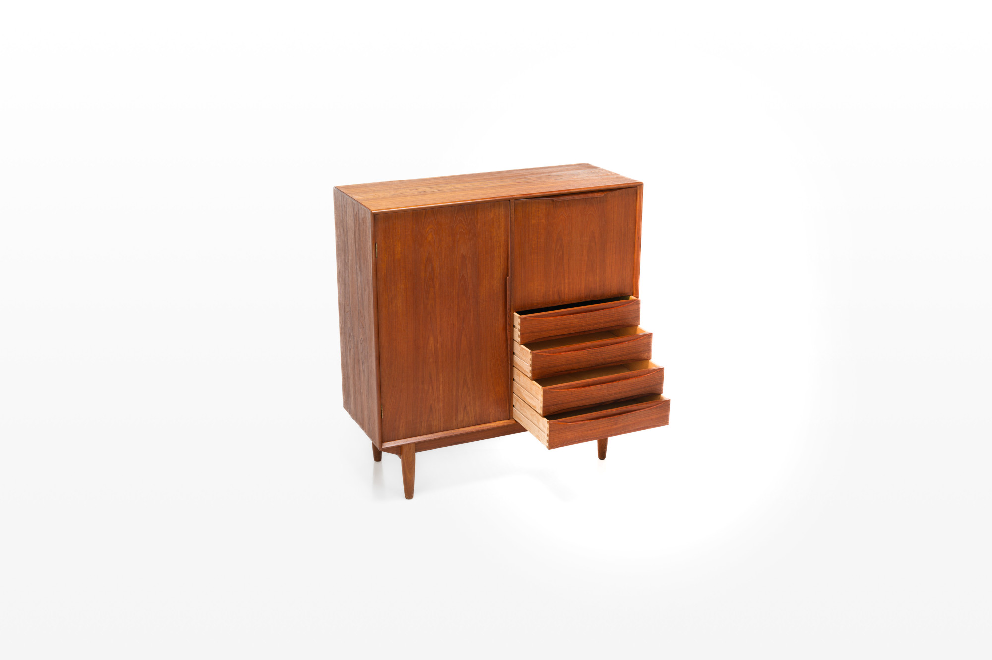 Lovely teak bar cabinet from Dyrlund in Denmark. This vintage piece is of excellent quality and is in great condition. It features four drawers, a designated bar area, and a lot of storage space. The original manufacturer's sticker is still attached.