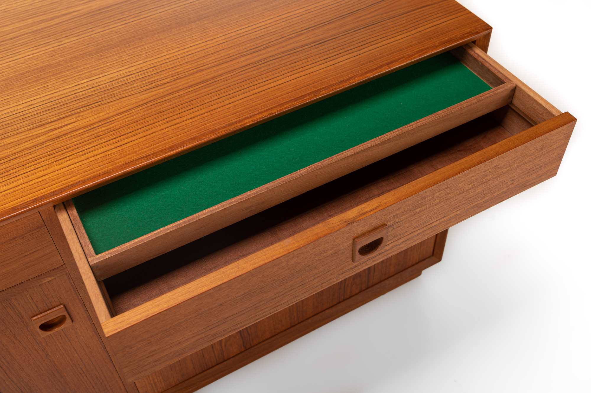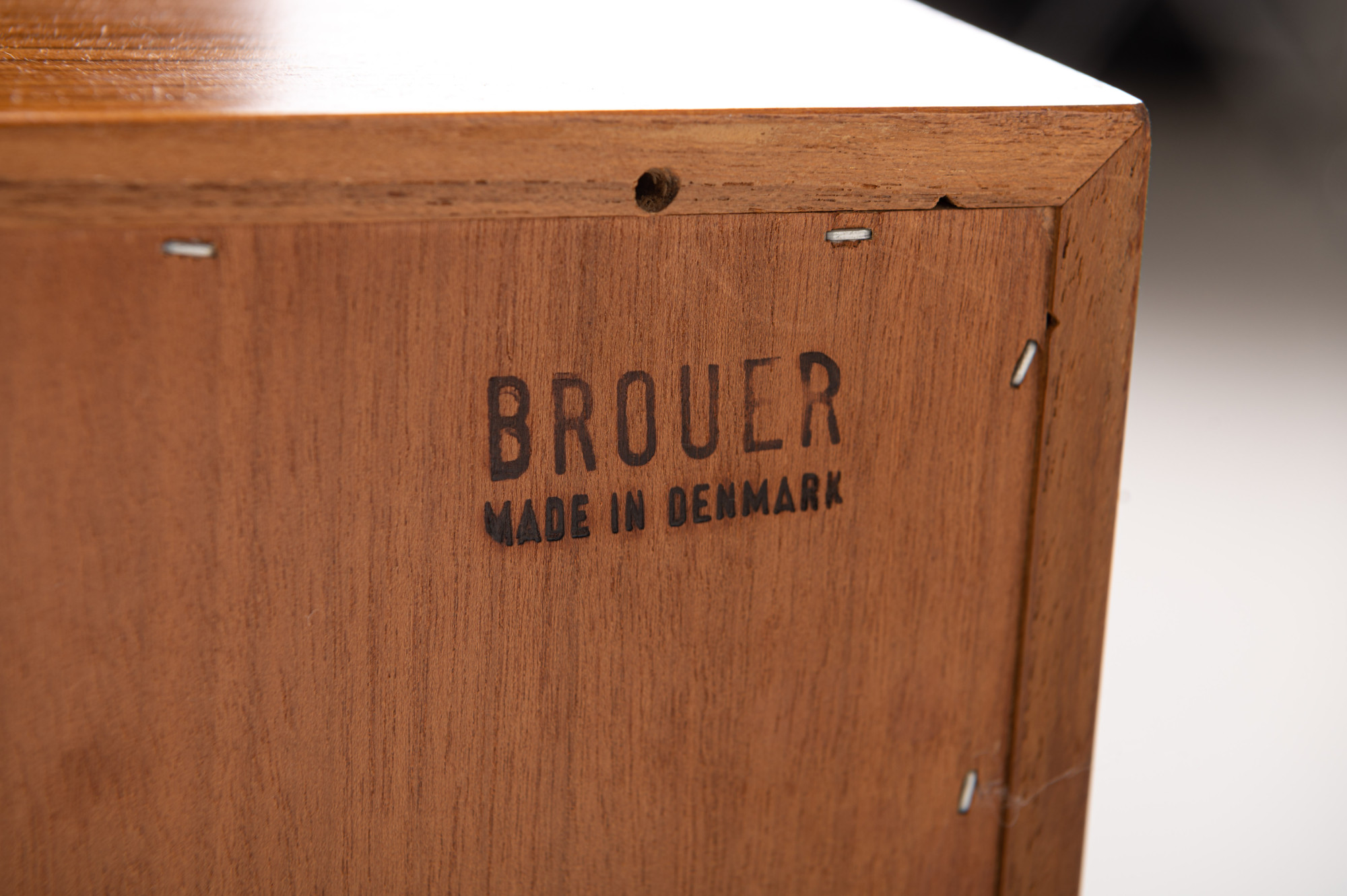 Danish sideboard in teak produced by Brouer Møbelfabrik, 1960s. The sideboard has two doors, two drawers and plenty of storage space.
