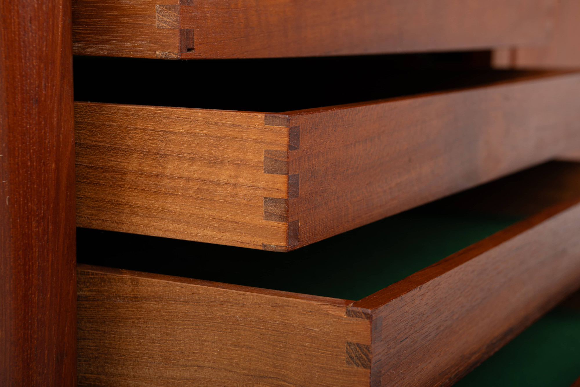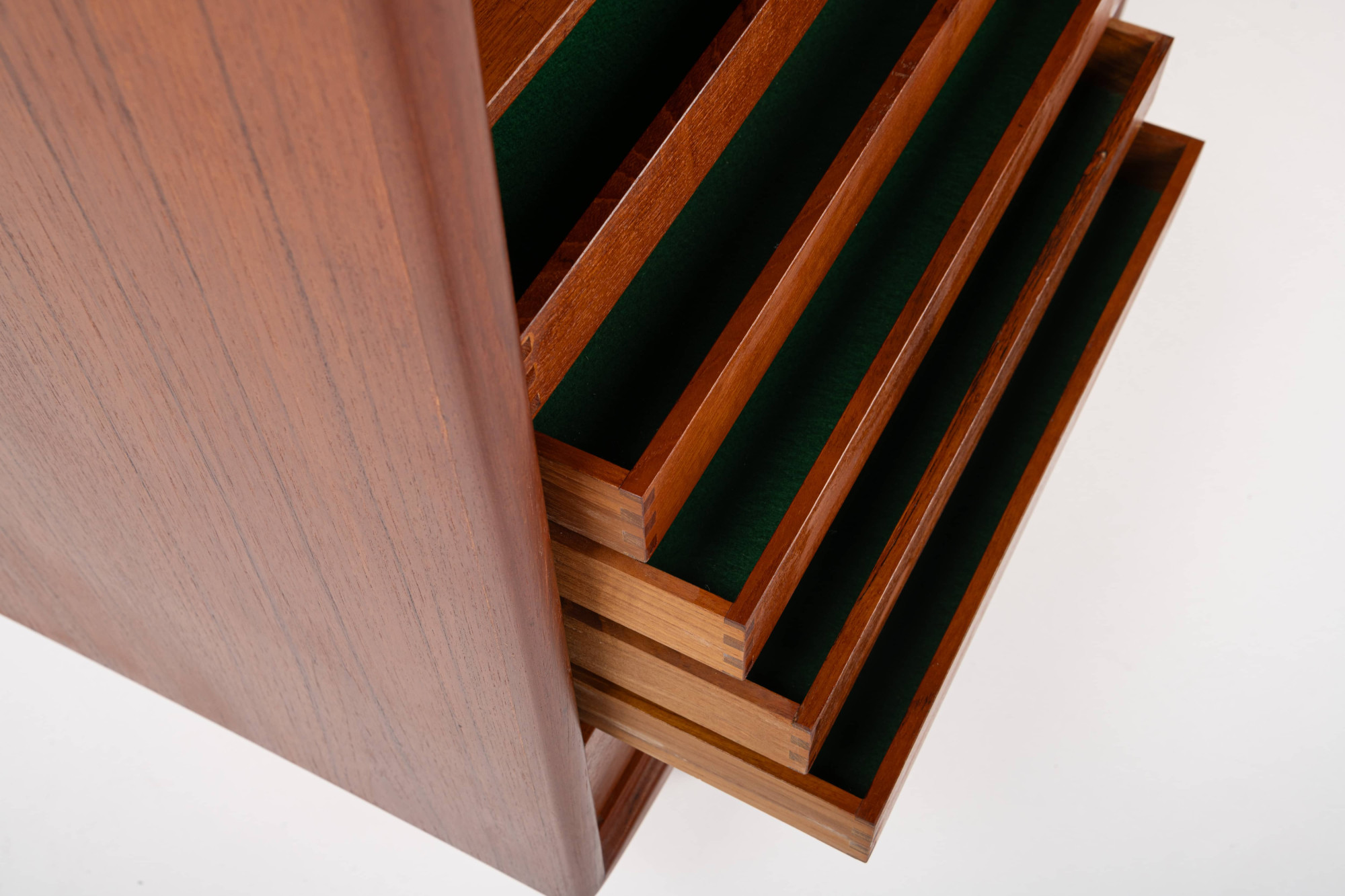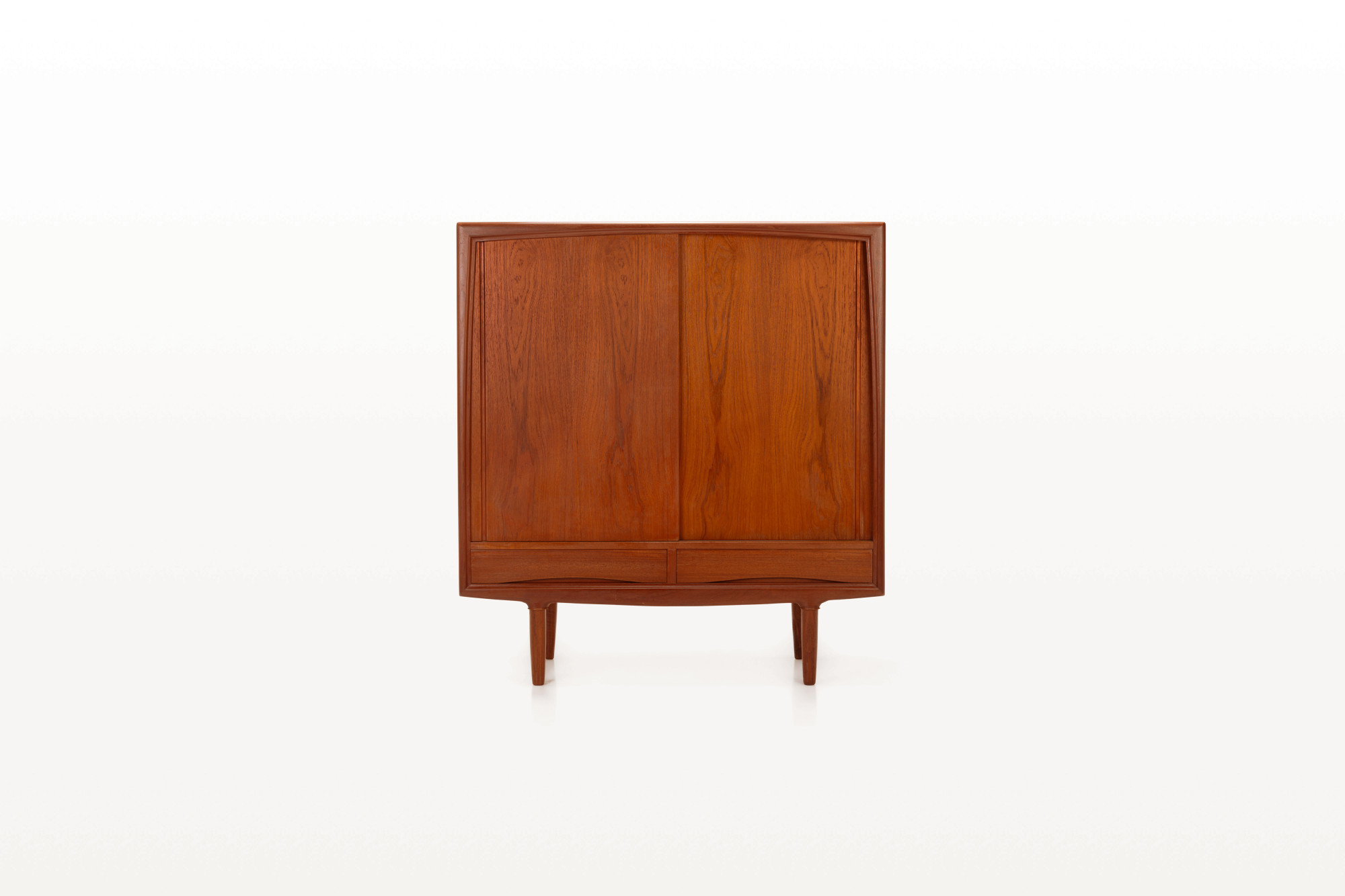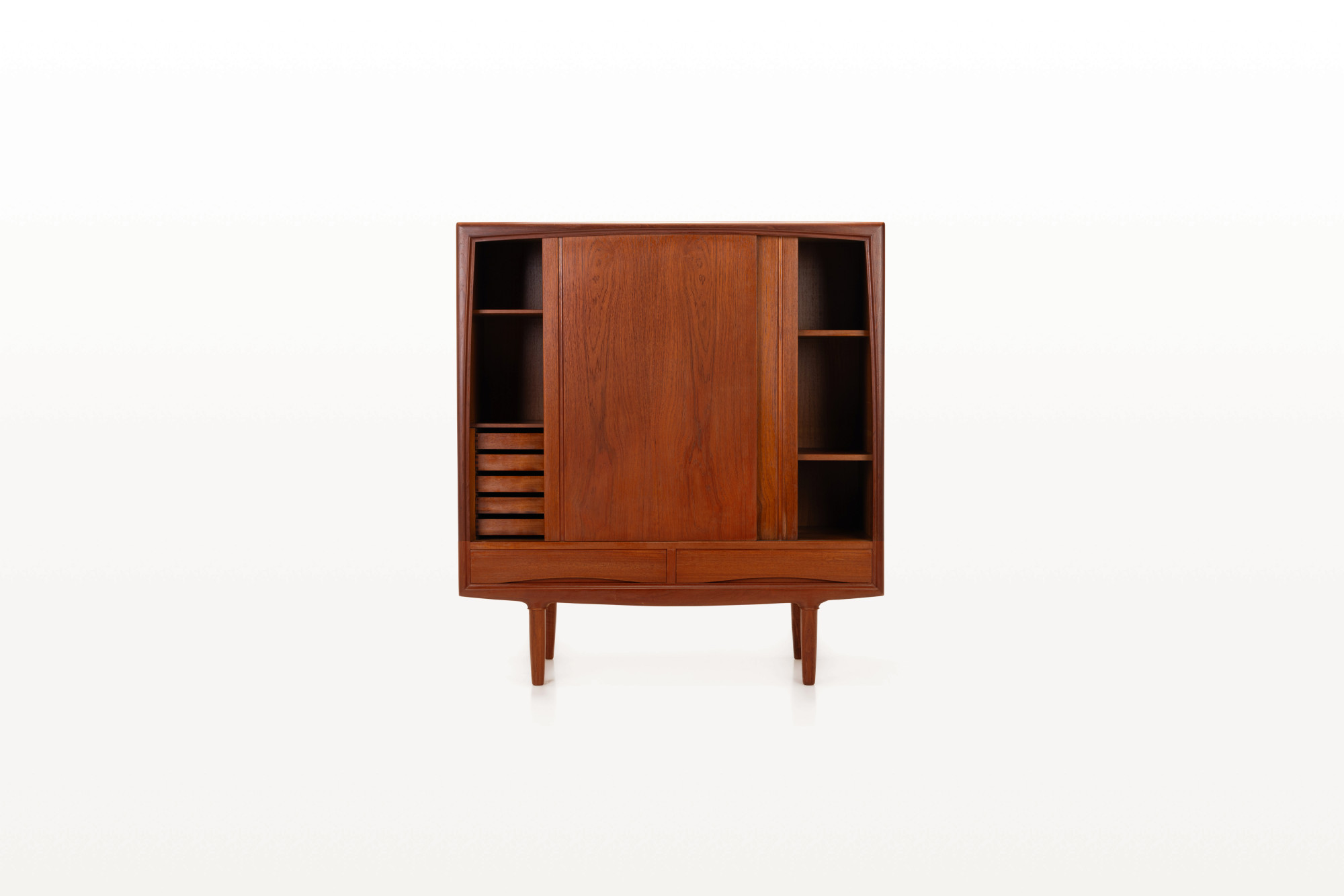 Vintage cabinet in teak designed by Axel Christensen. This piece is manufactured by ACO Møbler in Denmark in the 1960s. Beautifully designed cabinet with elegant handles, two drawers, five inner drawers and plenty of storage space with adjustable shelves.