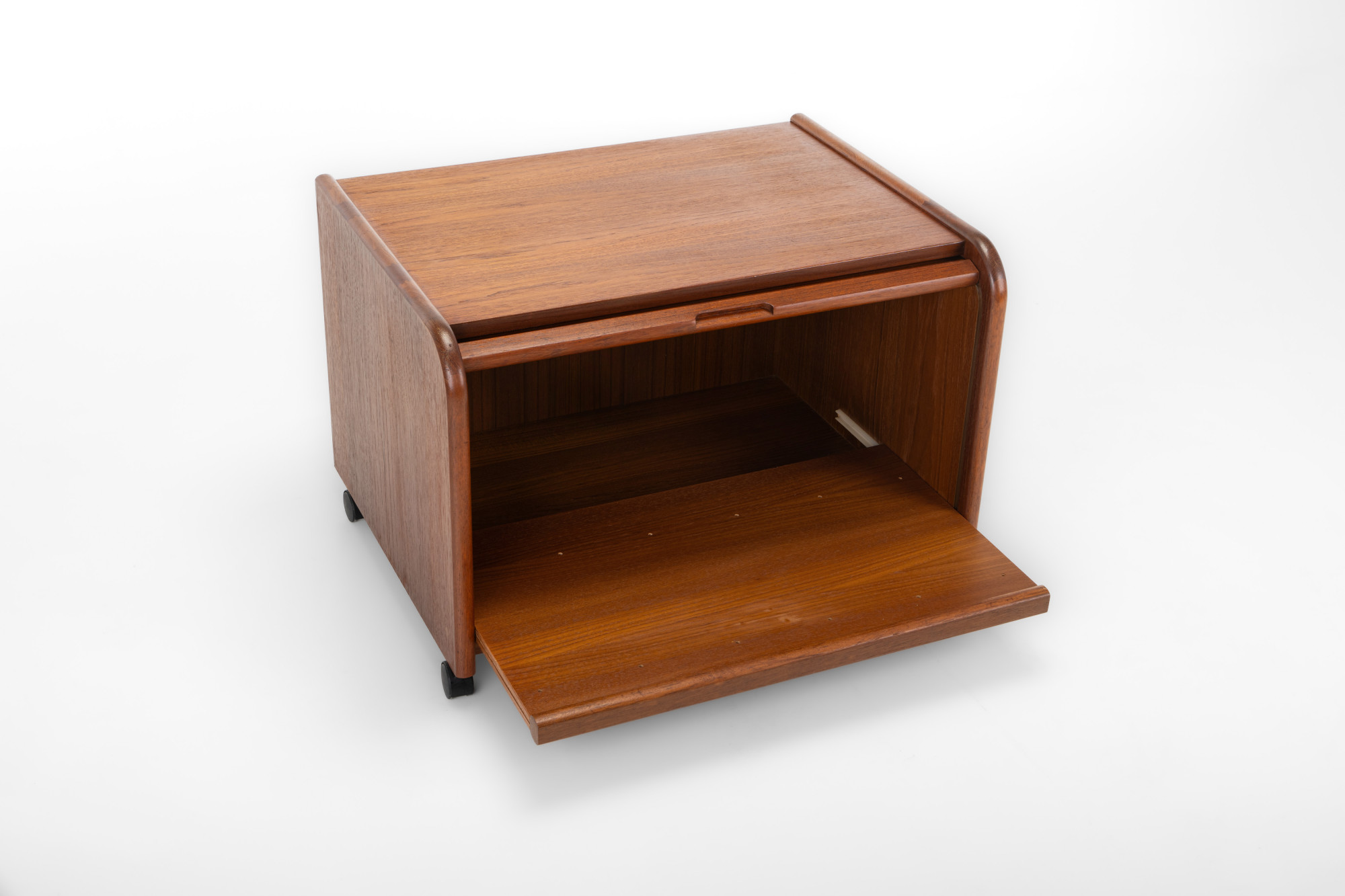 Vintage rolling cabinet in teak produced by Bornholms Mobelfabrik in Denmark. This rolling cabinet can be perfectly used as a TV table or... It also has a pull-out shelf. The item is in very good condition and marked by the producer.