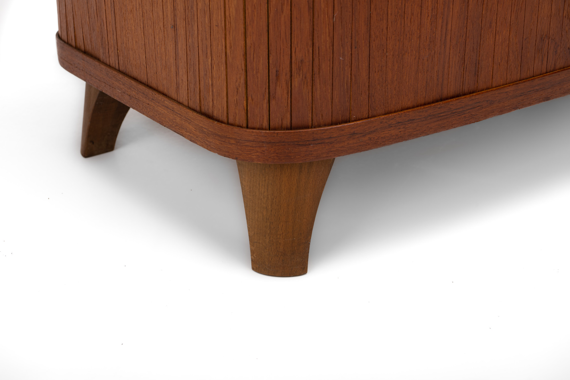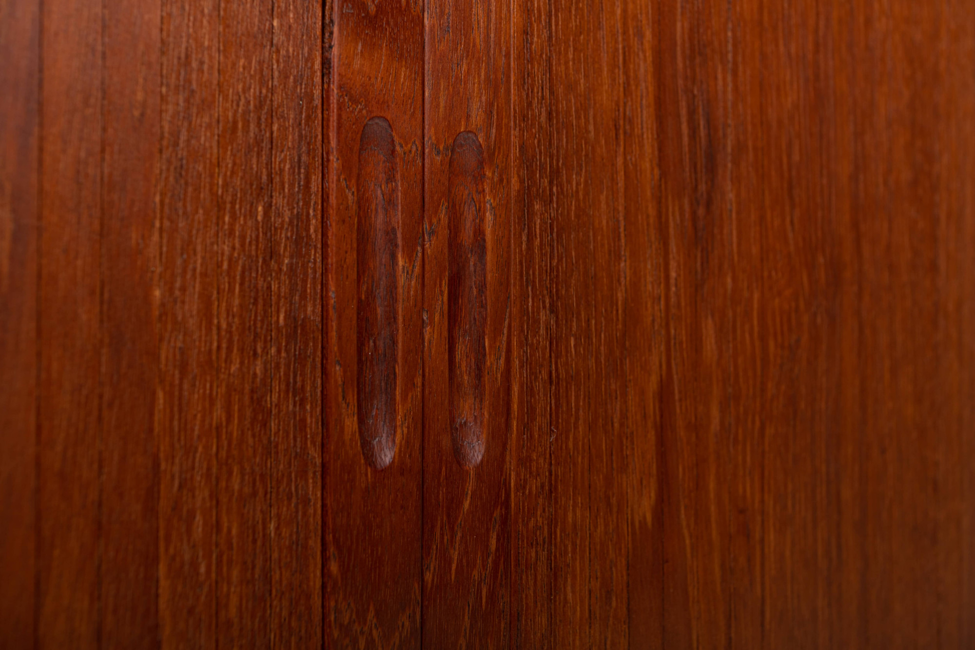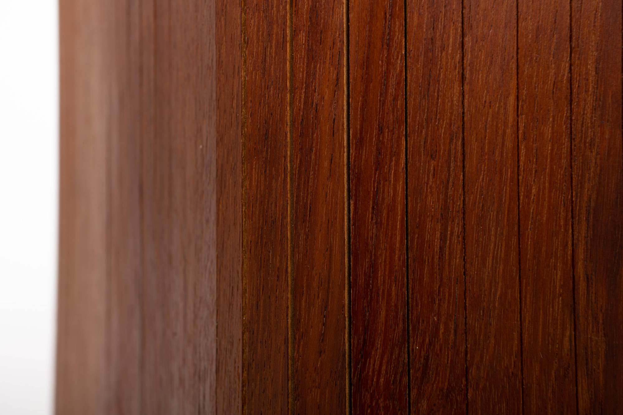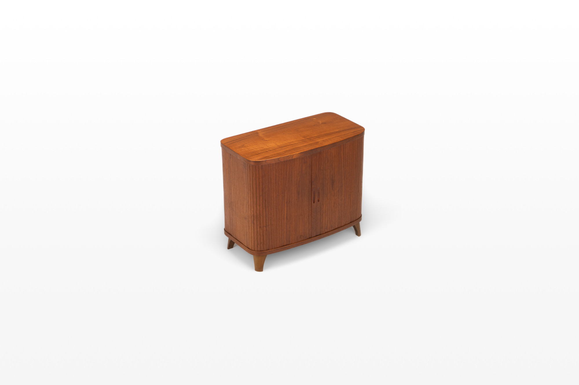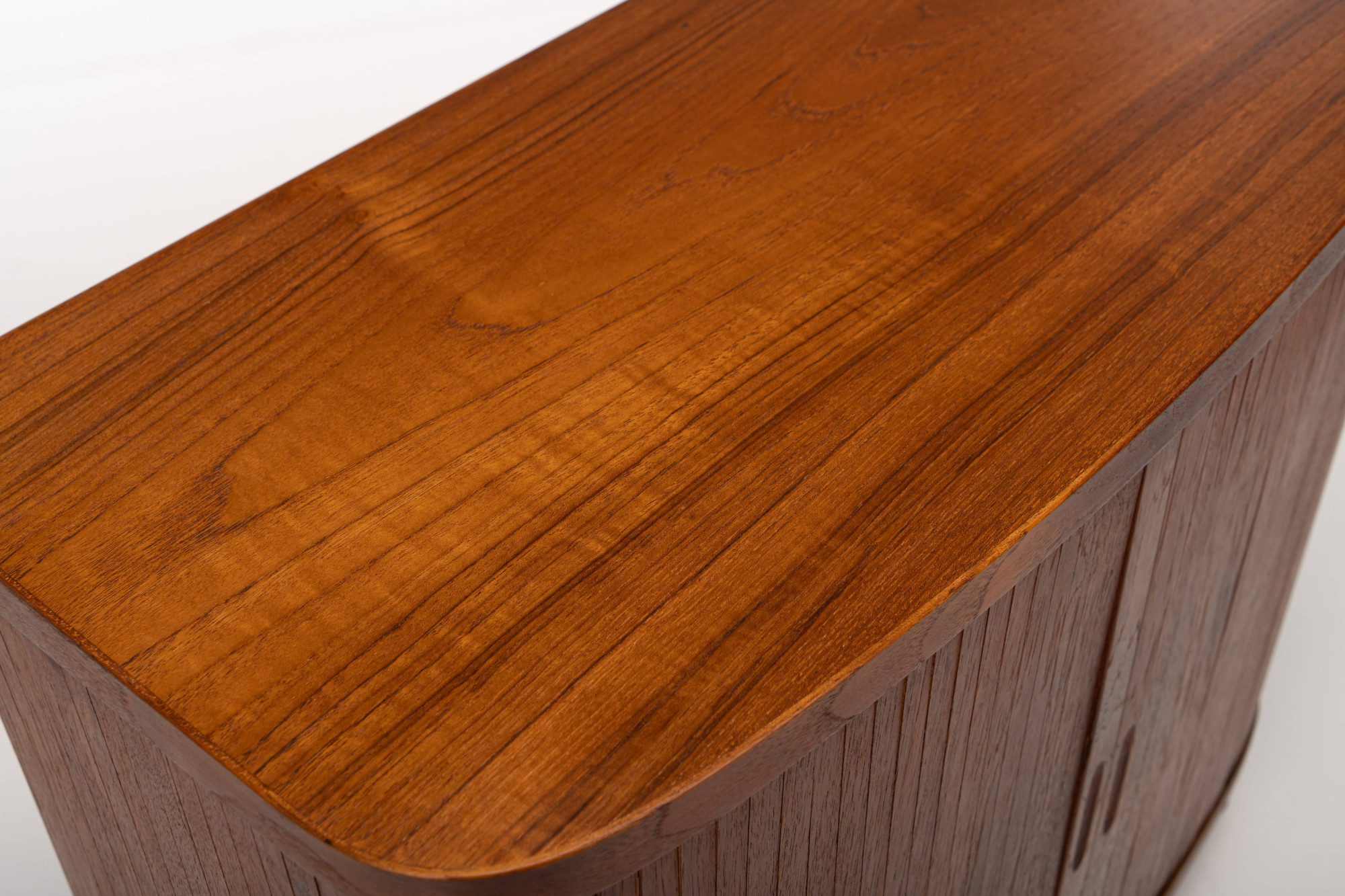Small cabinet in teak with tambour doors in very good condition. Produced in Denmark.