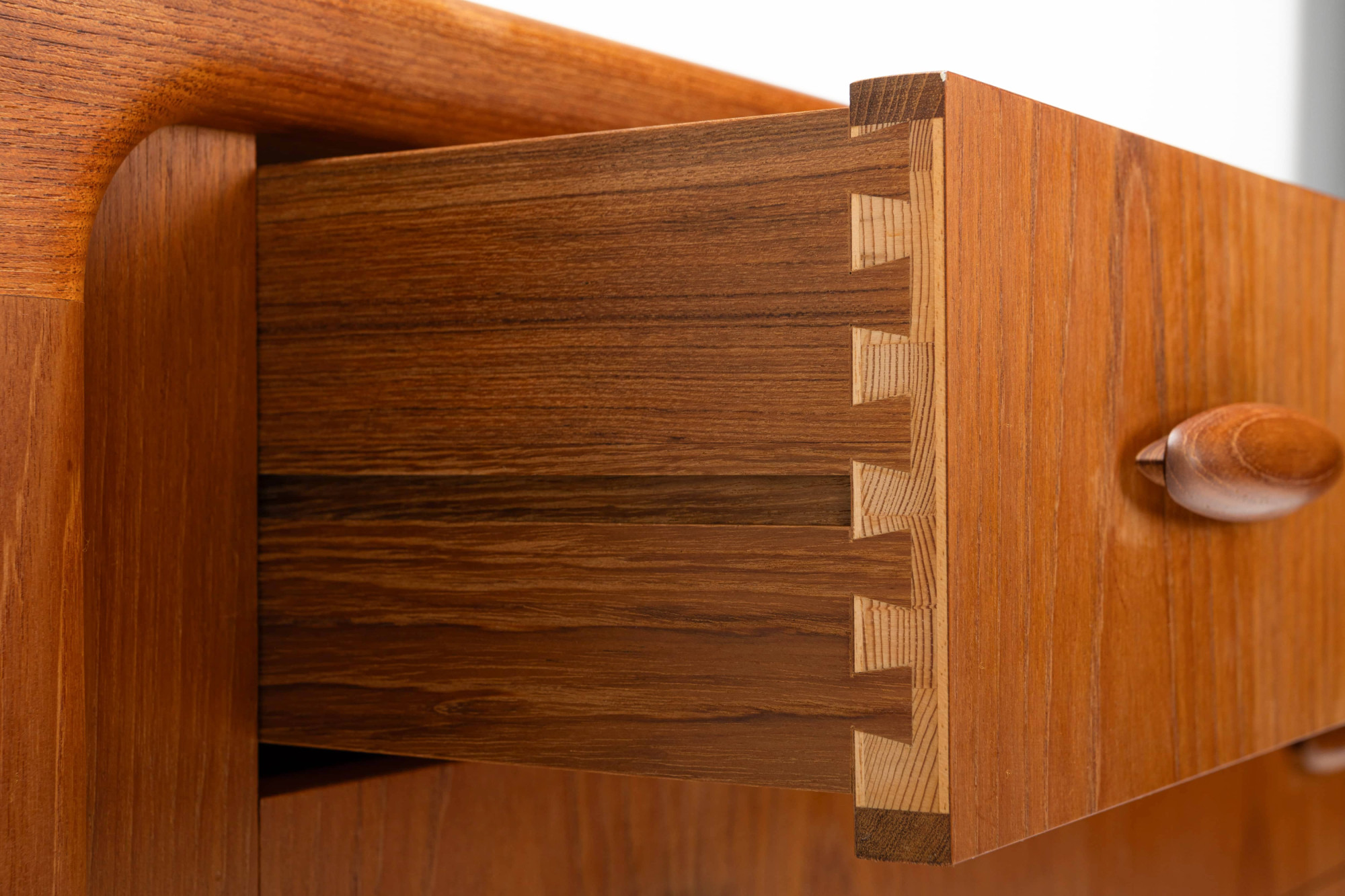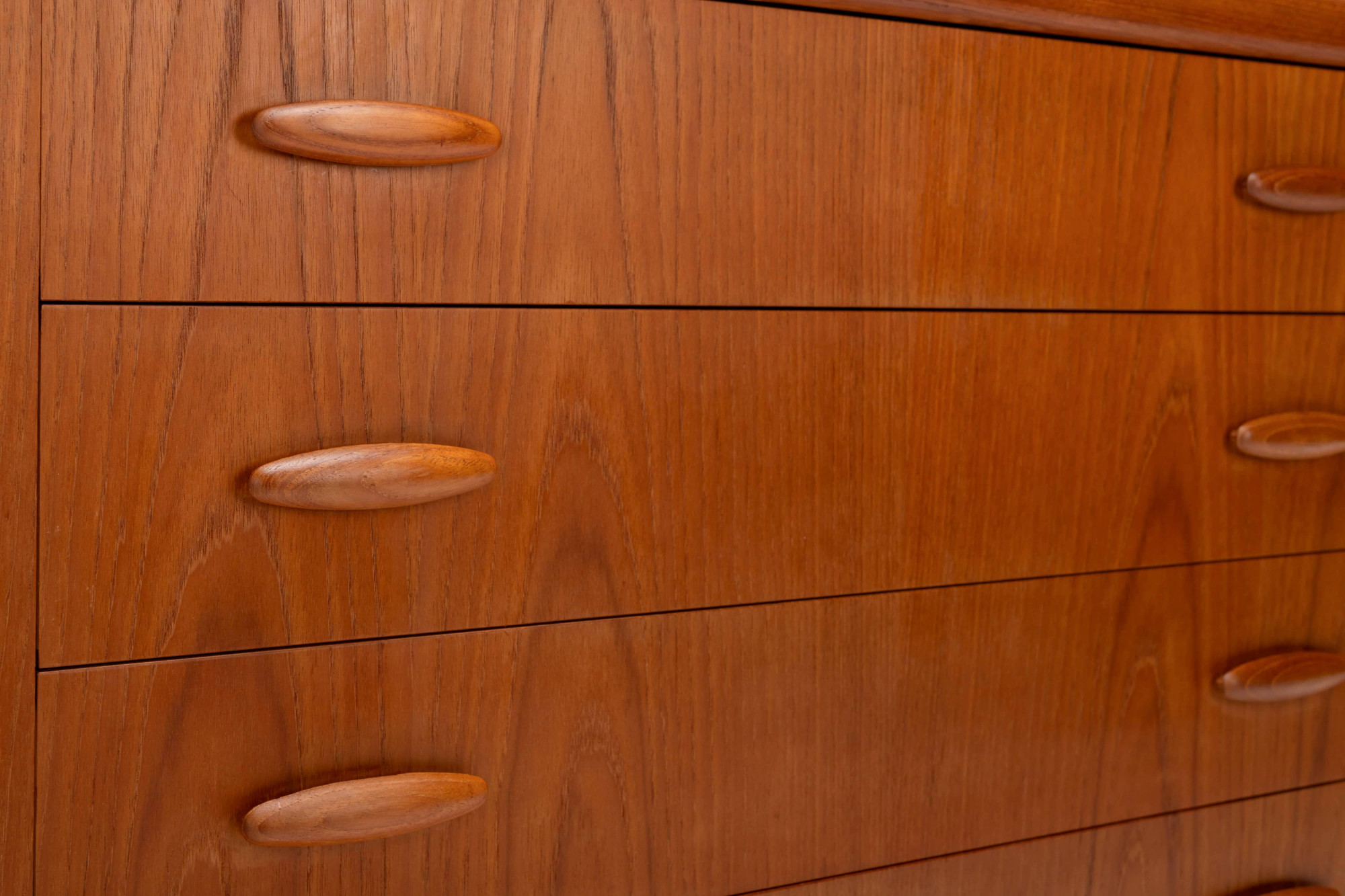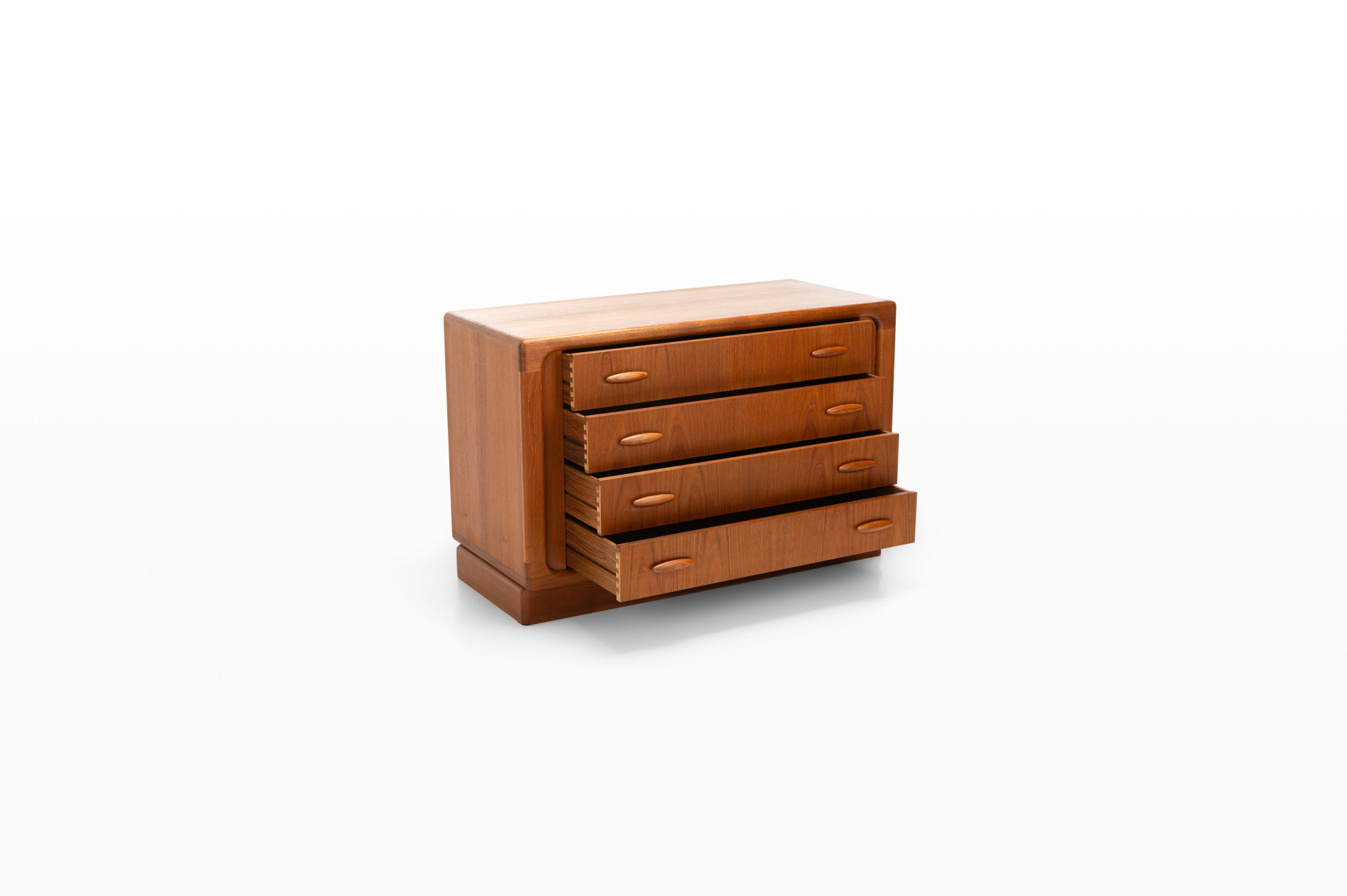 Danish vintage chest of drawers produced by Dyrlund. This piece is manufactured in teak and is equipped with four drawers. Very good condition.