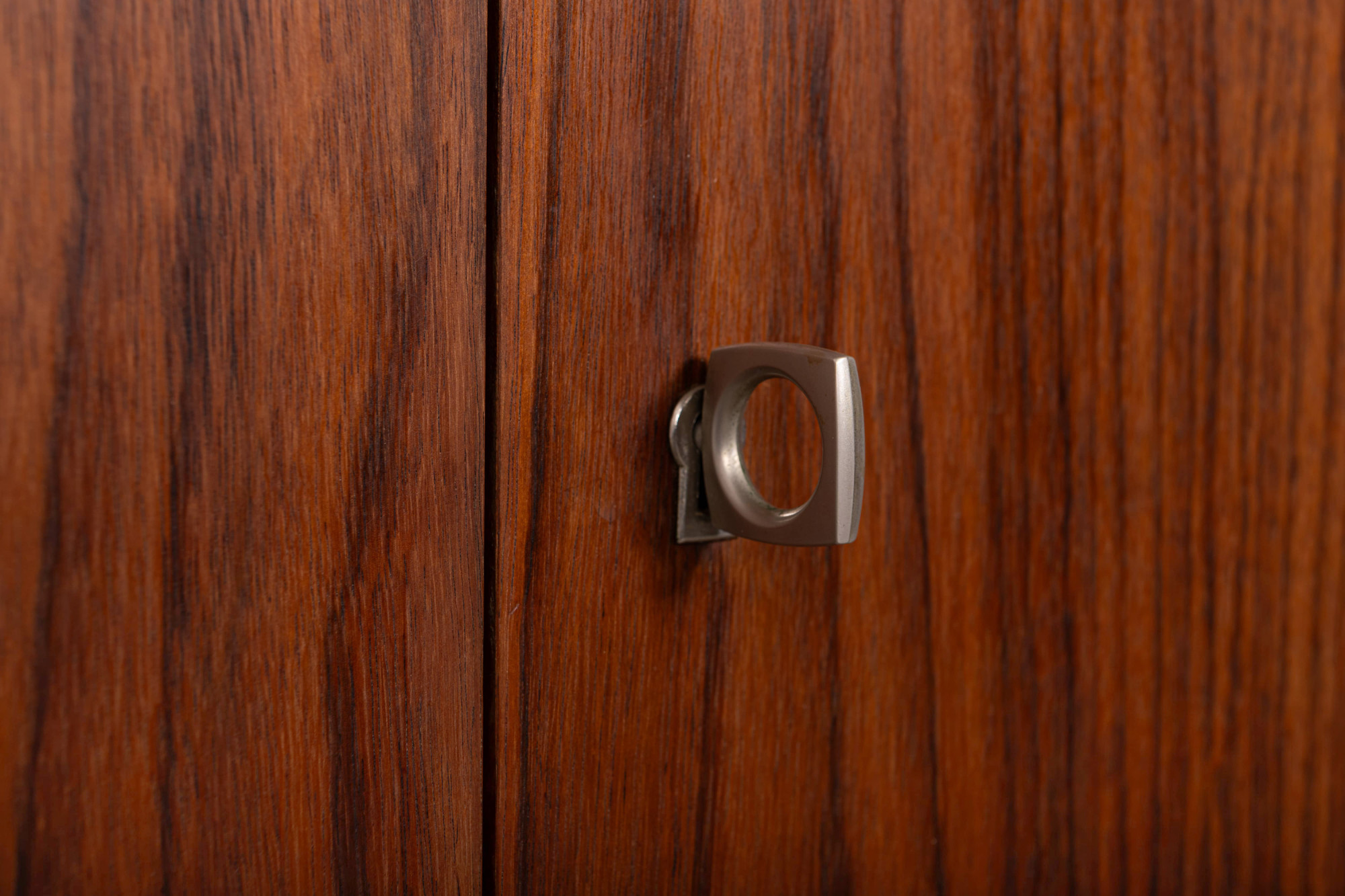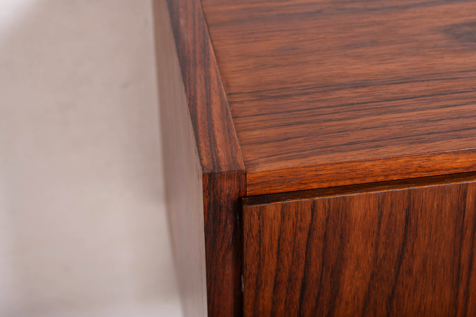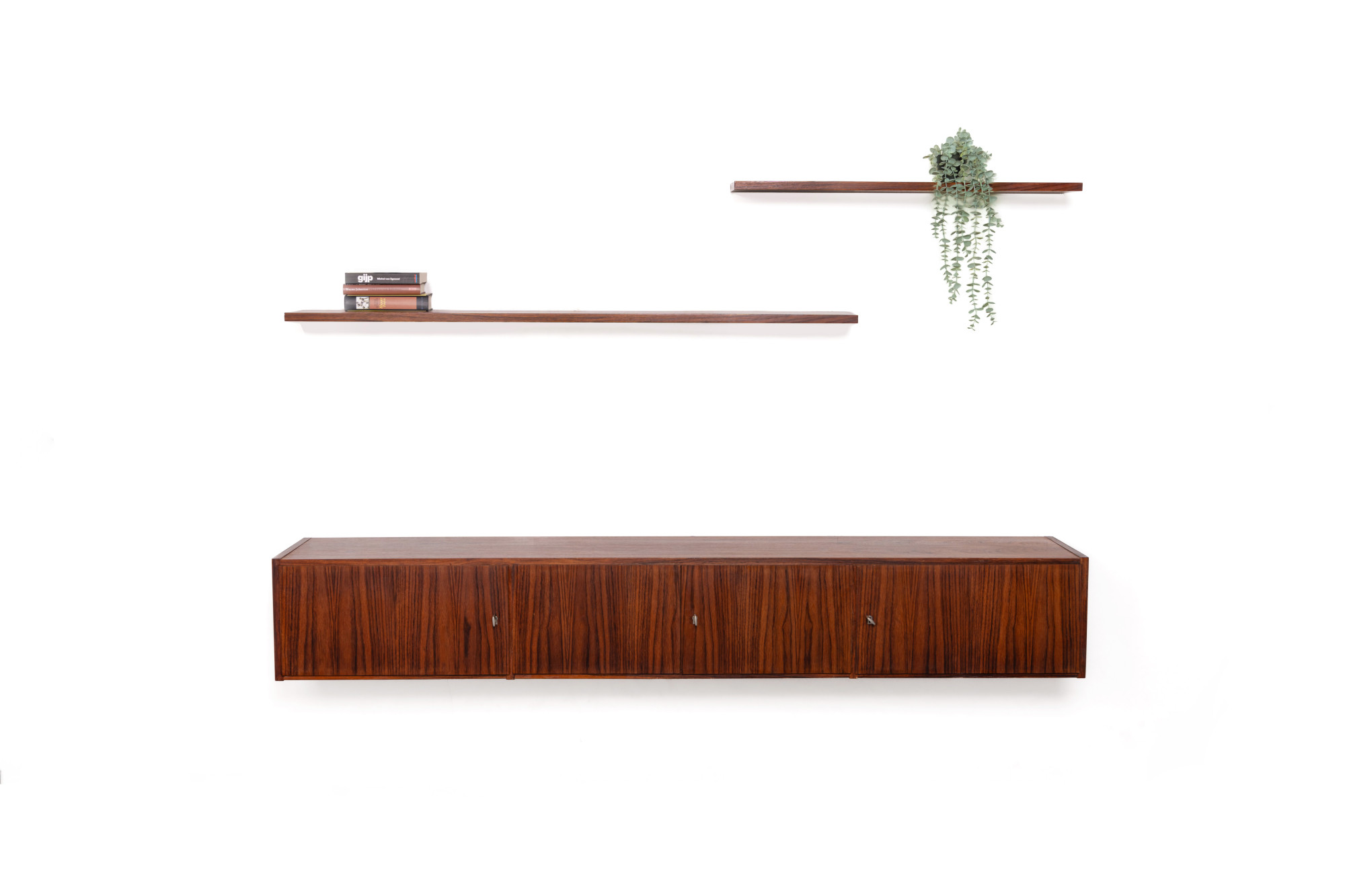 Vintage floating sideboard in rosewood. This minimalist sideboard has four doors and is easy to mount on the wall. The two rosewood planks are included in the price.