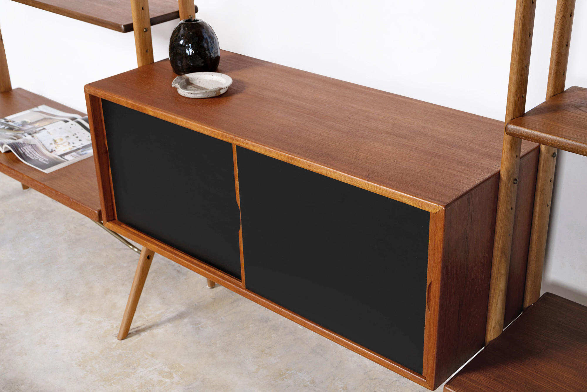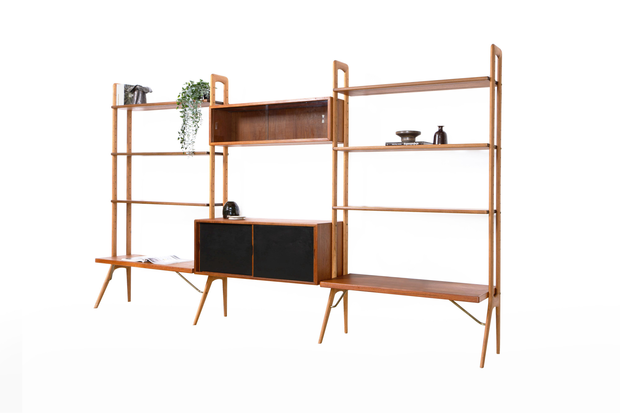 This freestanding bookcase, designed by Kurt Østervig for KP Møbler in Denmark during the 1960s, offers both functionality and style. It features two cabinet elements, one for storage and one for display, along with eight spacious bookshelves. This piece can be placed freestanding in your space, making it a true statement piece for any interior.