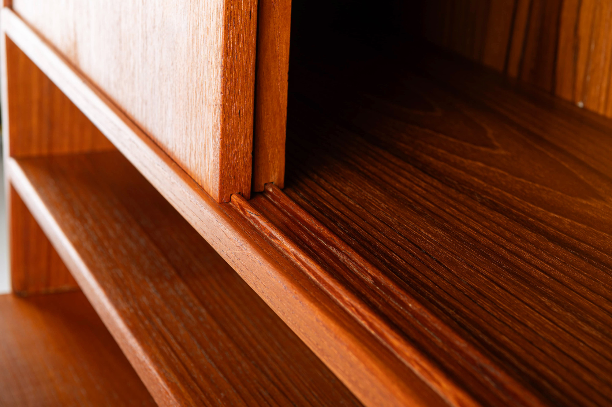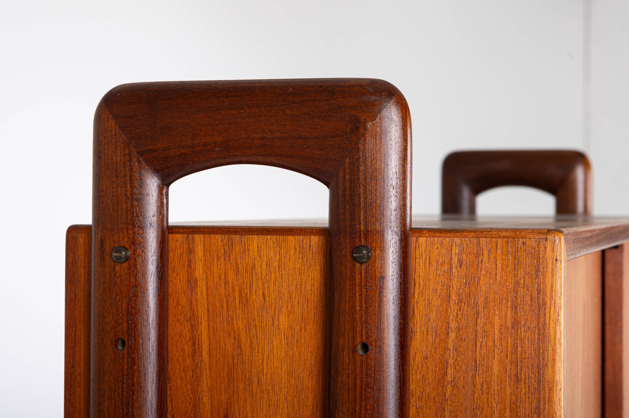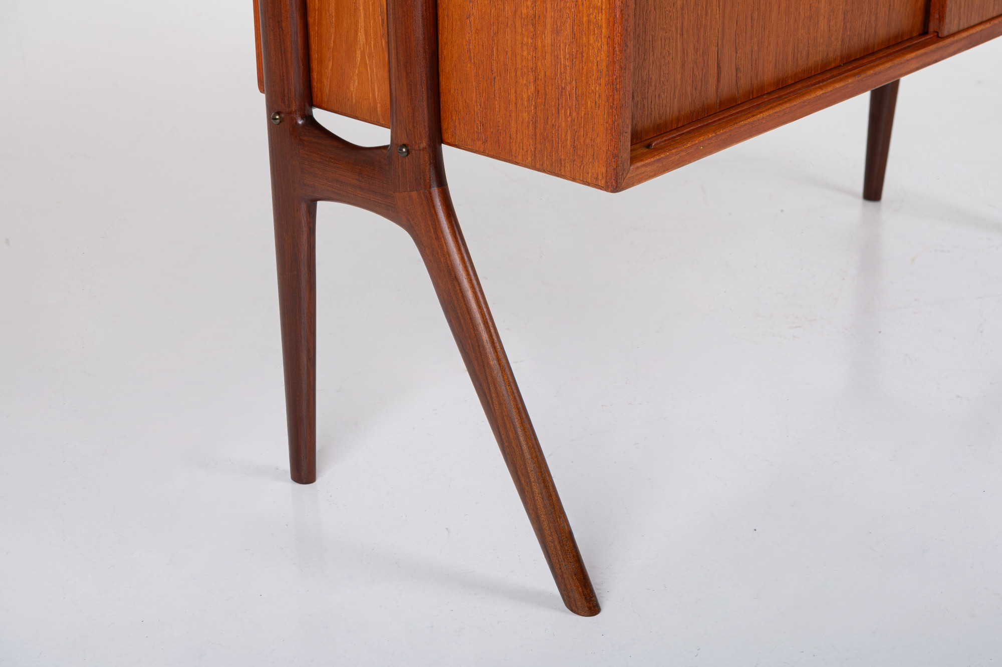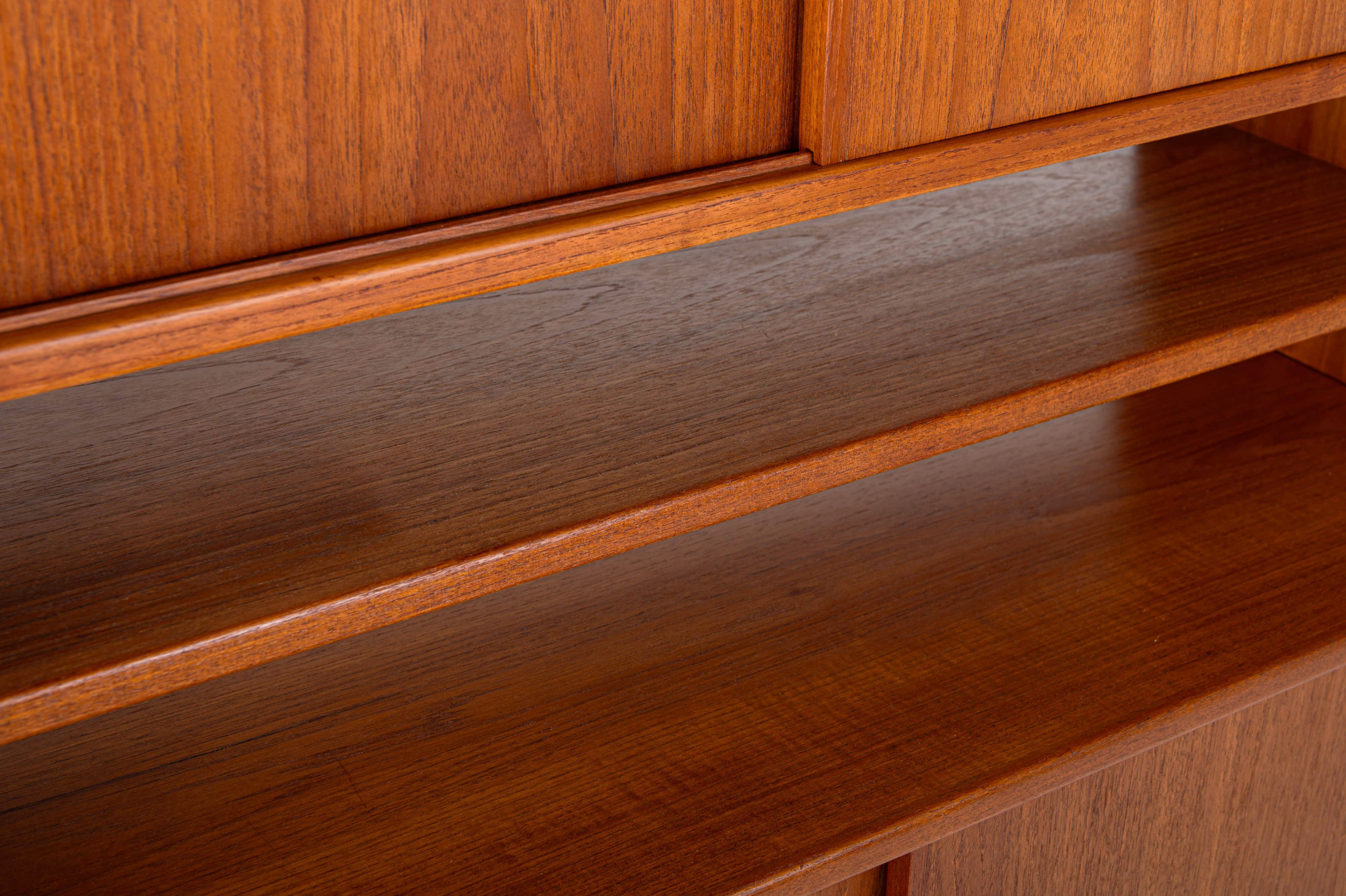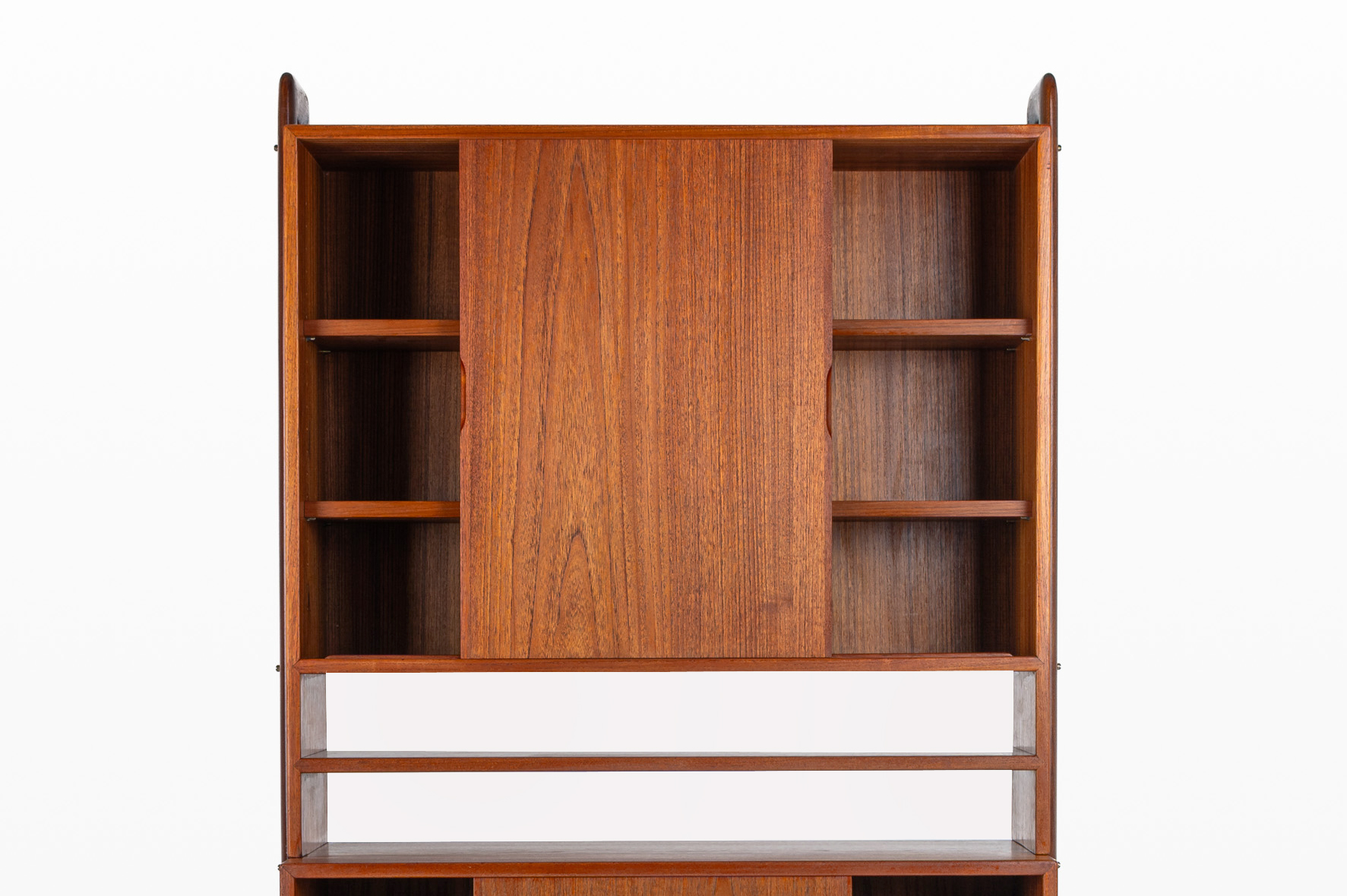 This freestanding bookcase, designed by Kurt Østervig for KP Møbler in Denmark during the 1960s, offers both functionality and style. It features cabinet elements, one with sliding doors and one for display. This piece can be placed freestanding in your space, making it a true statement piece for any interior.