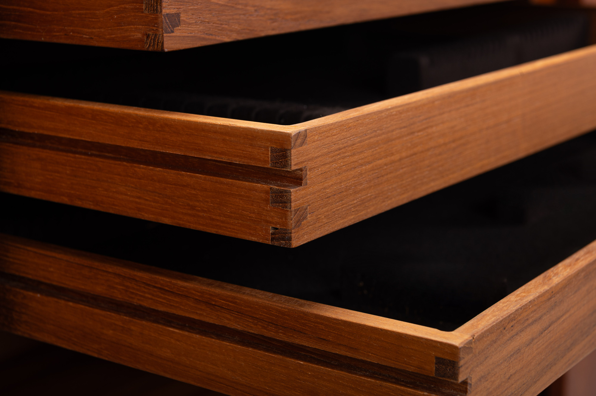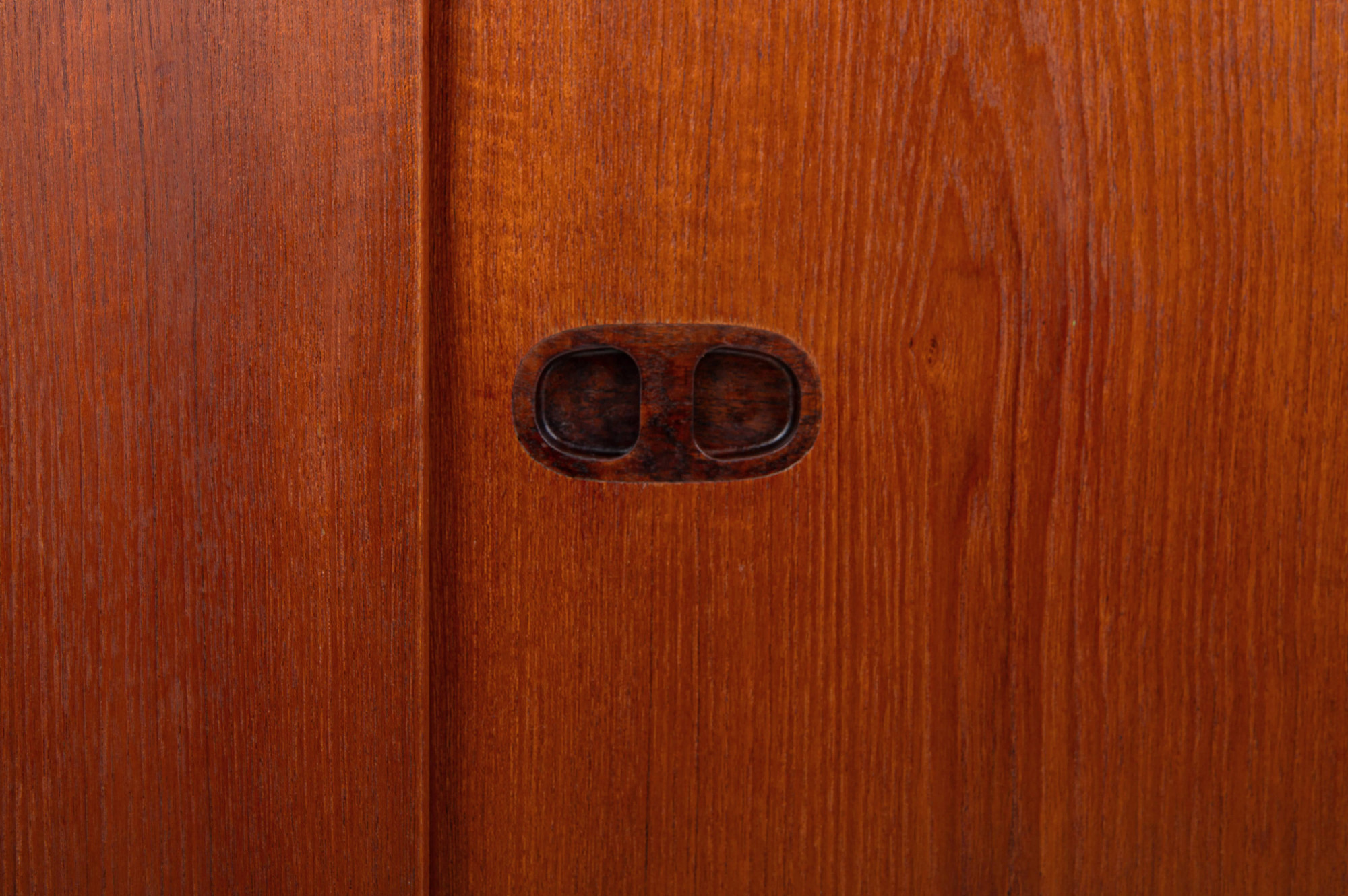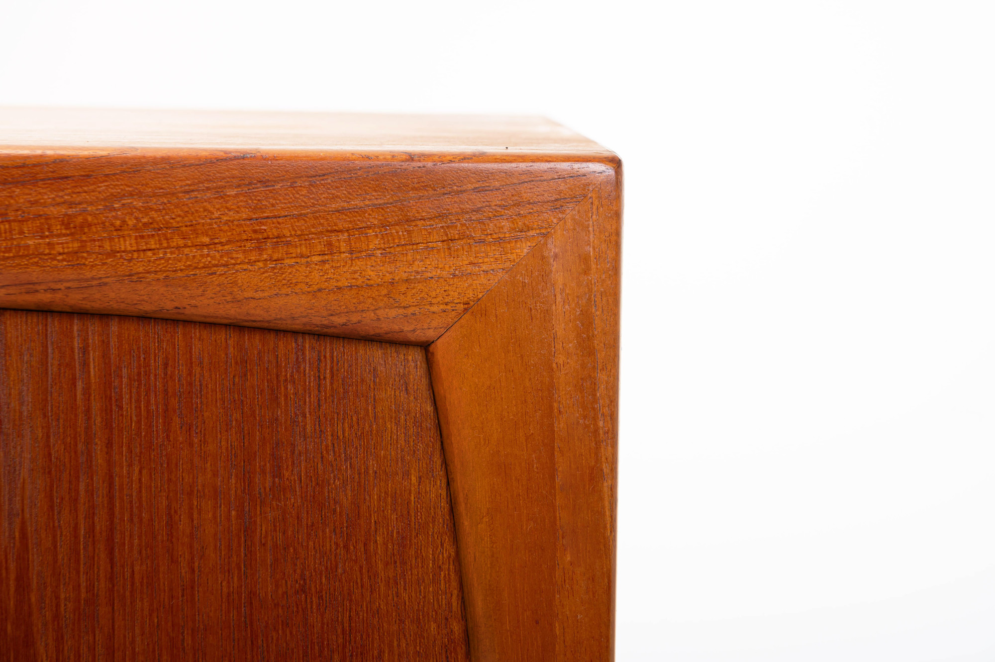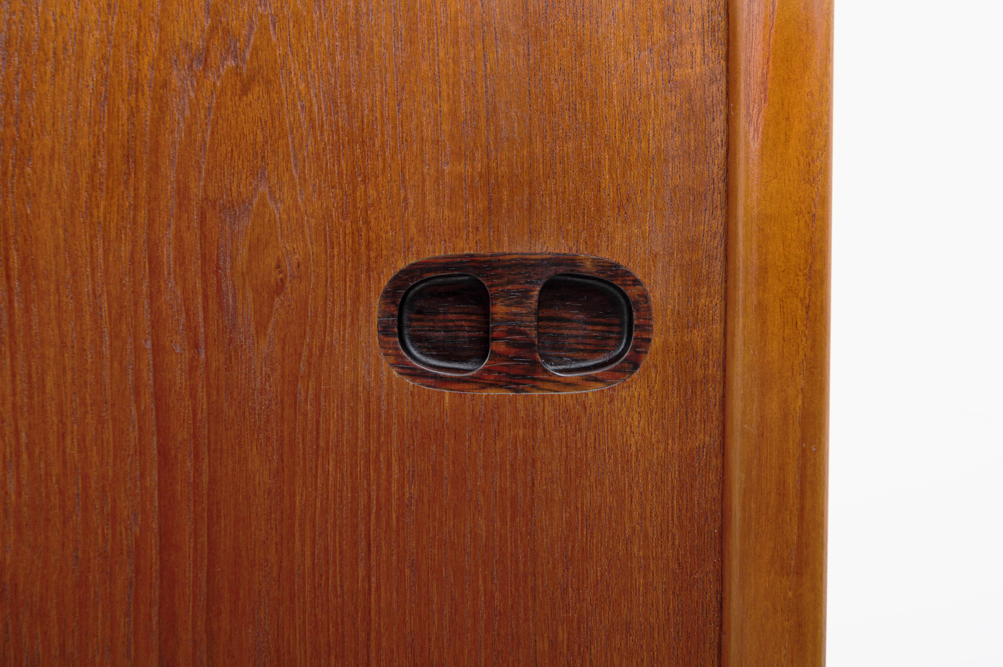 Danish vintage highboard by Randers Møbelfabrik, Denmark 1960s. This gorgeous piece has three sliding doors, three inner drawers and a lot of storage space. This highboard is made of teak wood with rosewood handles and is in great condition.