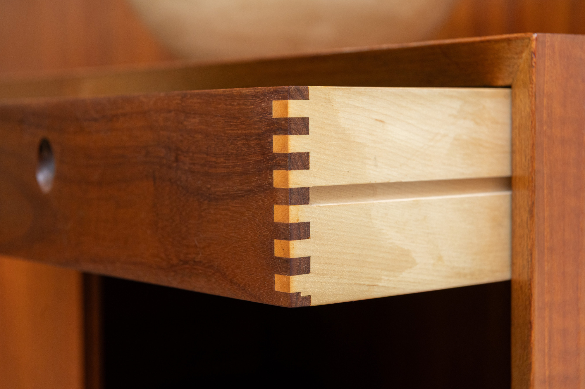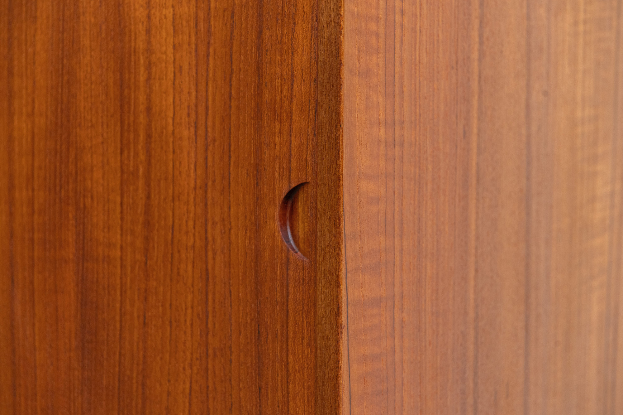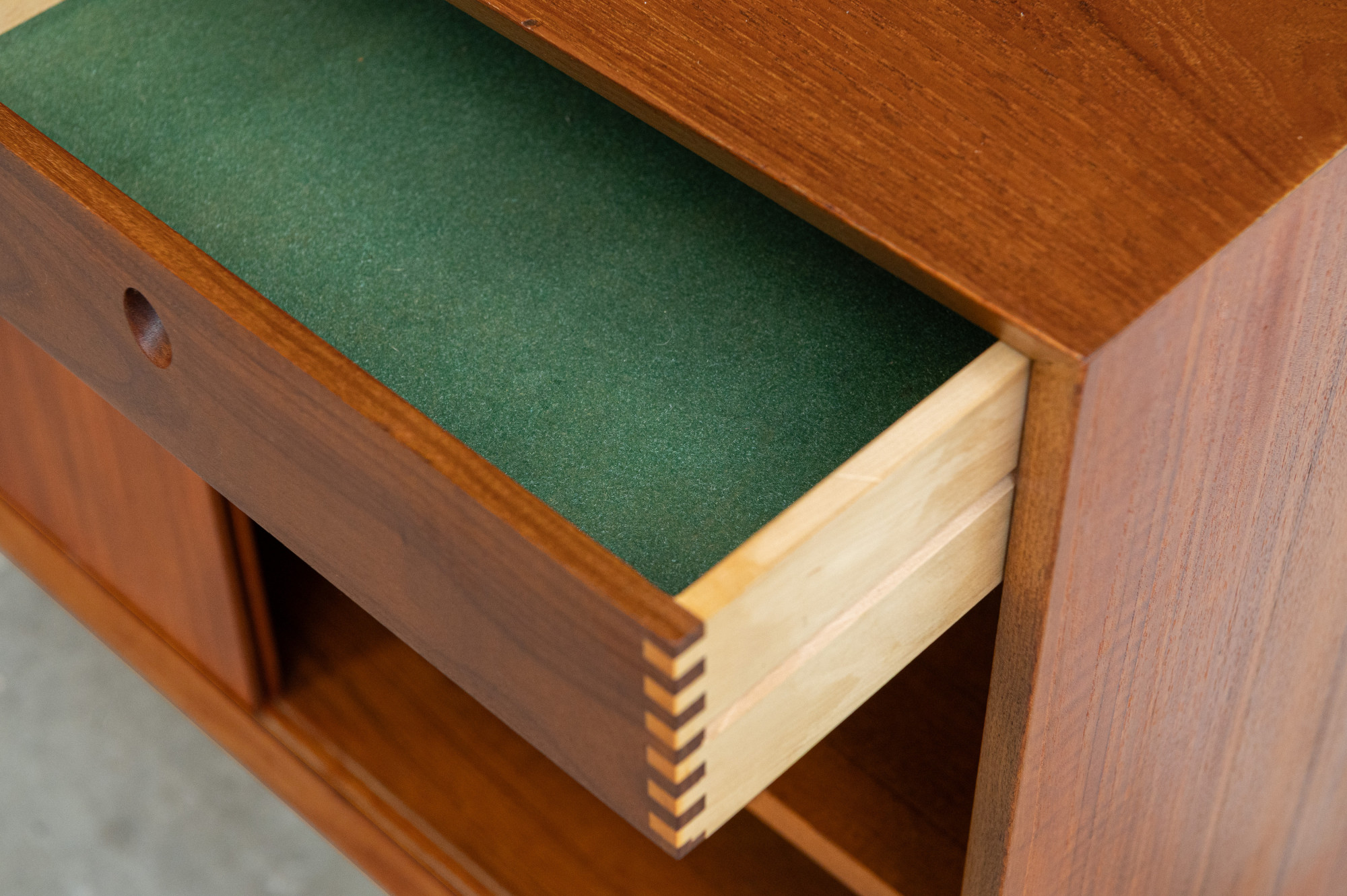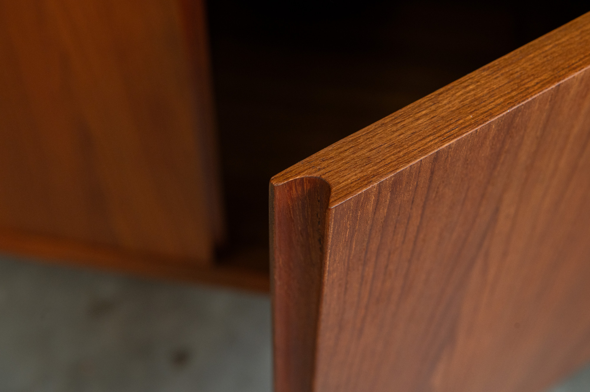 Danish modular wall unit by Poul Cadovius for Cado. This teak setup has one drawer cabinet, four storage cabinets, one desk shelf and twelve bookshelves. Always adaptable and further expandable.