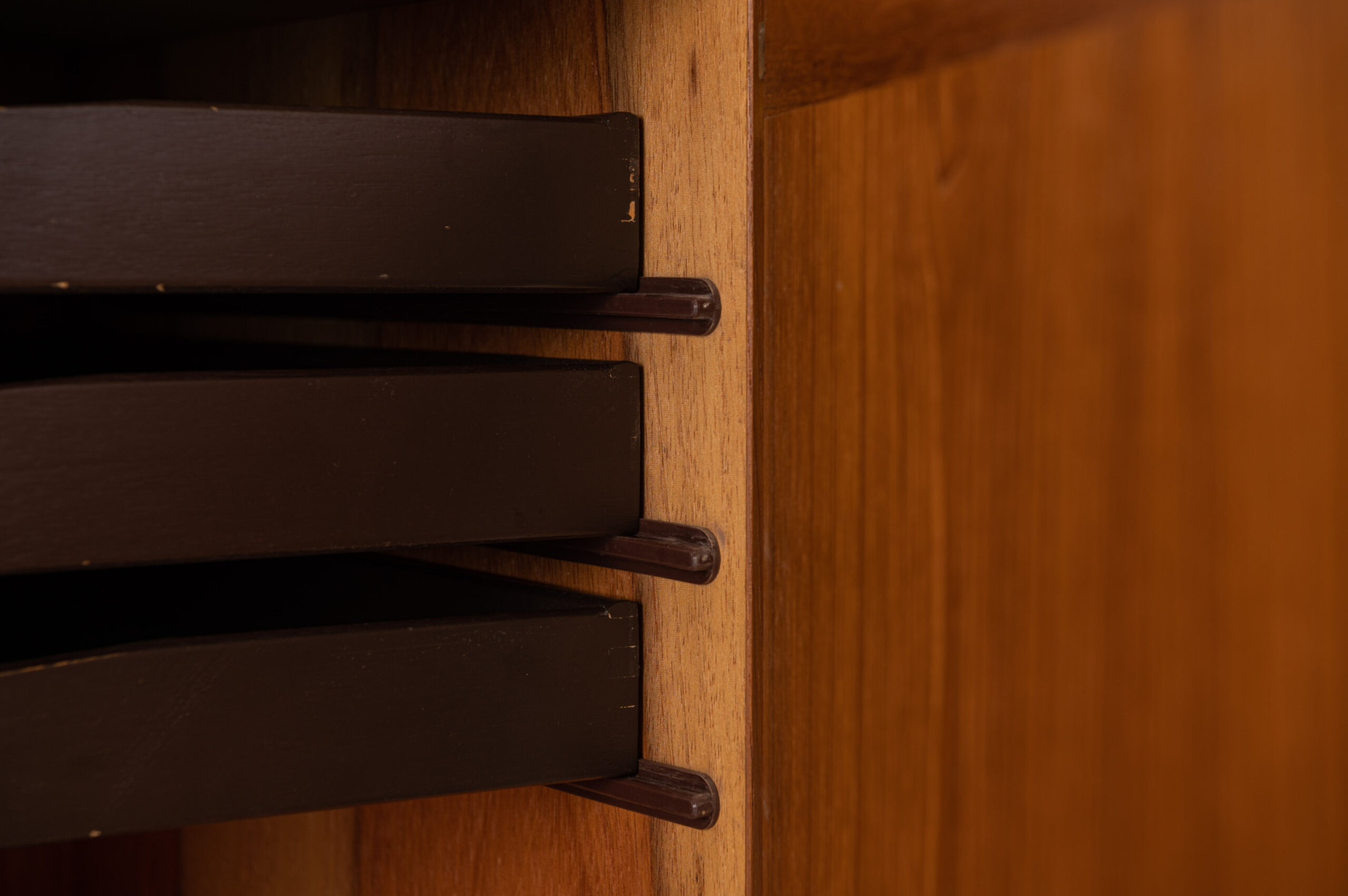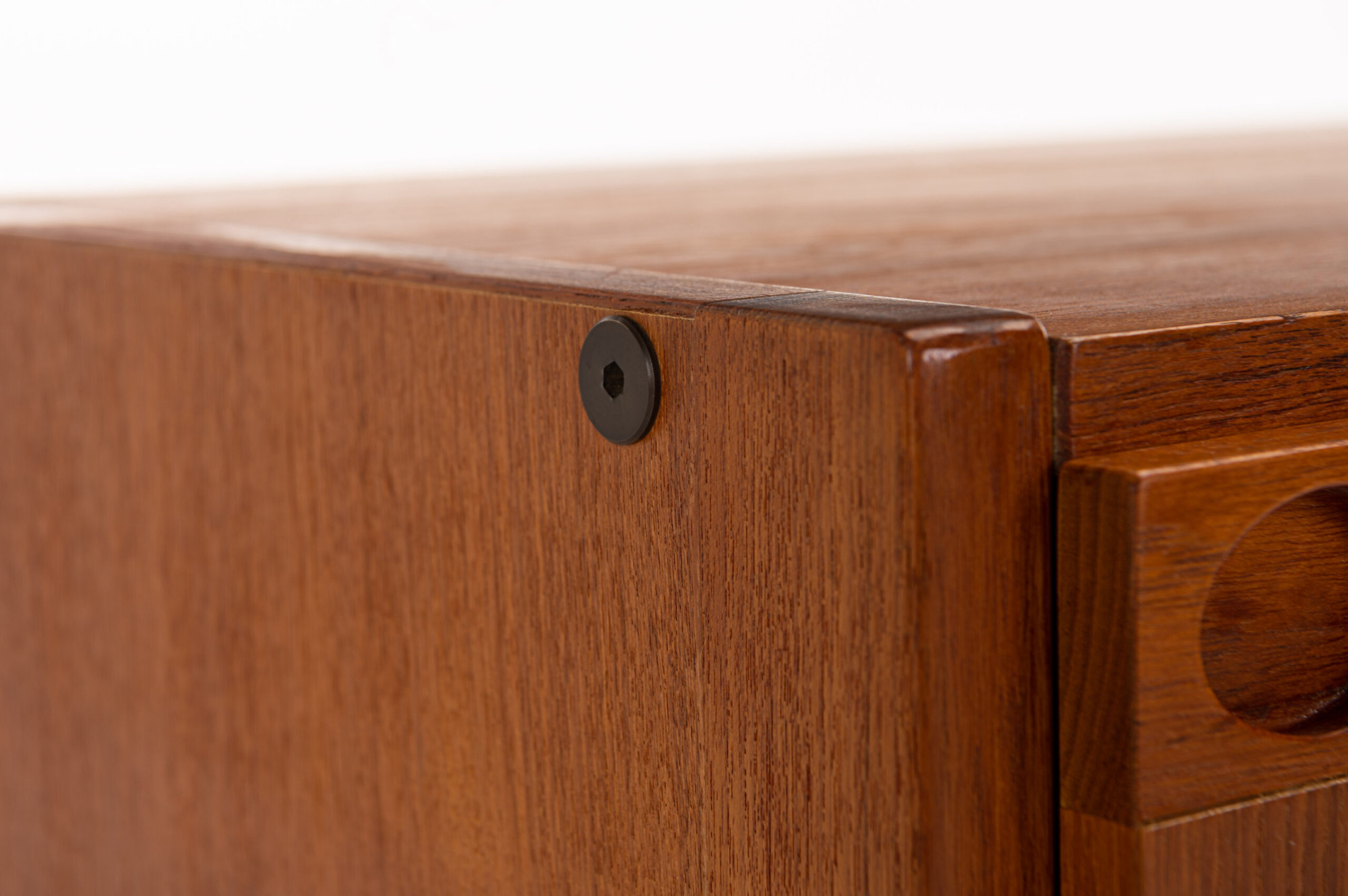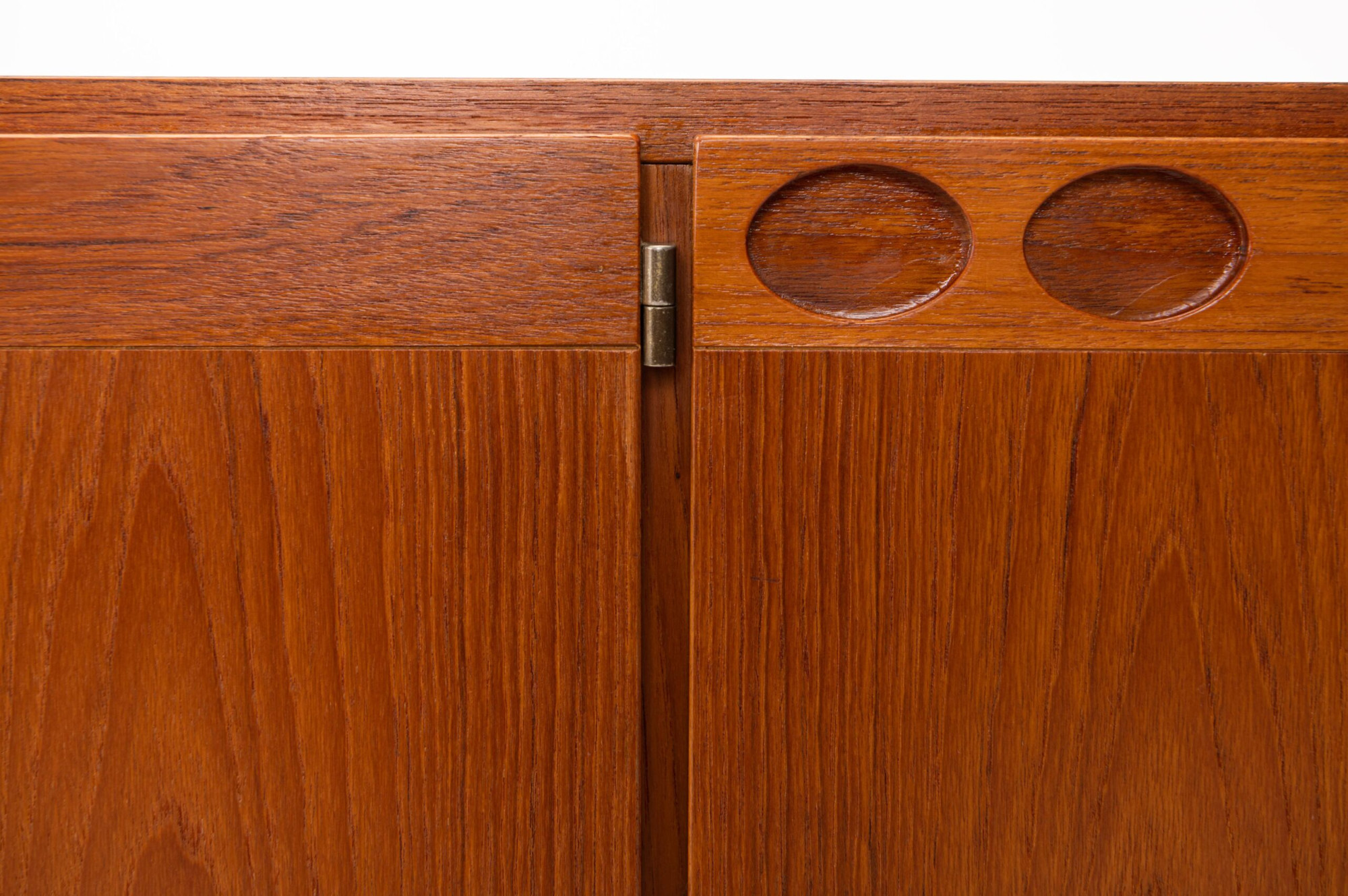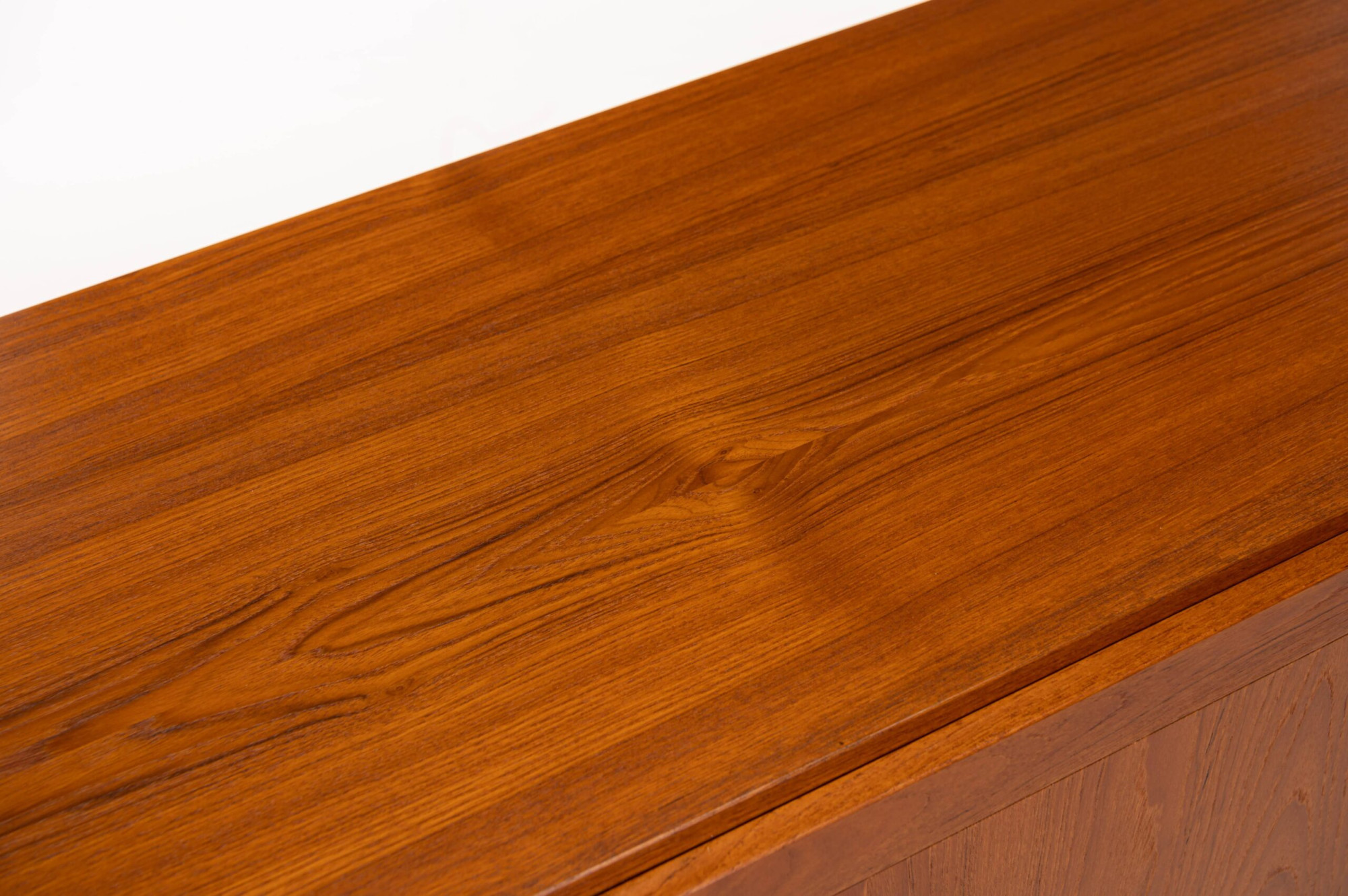 Vintage sideboard in teak designed by Ib Kofod Larsen and produced by Faarup Møbelfabrik in Denmark in the 1960s. The sideboard has three doors, three inner drawers and plenty of storage space. The sticker of the producer is still present.