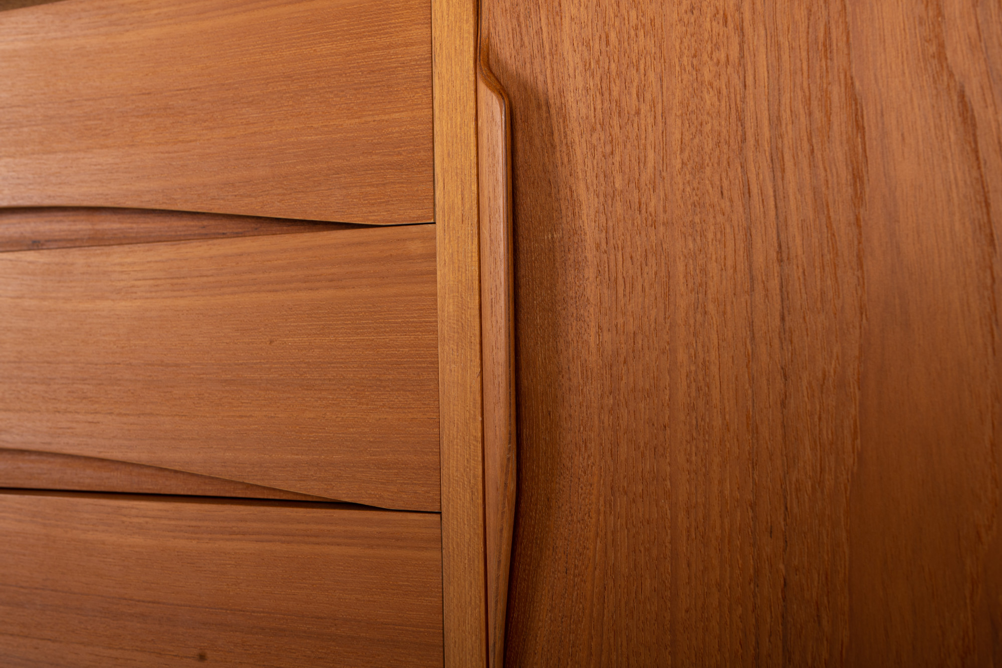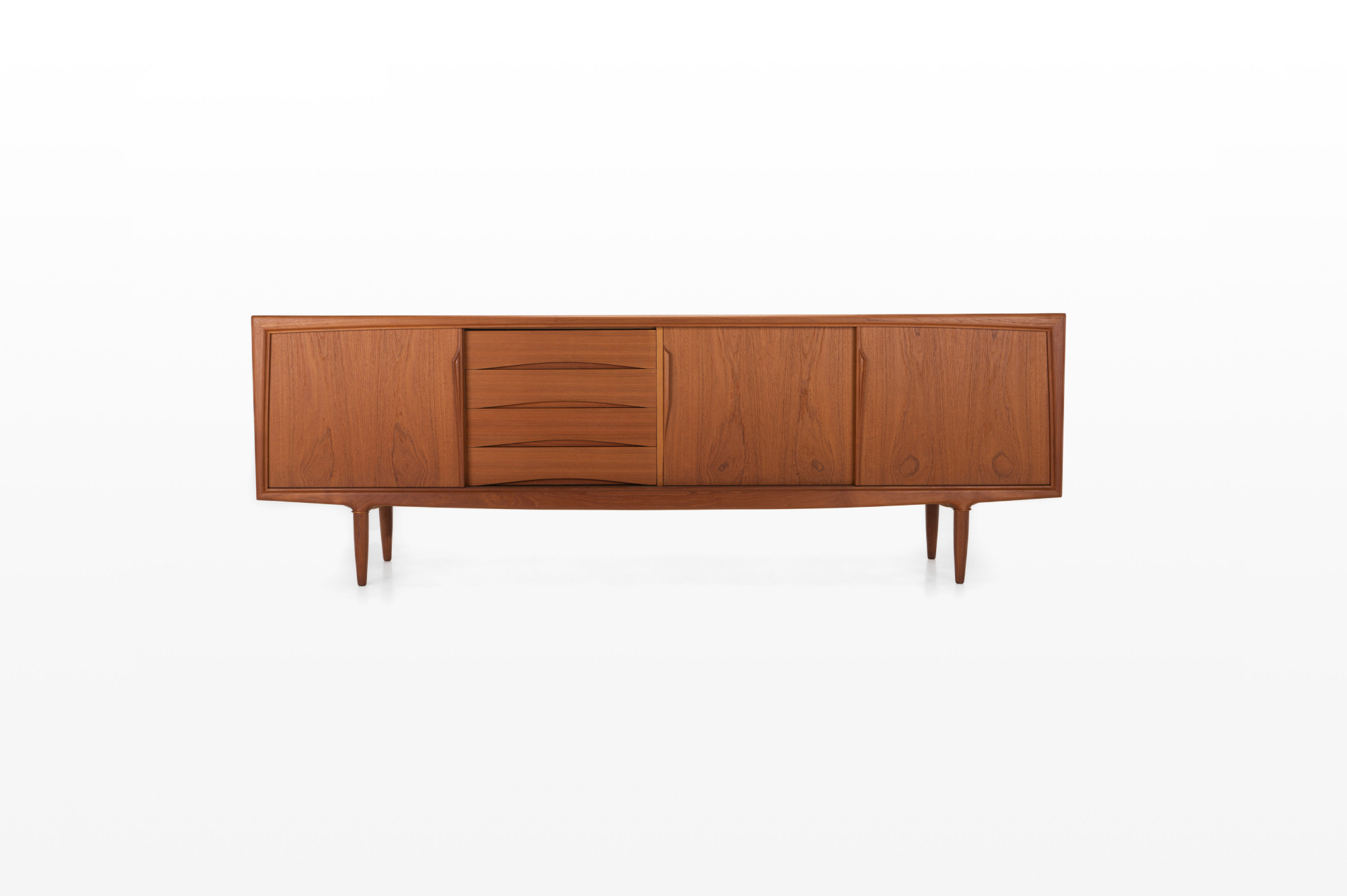Produced by Axel Christensen Odder (ACO Møbler) and designed in the 1960s. Beautifully designed sideboard with elegant handles, four drawers and plenty of storage space with adjustable shelves.